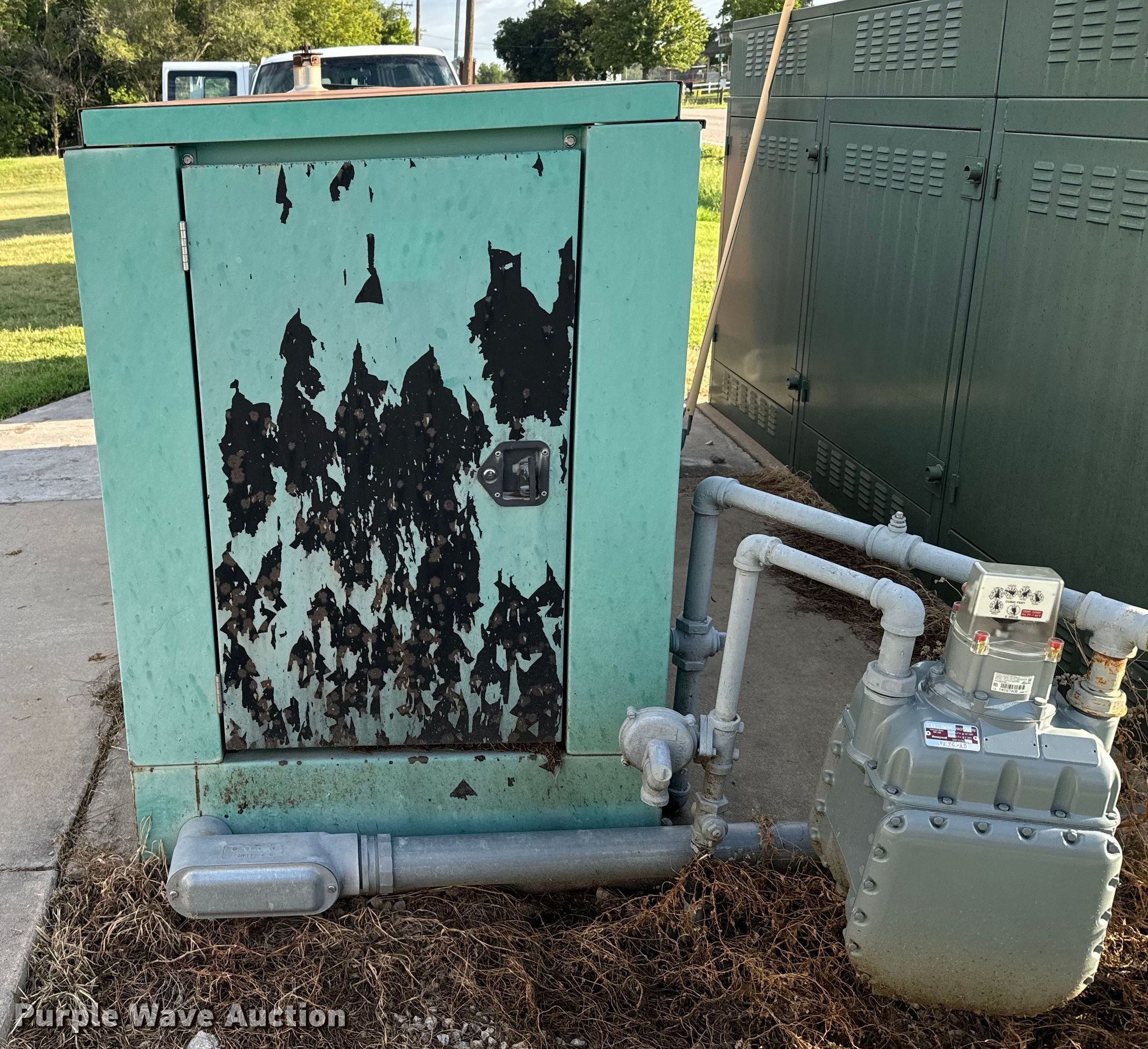 Onan 80GGHC generator. Hours: 721 on meter, Serial: J980818102. Engine Ford LSG-875I-6005-A, Serial: 12214-1-04-98, Cylinders: 8, Fuel type: Dual fuel Types: LPG, Natural gas. Features Generator Onan 80GGHC, kVA: 100, kW: 80, Phase: Single, Three, Backup start, Electric start, Skid mounted. Notes Will be disconnected prior to auction, Dead battery. Holyrood, KS 67450