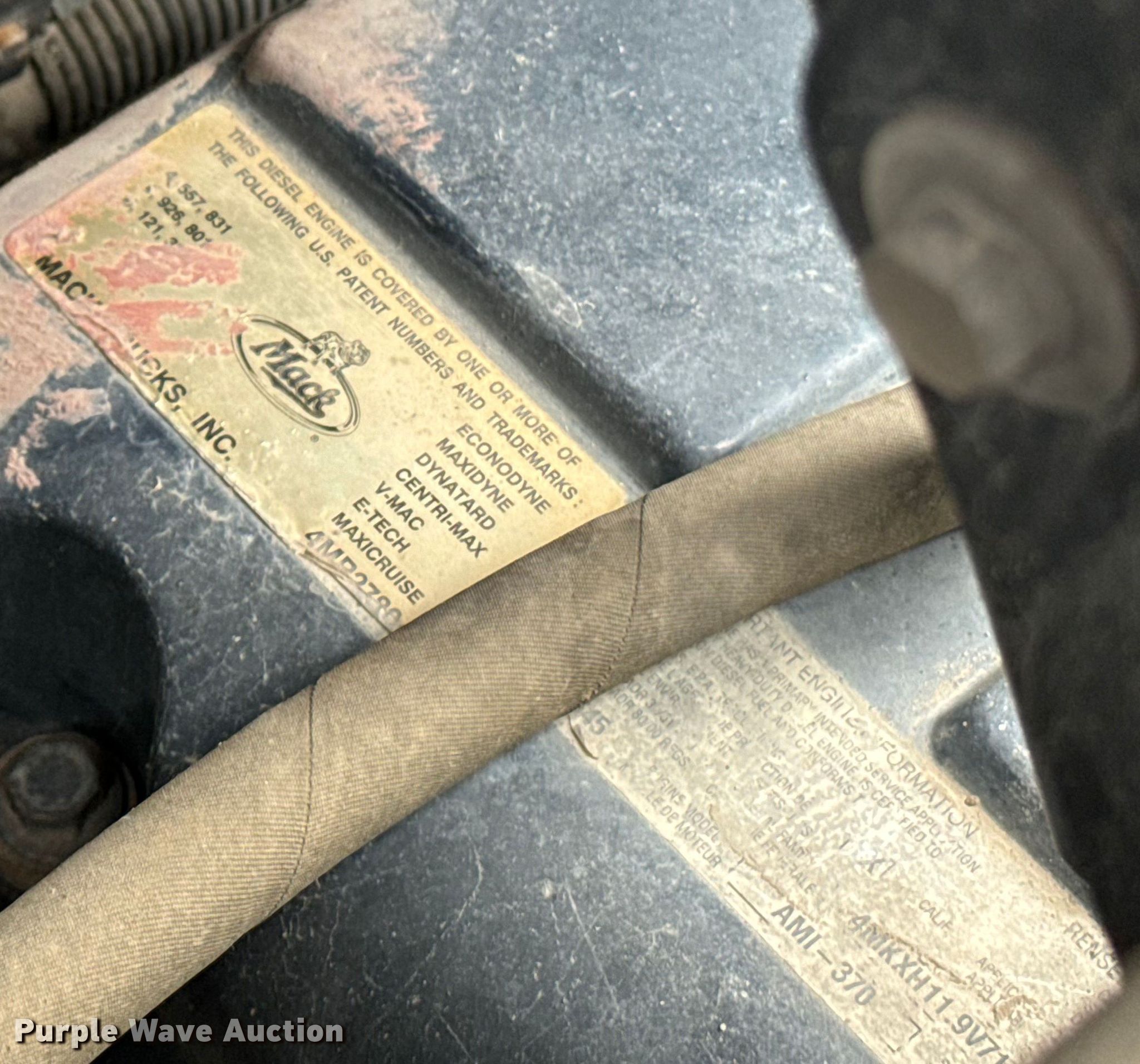 2005 Mack CV713 dump truck. Miles: 536,060 on odometer, VIN: 1M2AG11C55M016575. Engine Mack AMI-370, Displacement: 12.0L, Cylinders: 6, Fuel type: Diesel. Transmission Mack Maxitorque, Manual, Speed: 13. Chassis Axles: Tandem, Differential lock: Inter-axle, Suspension: Camelback, Brakes: Air, PTO. Interior AC, Heat, Heated mirrors, Cruise control. Features Dump bed 16' L x 95" W, Side height: 36", Side board height: 10", Bed type: Steel, Roll tarp, Ram: Single, End gate: Air operated. Tires Front: 385/65R22.5, Rear: 11R24.5. Notes Dash warning indicator: ABS, Roll tarp issues, stuck. Kansas title. Title distribution may be delayed up to 30 days from verification of funds. Concordia, KS 66901