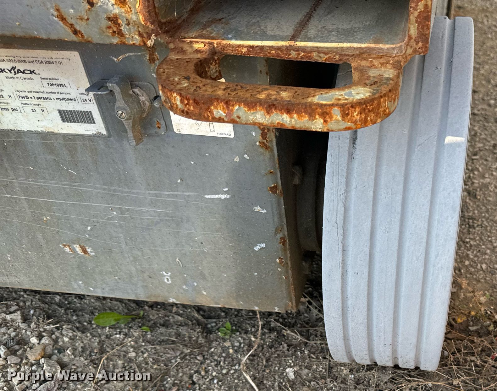 Skyjack SJ 4632 scissor lift. Hours: 286 on meter, Hours: Unknown, Serial: 70018984, Unit #: SJIH 4632. Electric Motor Volts: 24. Features Maximum lift capacity: 700 lbs, Maximum lift height: 32', Platform: 86" L x 44" W, Controls: Remote Control, Ground, Platform extensions: Manual. Tires Tire size: 16x5, Solid. Notes Batteries missing, Non-operational unit. Duke Rental. Davenport, IA 52806
