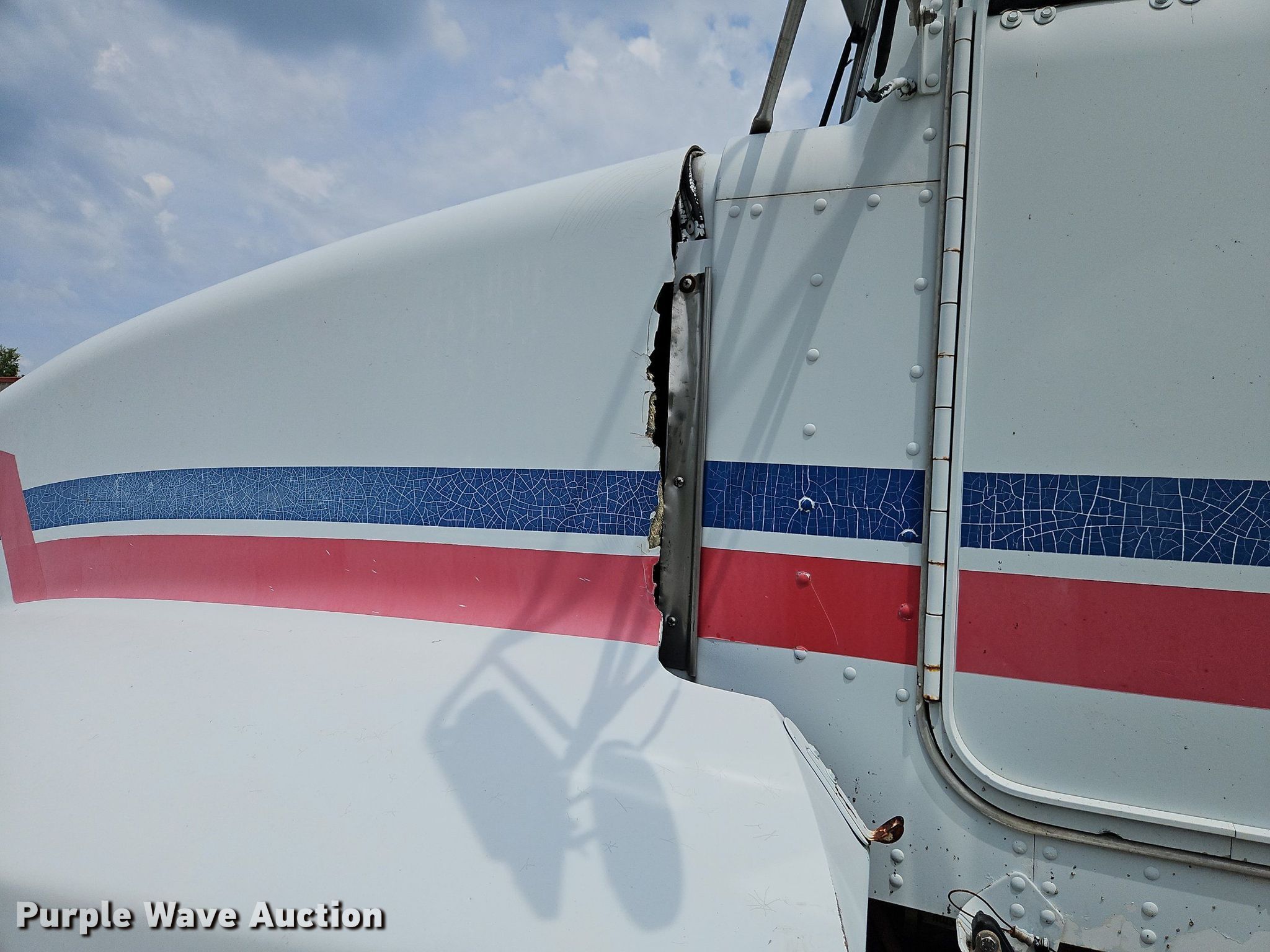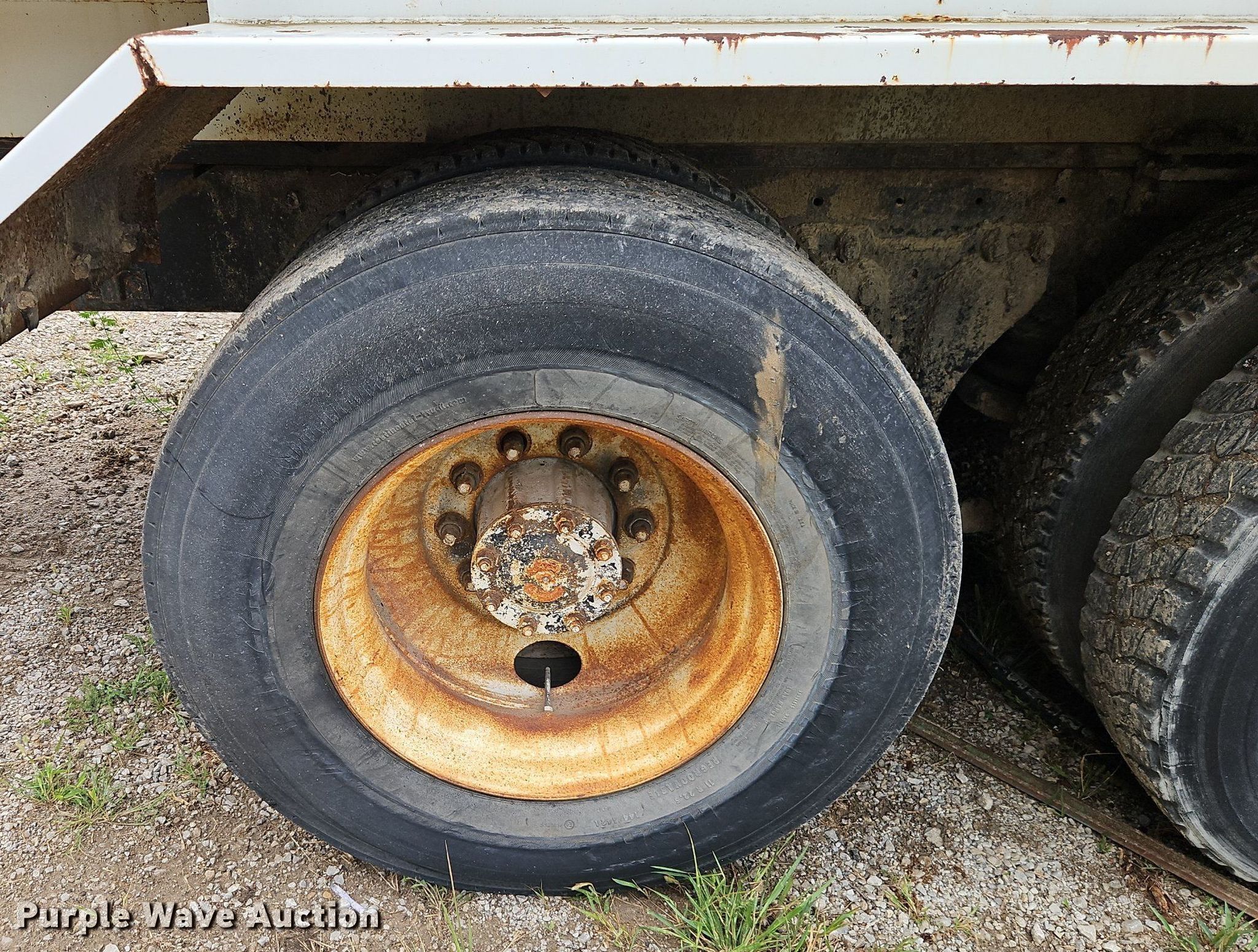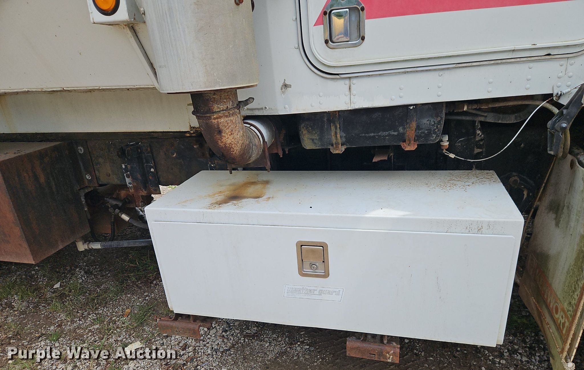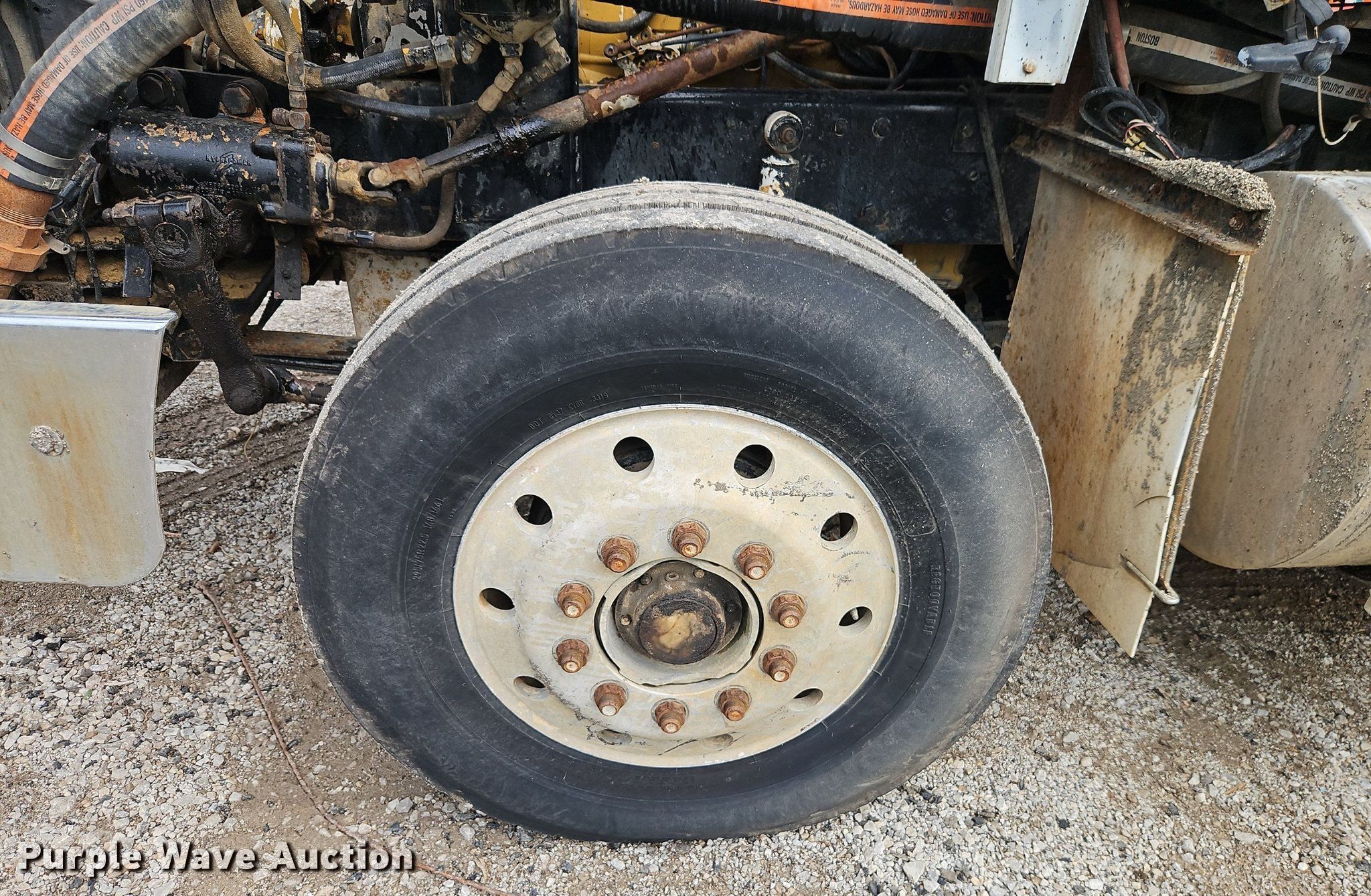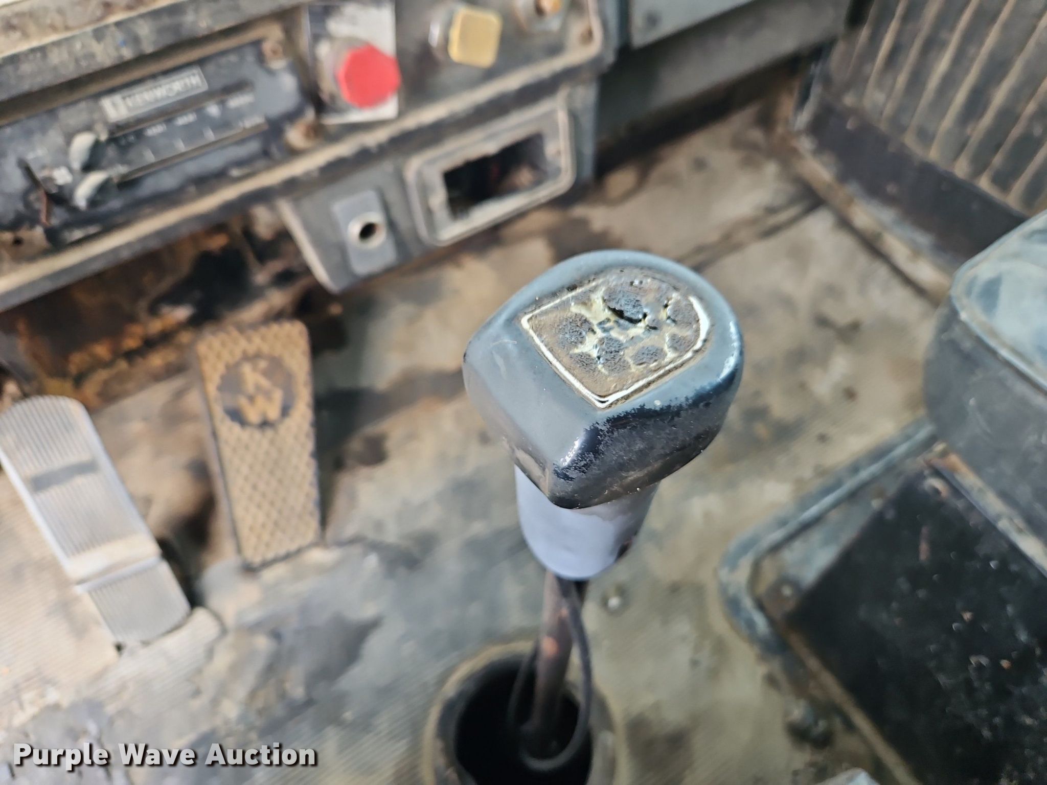 1986 Kenworth T600 water truck. Miles: 61,558 on odometer, VIN: 1XKADB9X8GS336826. Engine Caterpillar 3406, Displacement: 14.6L, Cylinders: 6, Fuel type: Diesel. Transmission Manual, Speed: 10. Chassis Axles: Tandem, Differential lock: Inter-axle, Suspension: Air, Brakes: Air, PTO, GVWR: 52,000 lbs. Interior Heat, Heated mirrors, Auxiliary controls. Features Bed / tank Capacity: 4,400 gallons, 18' L x 96' W, Spray bar: Front, Rear, Side discharge, Top fill. Tires Front: 295/75R22.5, Rear: 11R22.5. Notes Possible suspension issues, leak air. Missouri title. Dorsey Contracting LLC. Lone Jack, MO 64070