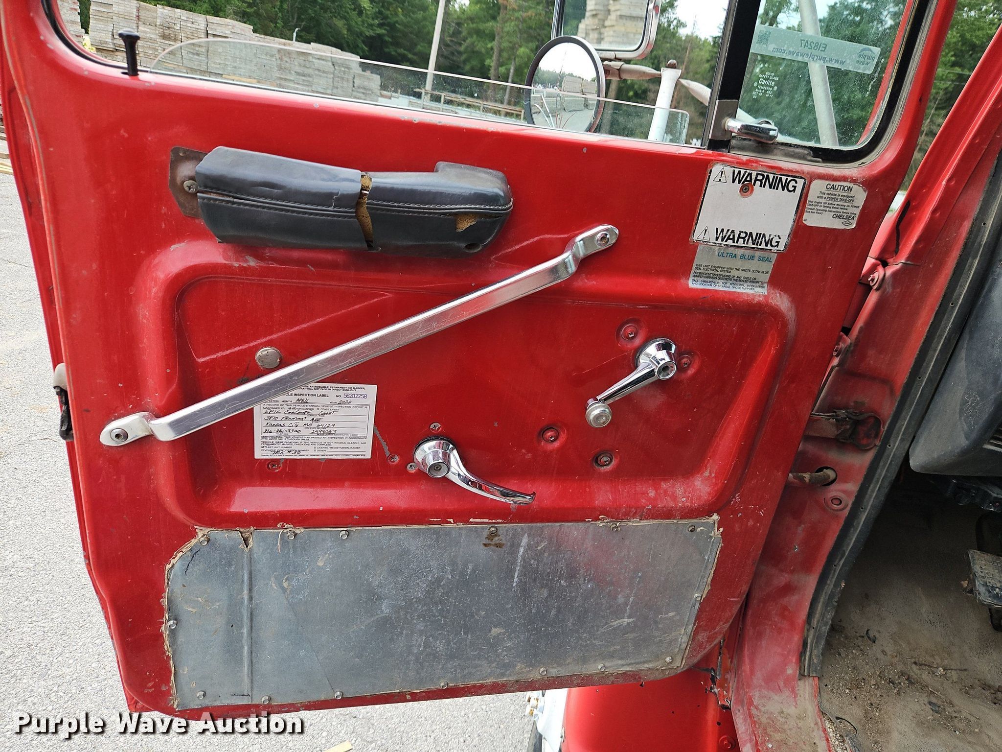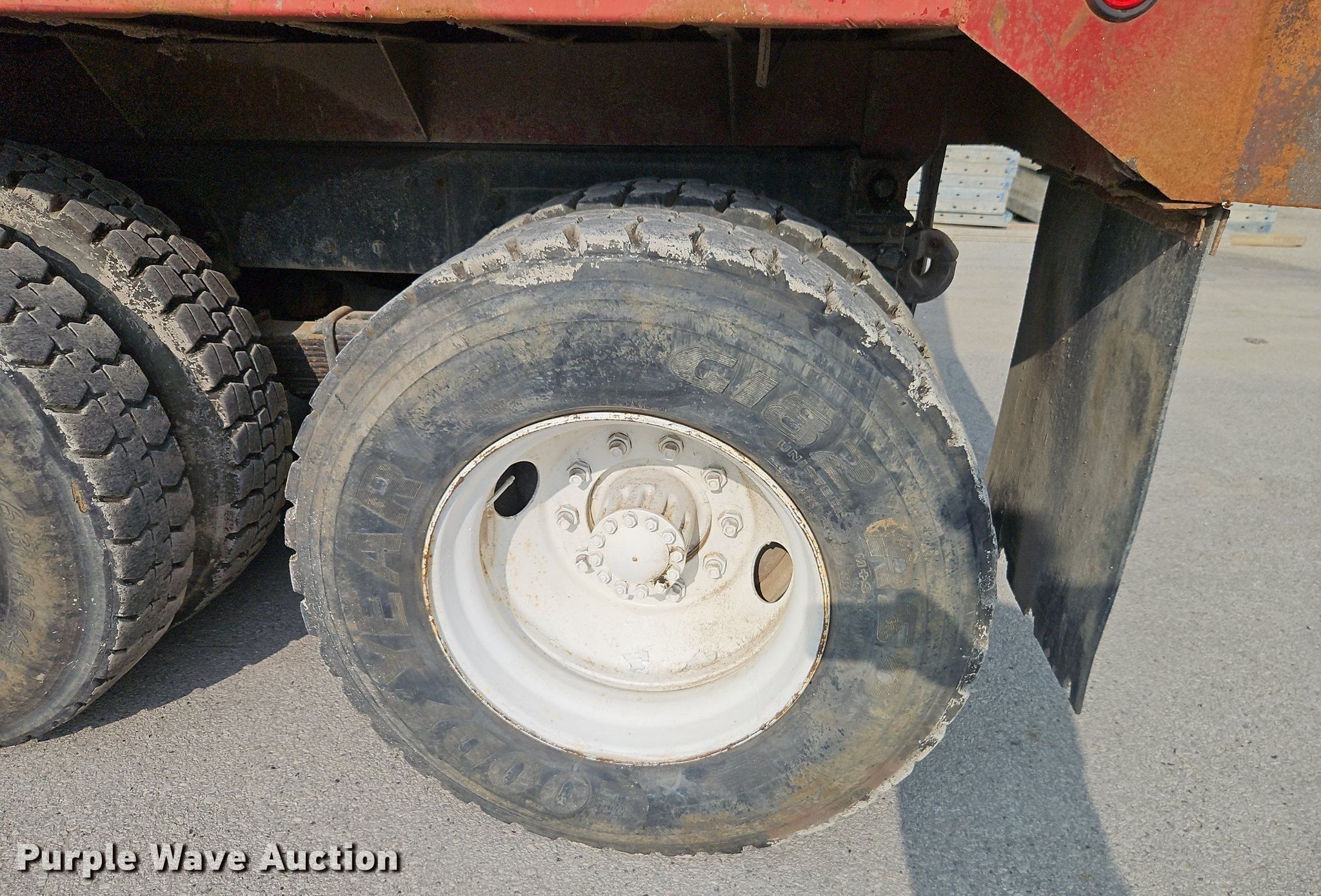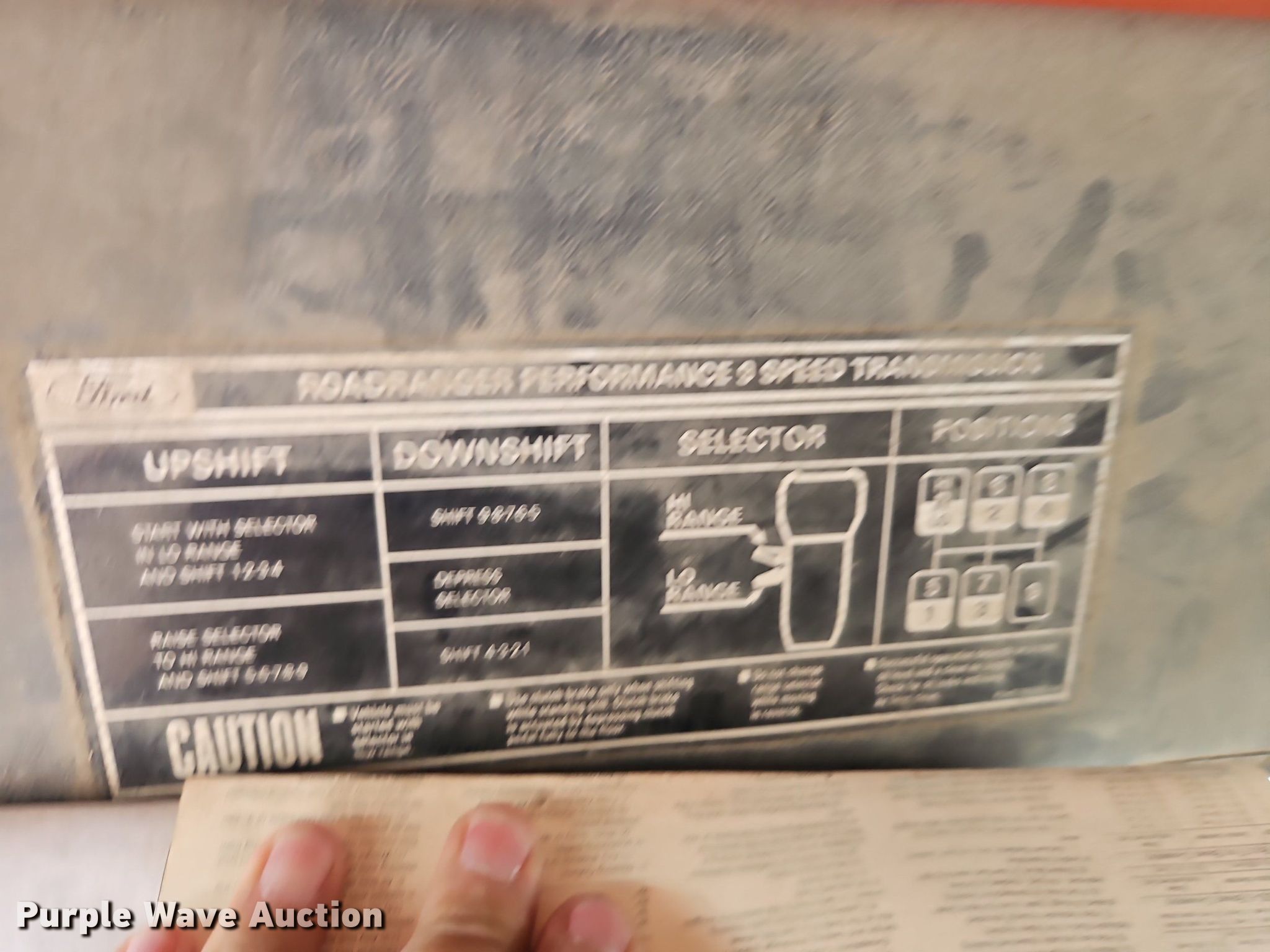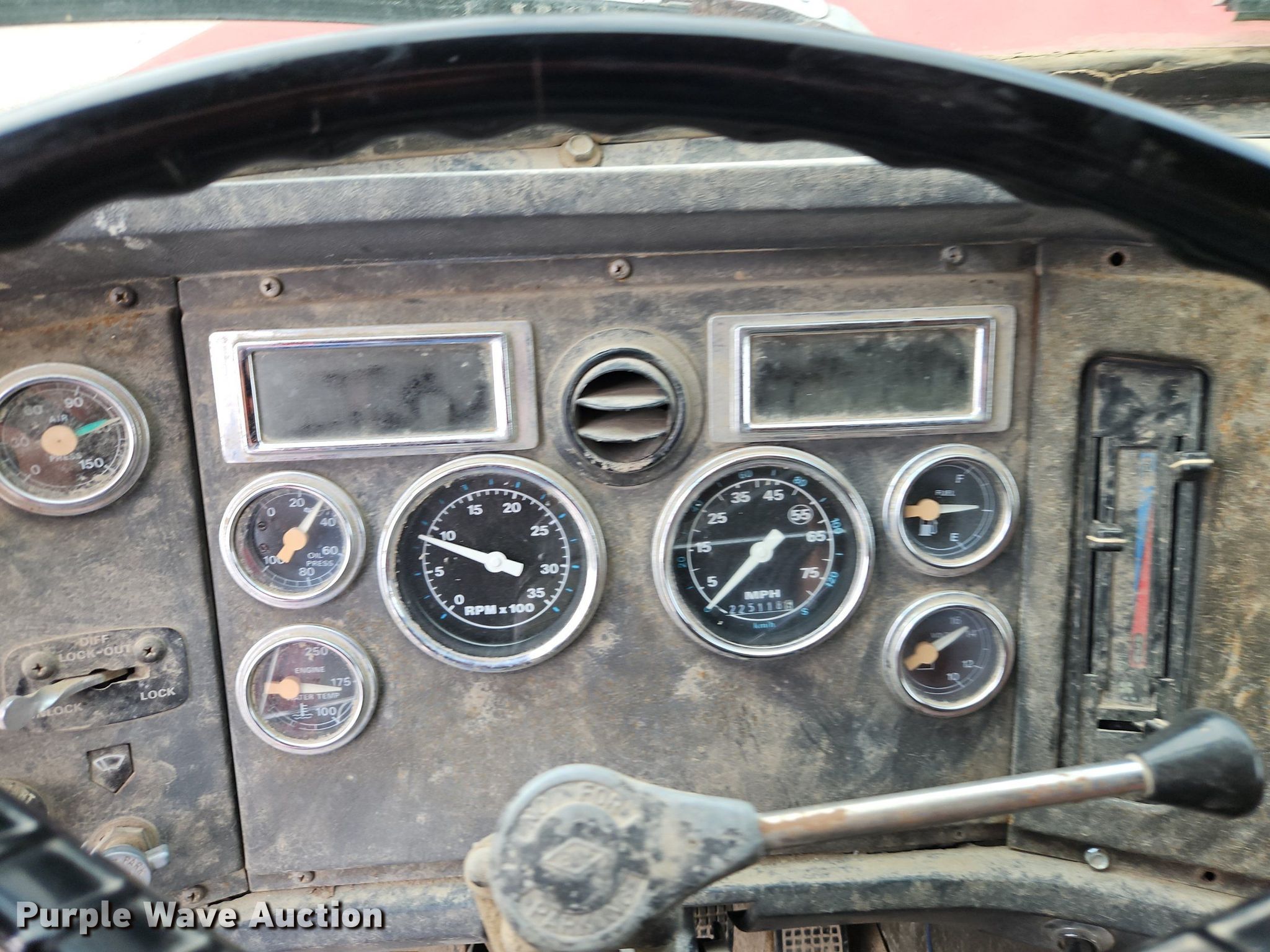 1992 Ford L9000 dump truck. Miles: 225,119 on odometer, Hours: 8,047 on meter, VIN: 1FDYW90S7NVA02535. Engine Caterpillar, Displacement: 14.6L, Cylinders: 6, Fuel type: Diesel. Transmission Eaton Fuller, Manual, Speed: 9. Chassis Axles: Tandem, Differential lock: Inter-axle, Suspension: Spring over walking beam, Brakes: Air, PTO, GVWR: 46,000 lbs, Wheelbase: 234". Interior Heat, Brake controller. Features Dump bed Smith 14 6 HSHD, 14' 6" L x 96" W, Side height: 48", Bed type: Steel, Roll tarp, Ram: Single, End gate: Air operated. Tires Size: 11R22.5. Notes Dead battery, Unknown operating condition of roll tarp, Non-operational power steering, Coolant leak, Oil leaks. Missouri title. Epic Concrete Construction. Kansas City, MO 64138