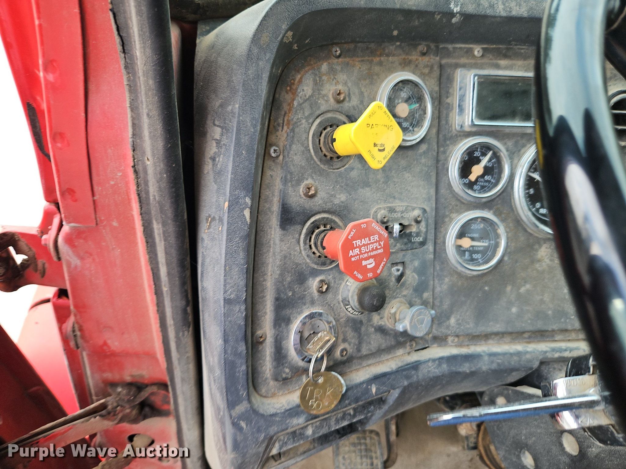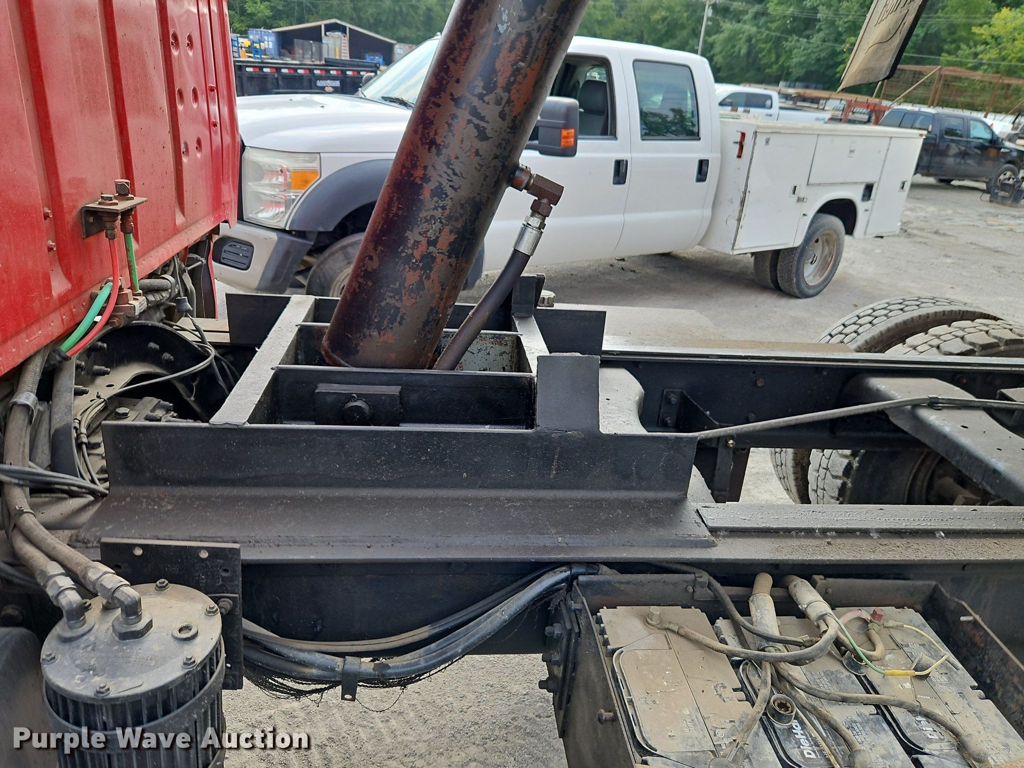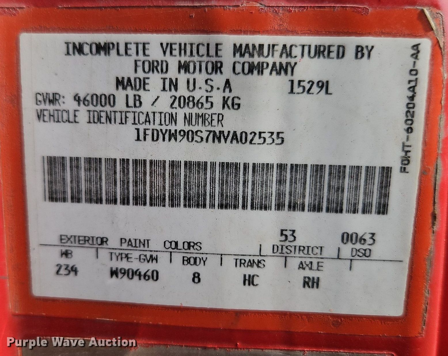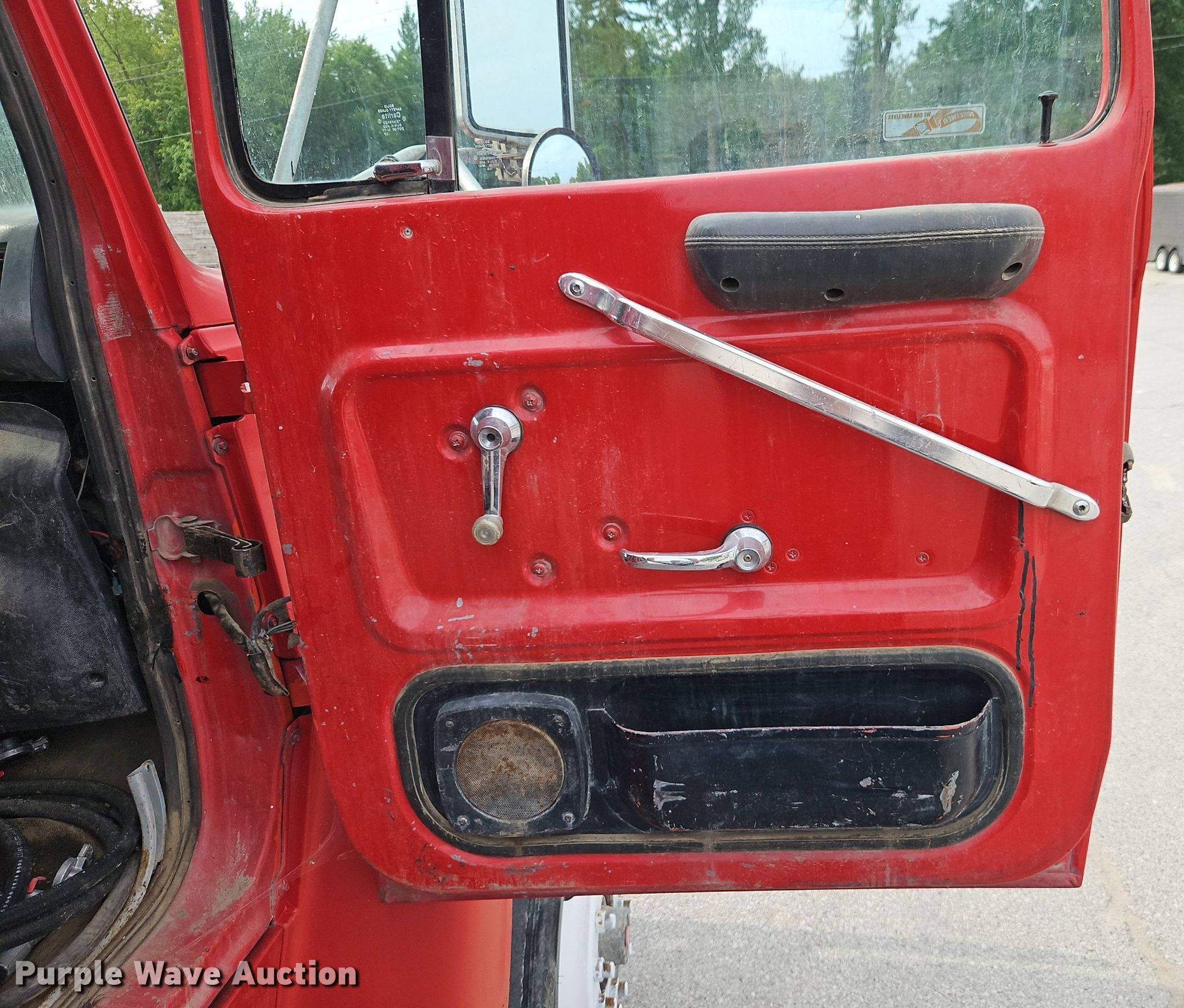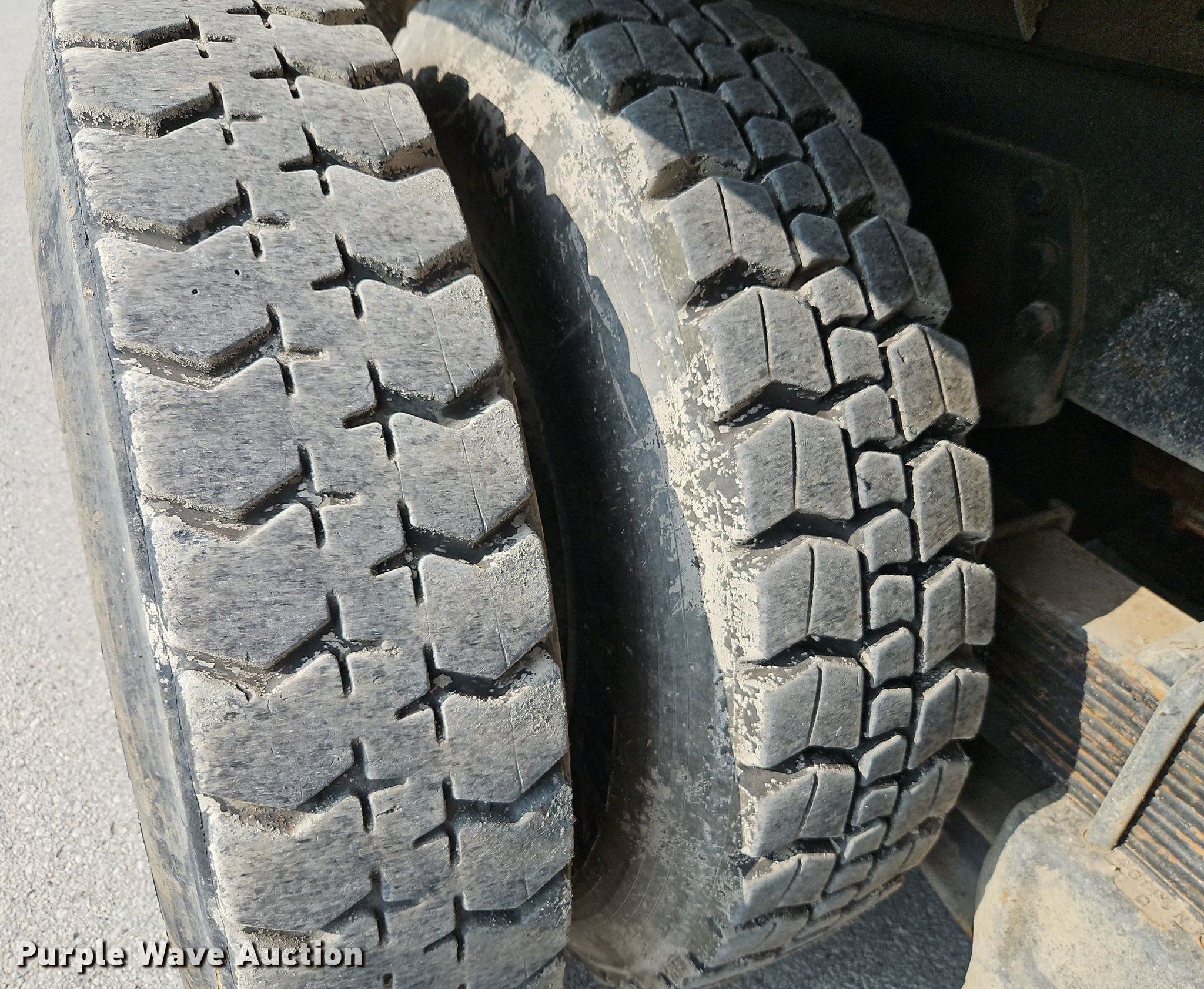 1992 Ford L9000 dump truck. Miles: 225,119 on odometer, Hours: 8,047 on meter, VIN: 1FDYW90S7NVA02535. Engine Caterpillar, Displacement: 14.6L, Cylinders: 6, Fuel type: Diesel. Transmission Eaton Fuller, Manual, Speed: 9. Chassis Axles: Tandem, Differential lock: Inter-axle, Suspension: Spring over walking beam, Brakes: Air, PTO, GVWR: 46,000 lbs, Wheelbase: 234". Interior Heat, Brake controller. Features Dump bed Smith 14 6 HSHD, 14' 6" L x 96" W, Side height: 48", Bed type: Steel, Roll tarp, Ram: Single, End gate: Air operated. Tires Size: 11R22.5. Notes Dead battery, Unknown operating condition of roll tarp, Non-operational power steering, Coolant leak, Oil leaks. Missouri title. Epic Concrete Construction. Kansas City, MO 64138