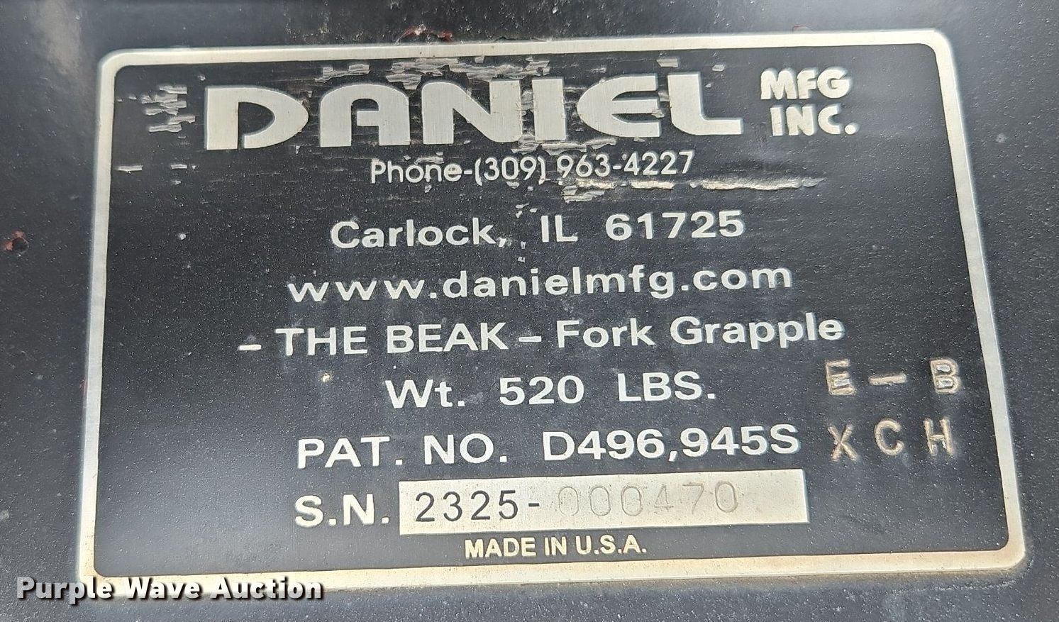 Purple Wave is selling a used Excavator Attach. in Missouri. This item is a Daniel excavator grapple with the following: Serial: 2325-000470
