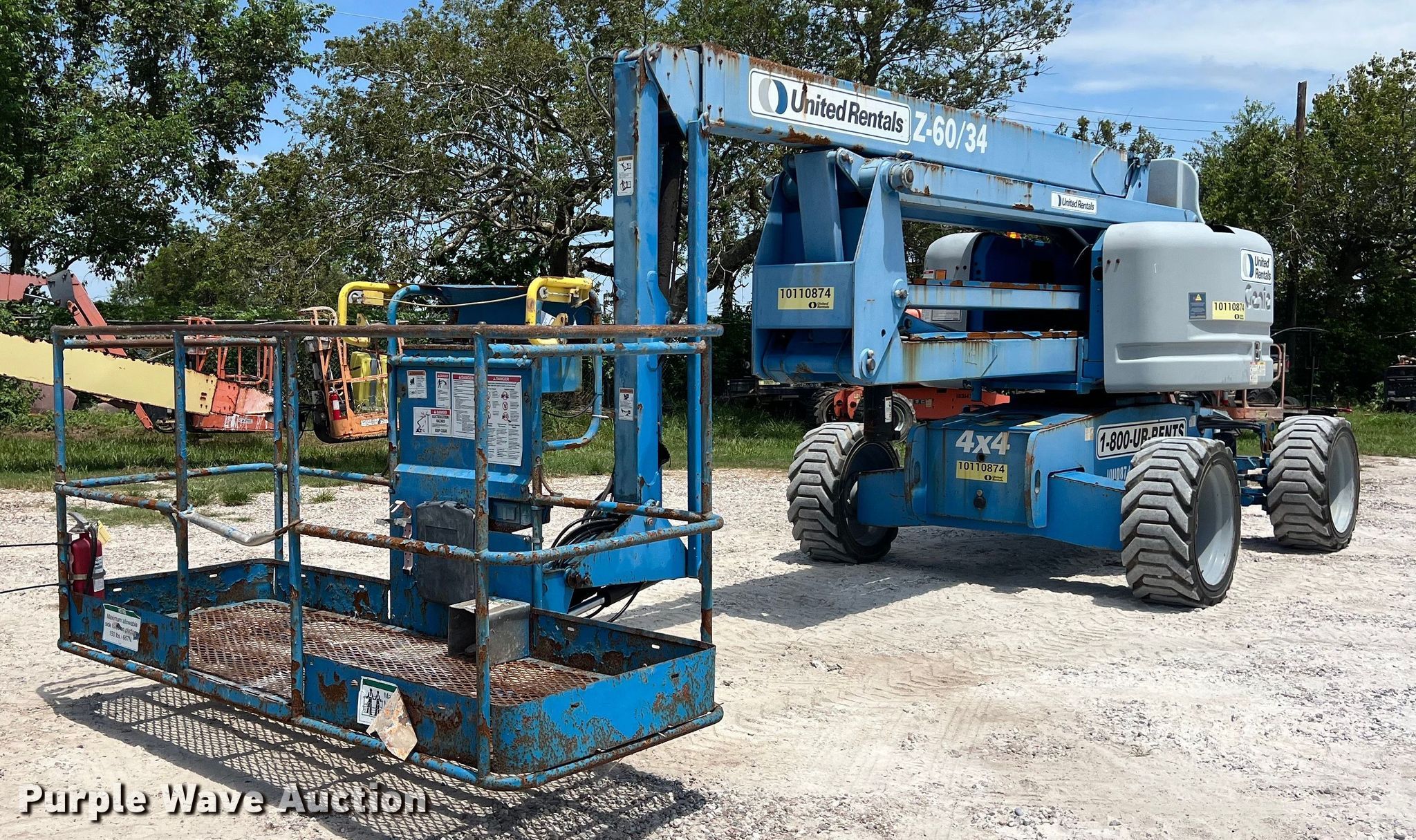 Purple Wave is selling a used Boom Lift in Texas. This item is a 2013 Genie Z-60/34 boom lift with the following: Hours: 3,107 on meter, Serial: Z6013-12114, Unit #: 10110874
