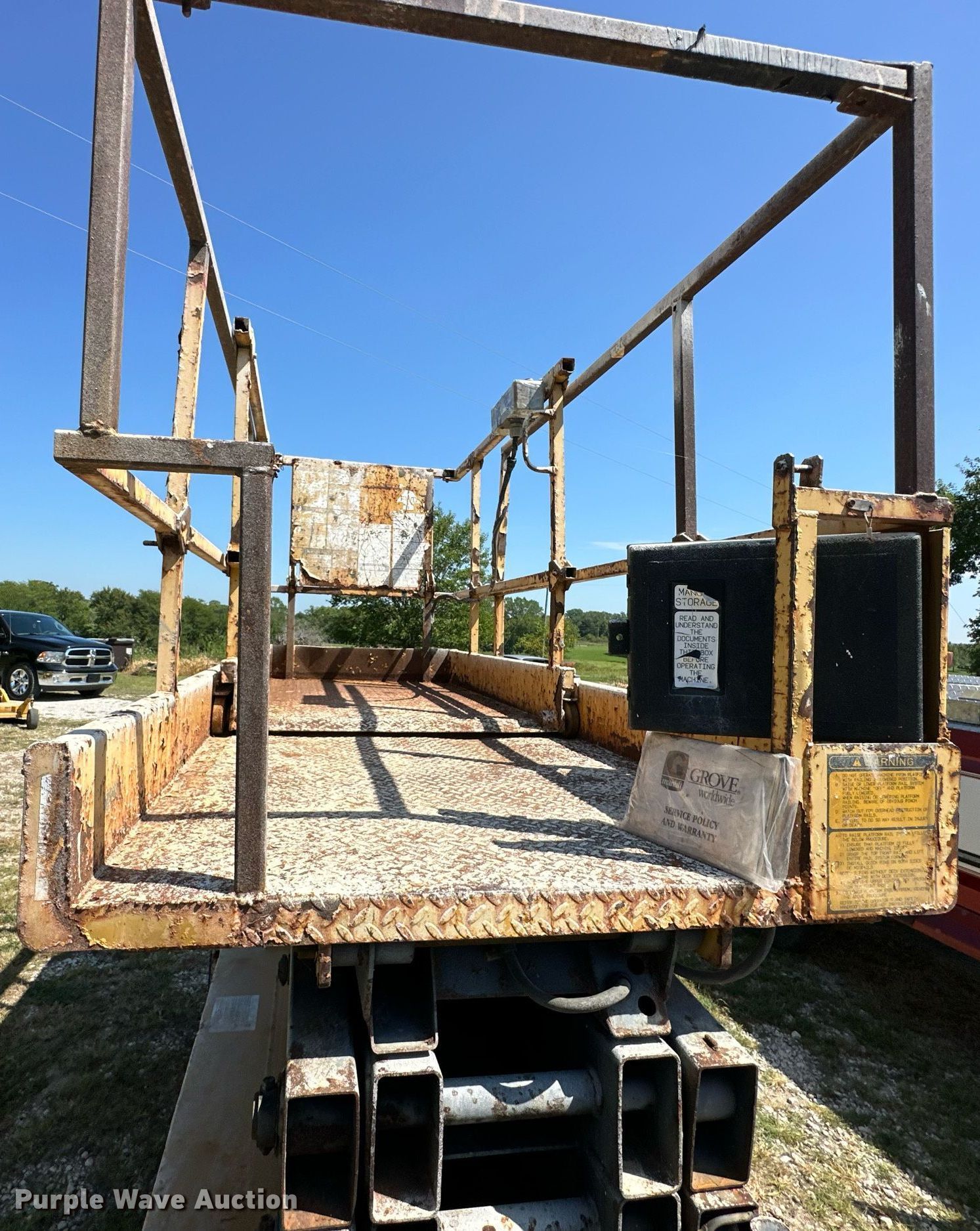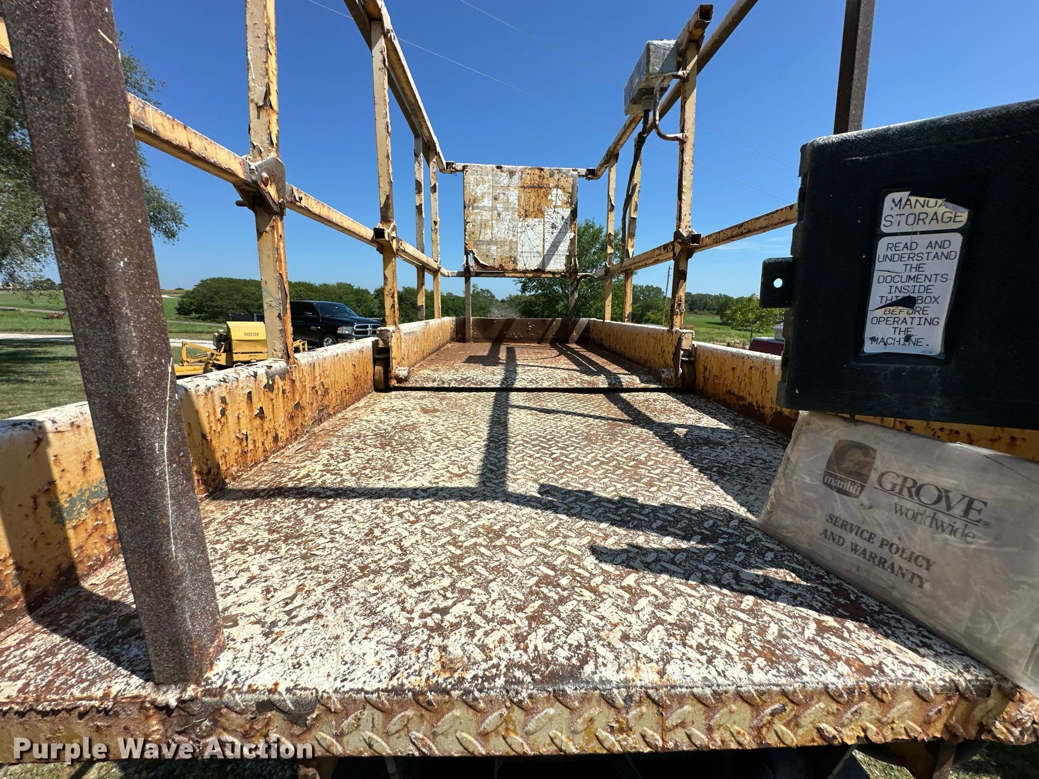 Purple Wave is selling a used Scissor or Vertical Lift in Kansas. This item is a 1993 Grove SM3146E scissor lift with the following: Serial: 27561