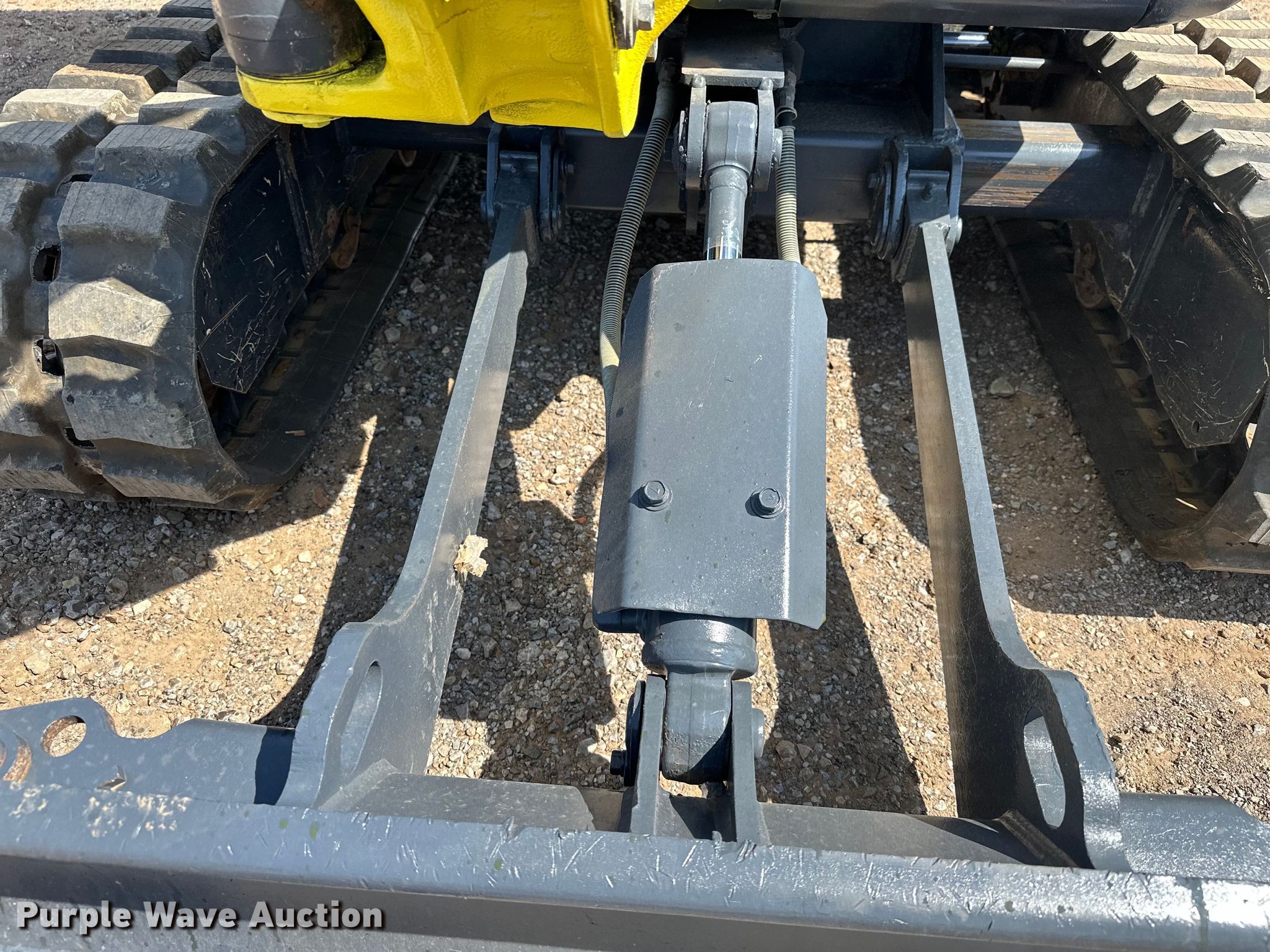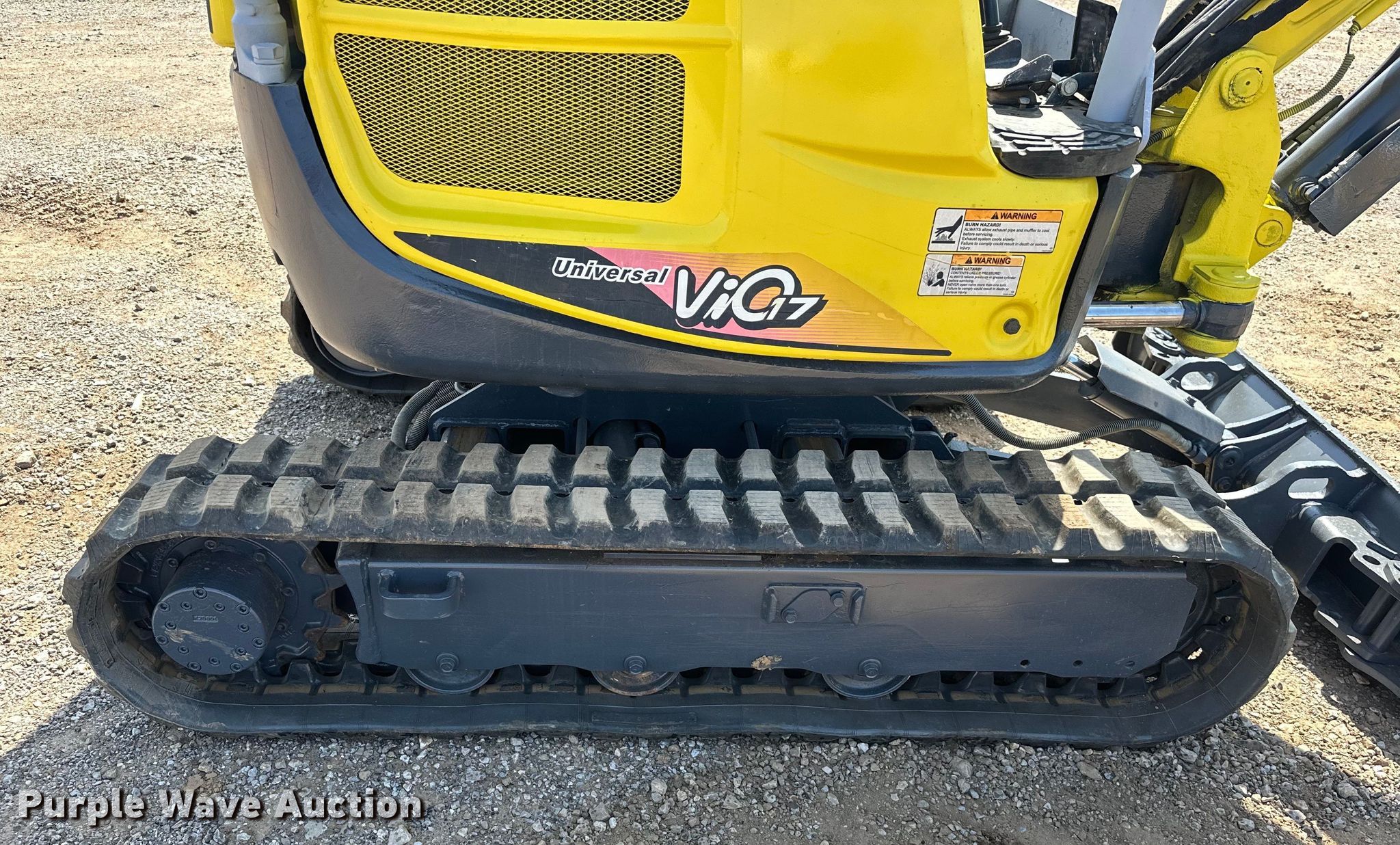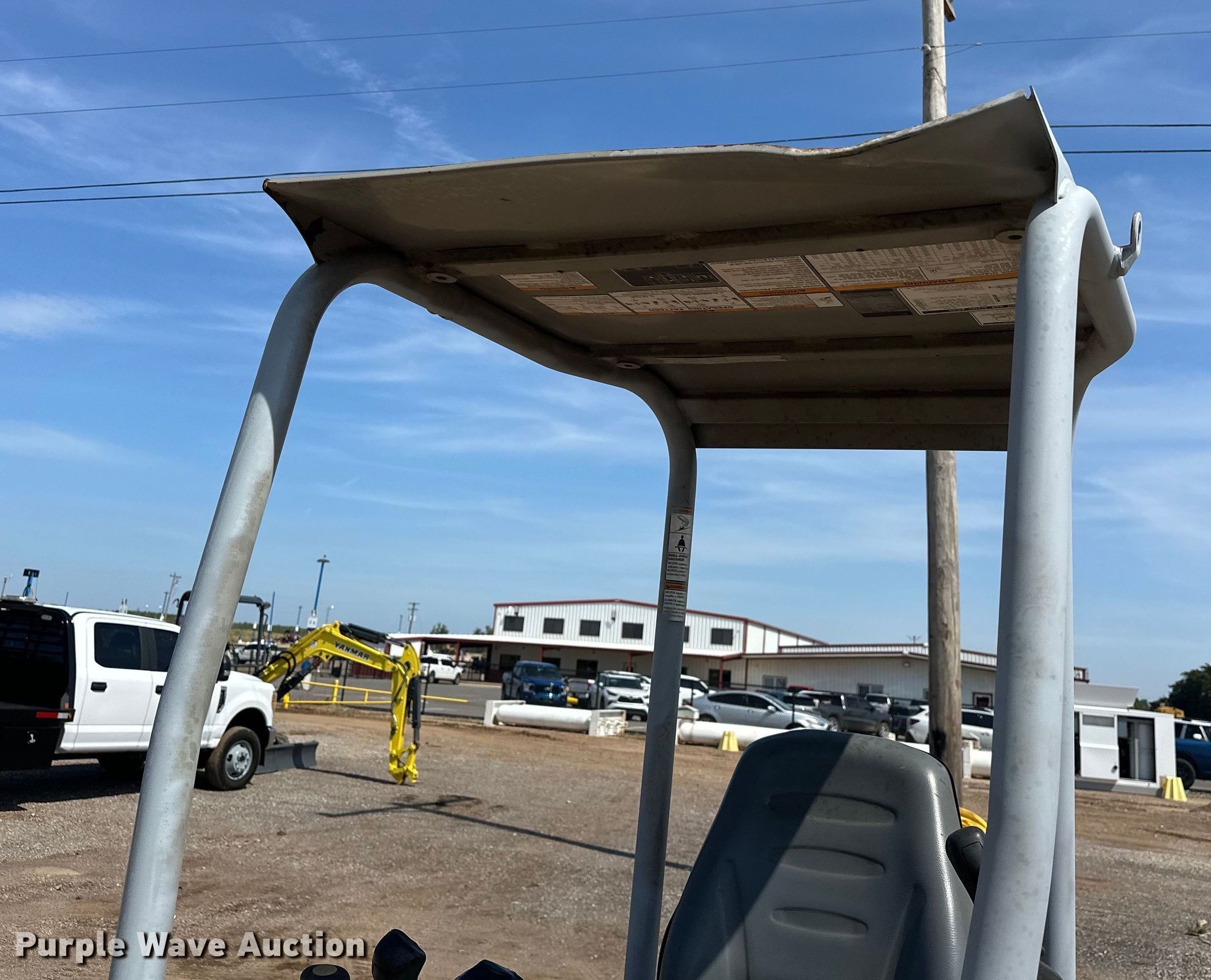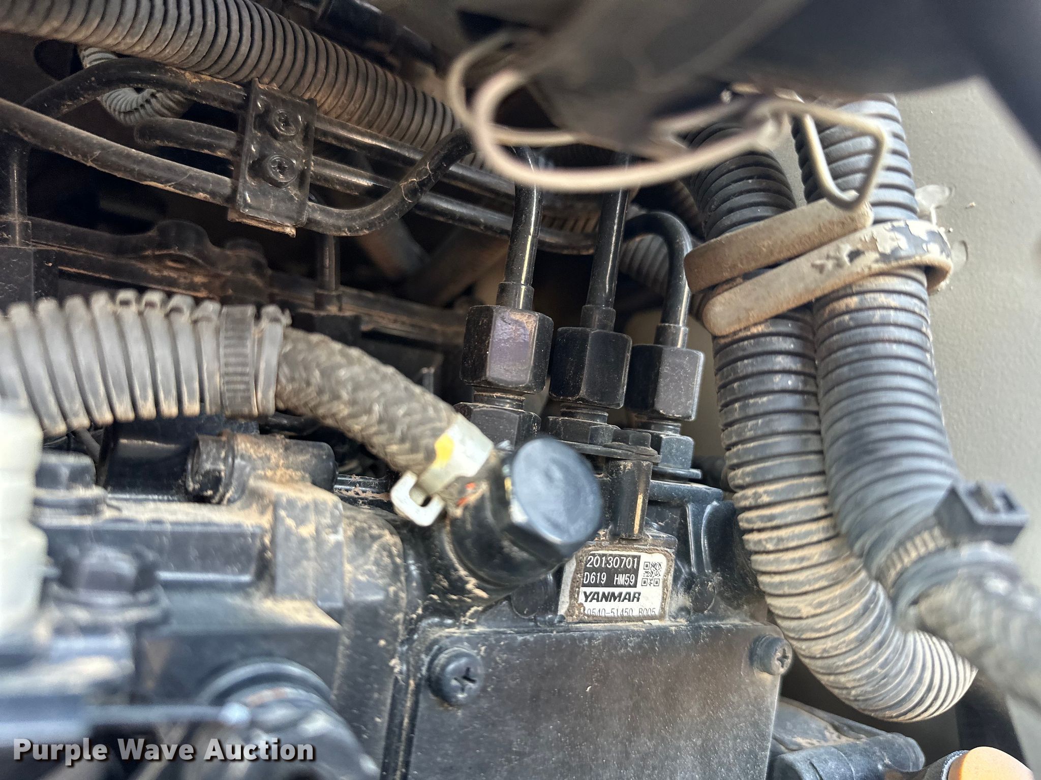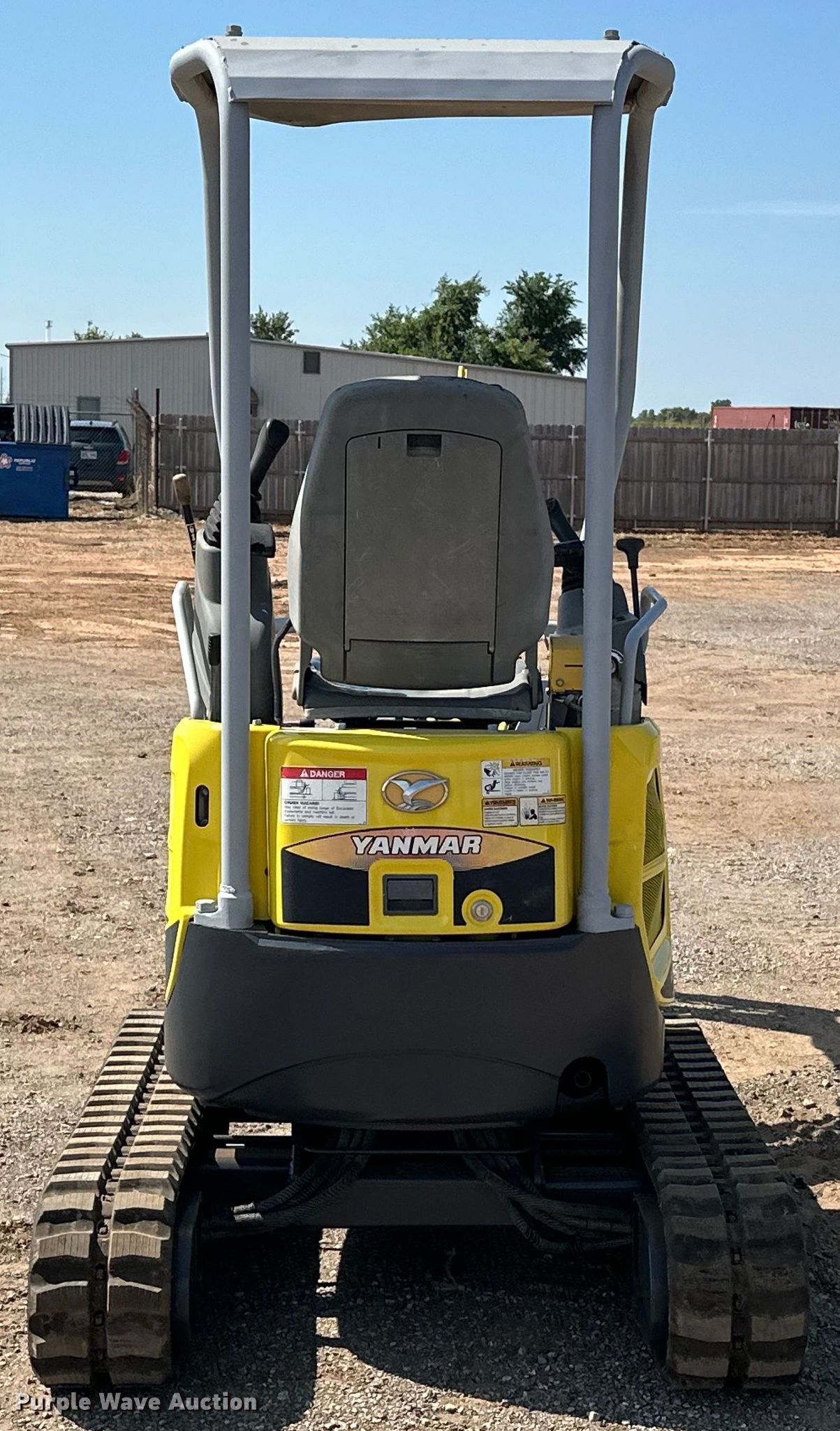 2014 Yanmar VI017 mini excavator. Hours: 2,008 on meter, Serial: YMRVI017VDYJ09380. Engine Yanmar 3TNV70-XBV, Serial: A1151, Displacement: 0.854L, Cylinders: 3, Fuel type: Diesel. Transmission Hydrostatic. Operators station OROPS, Pattern changer. Features Auxiliary hydraulics Standard, Two-way, Backfill blade Width: 50.5", Boom Swing, Stick Stick length: 3' 2", Quick coupler: Mechanical, Bucket TAG, Width: 12", Teeth: 3. Tracks Width: 9", Rubber. Norman, OK 73072