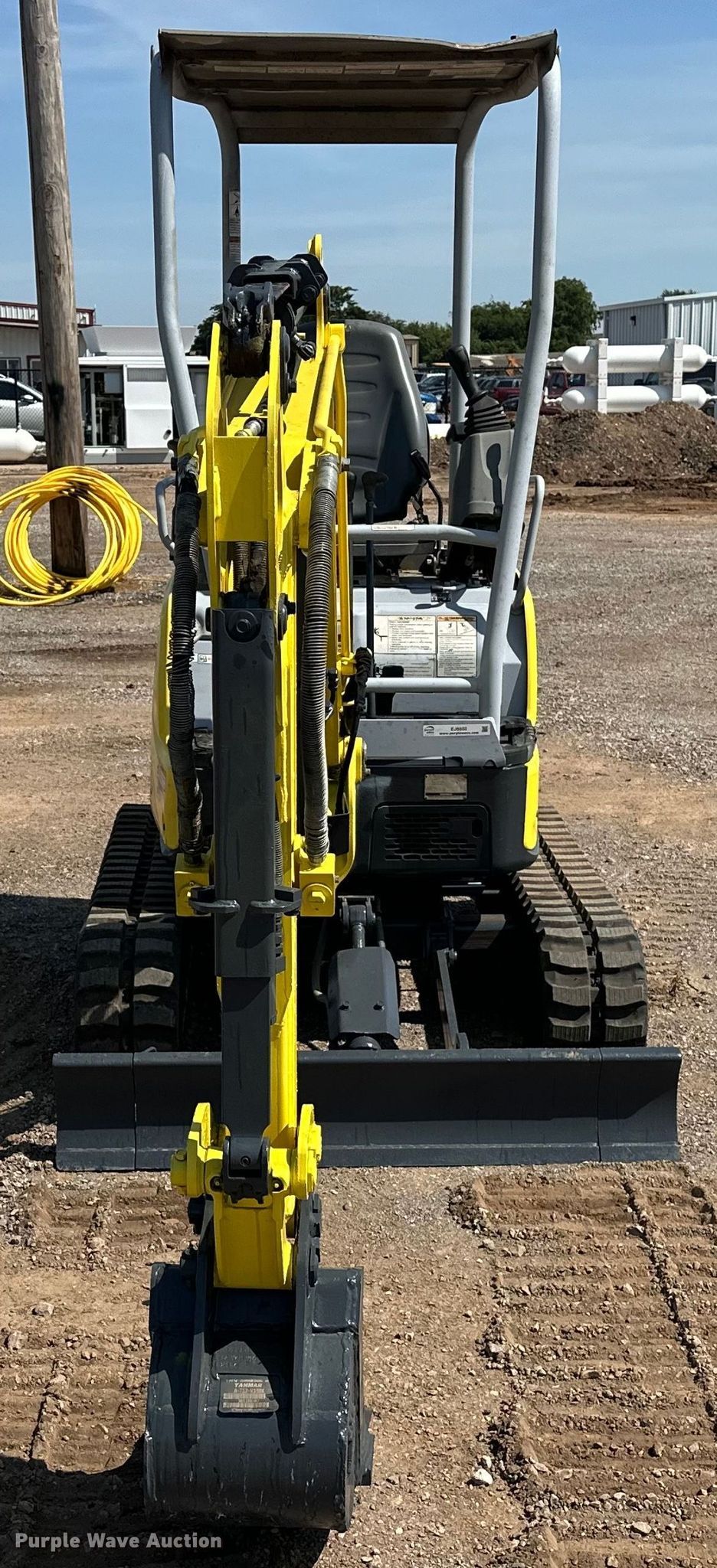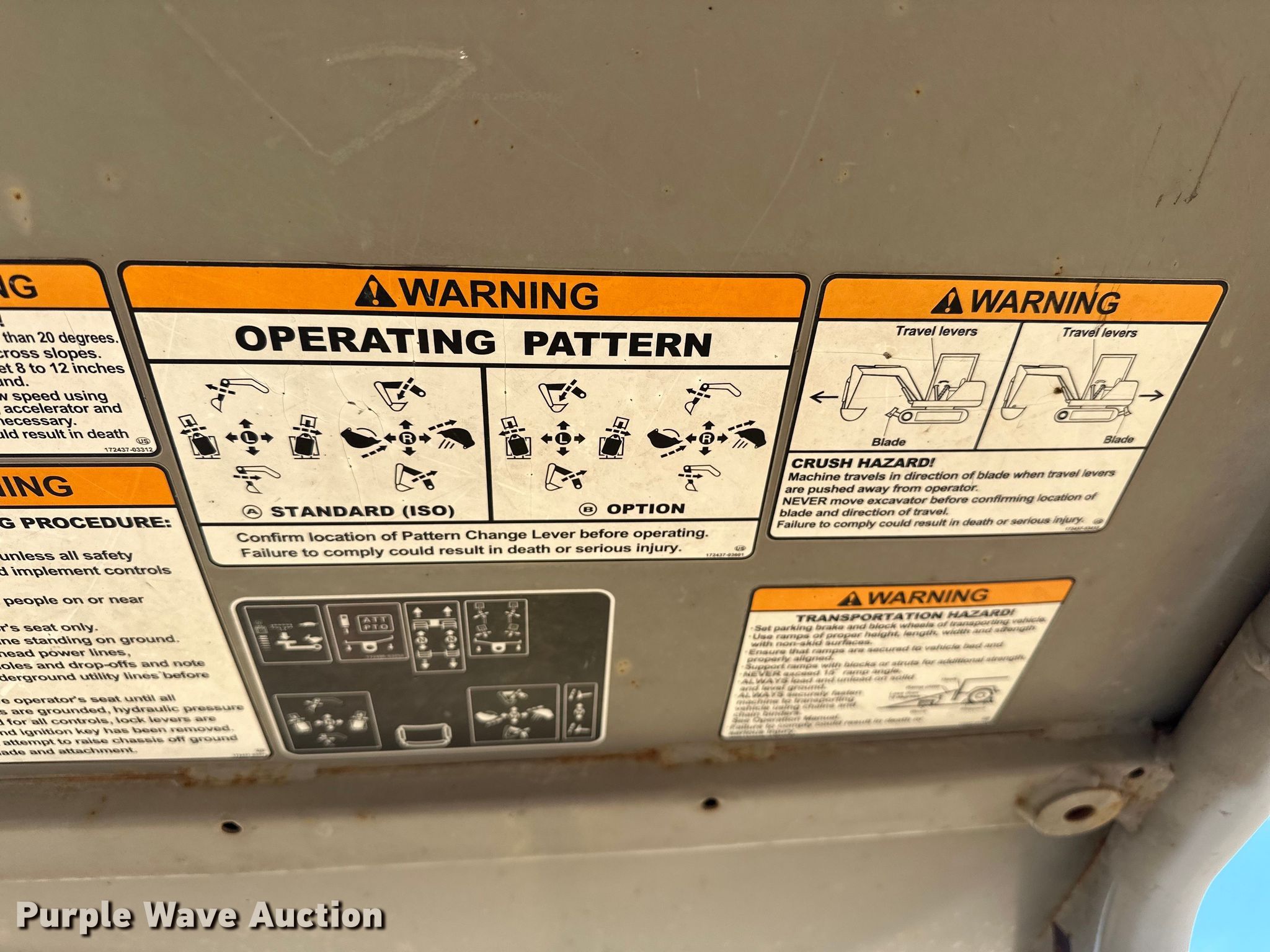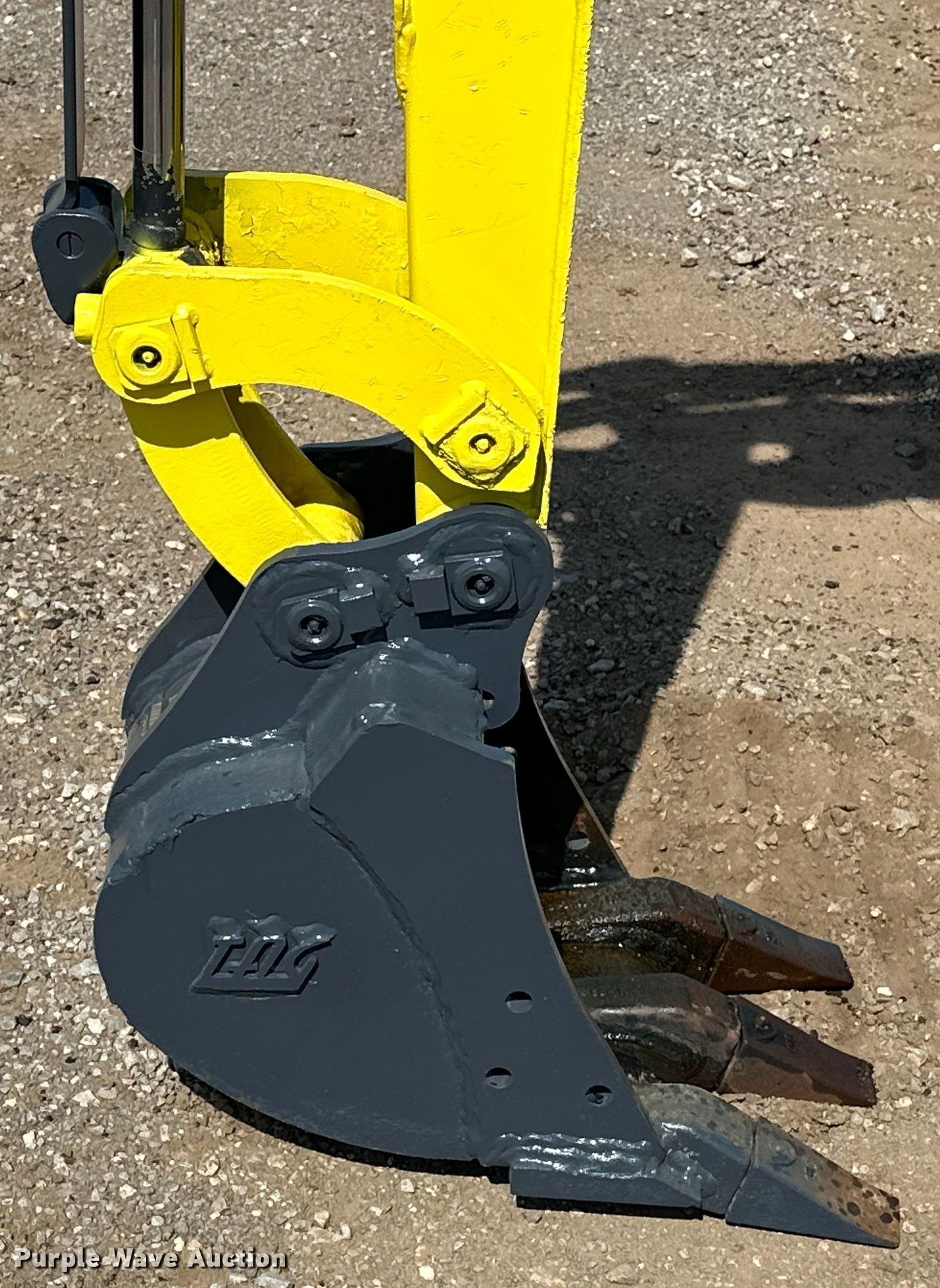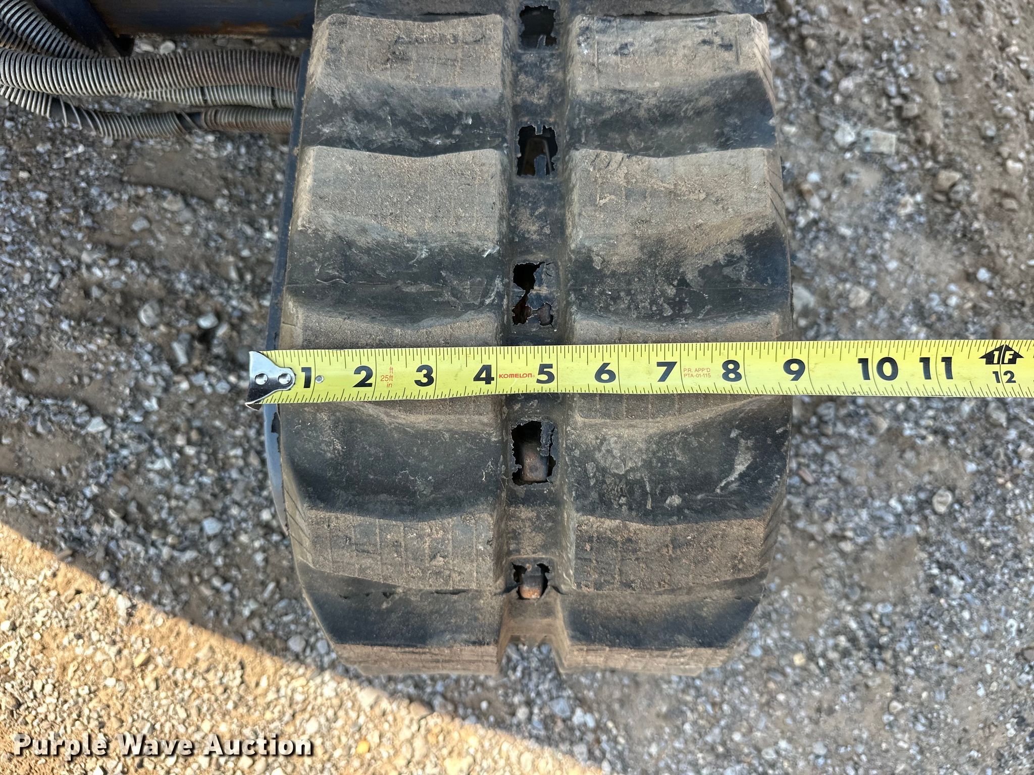 2014 Yanmar VI017 mini excavator. Hours: 2,008 on meter, Serial: YMRVI017VDYJ09380. Engine Yanmar 3TNV70-XBV, Serial: A1151, Displacement: 0.854L, Cylinders: 3, Fuel type: Diesel. Transmission Hydrostatic. Operators station OROPS, Pattern changer. Features Auxiliary hydraulics Standard, Two-way, Backfill blade Width: 50.5", Boom Swing, Stick Stick length: 3' 2", Quick coupler: Mechanical, Bucket TAG, Width: 12", Teeth: 3. Tracks Width: 9", Rubber. Norman, OK 73072