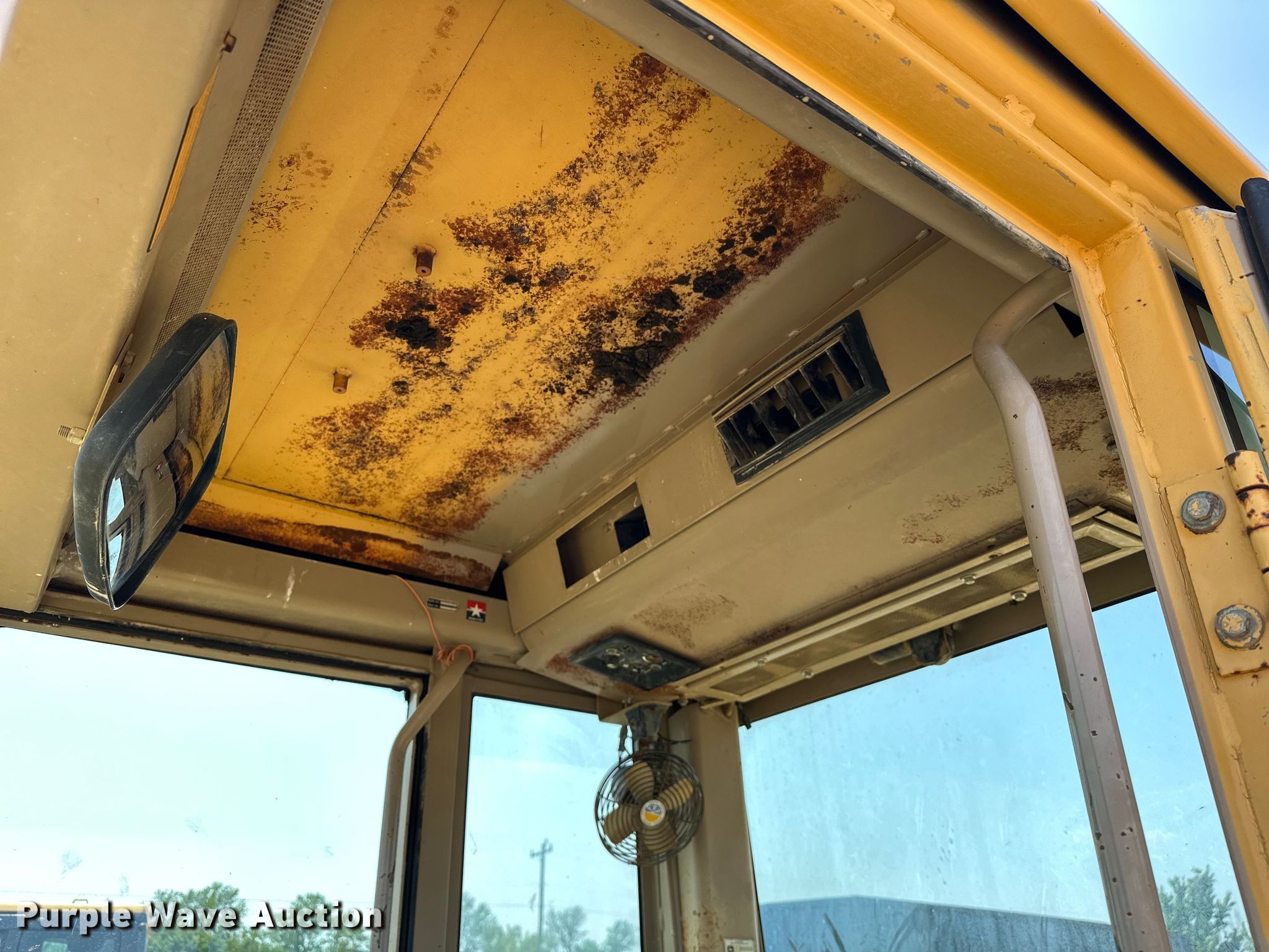 1993 John Deere 670B motor grader. Hours: 14,172 on meter, Serial: DW670BX543198. Engine John Deere, Cylinders: 6, Fuel type: Diesel. Transmission Powershift, 8F - 4R. Chassis Differential lock. Operators station Enclosed cab, Hydraulic control valves: 8. Features Moldboard: Tip control, Side shift, Moldboard total width: 14'. Tires Size: 14.00-24. Notes Right turntable hydraulic cylinder leak. Five Star Recycling. Oktaha, OK 74450