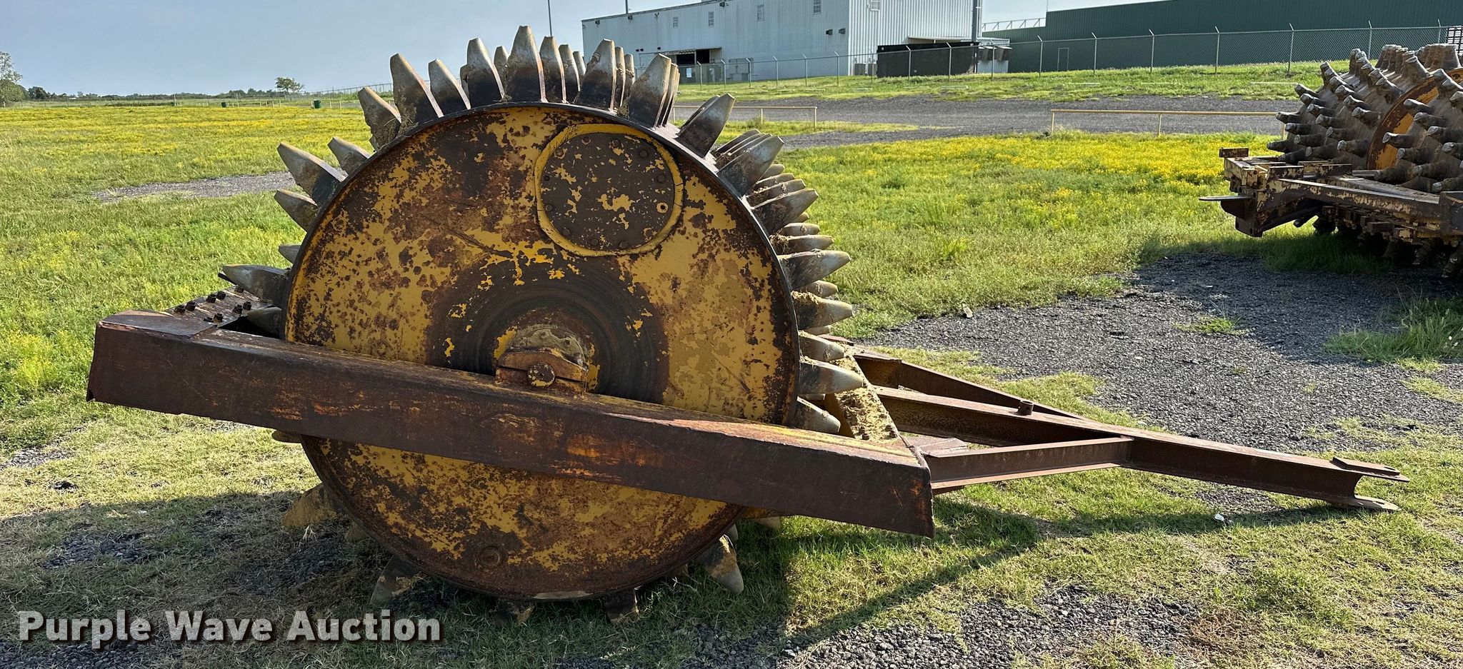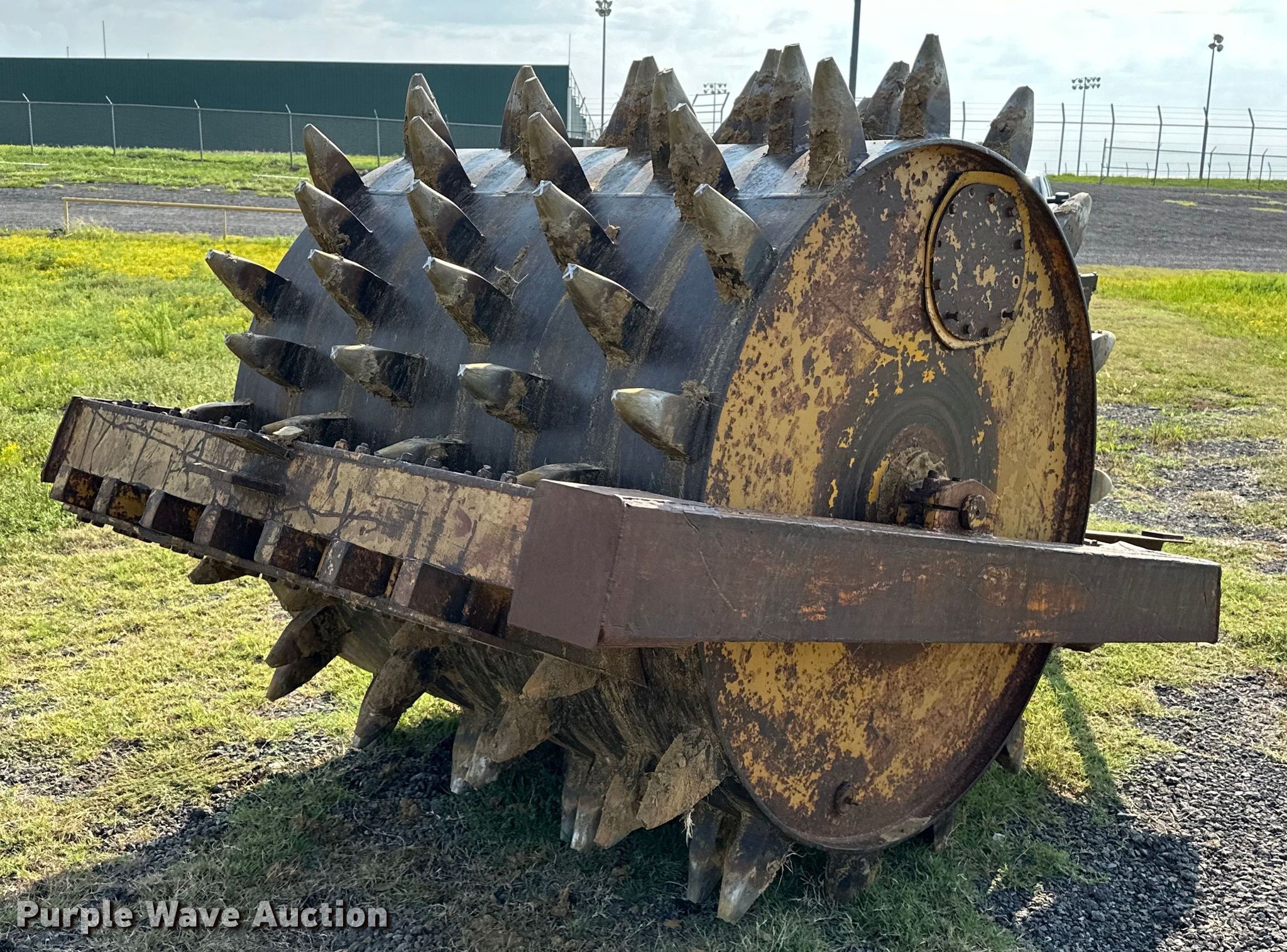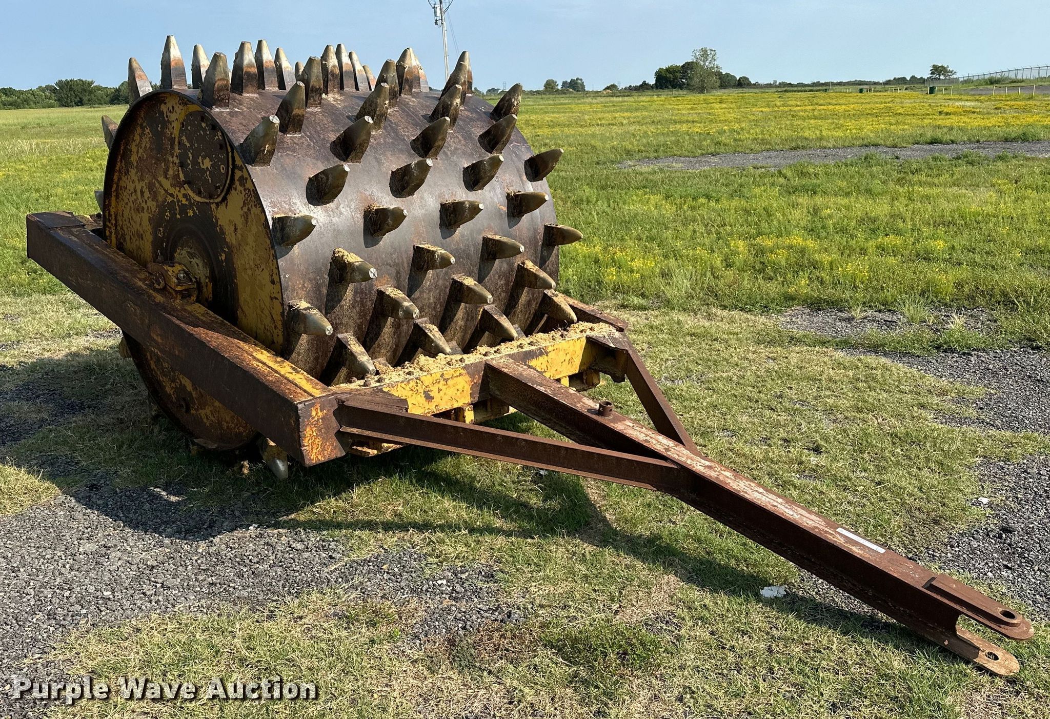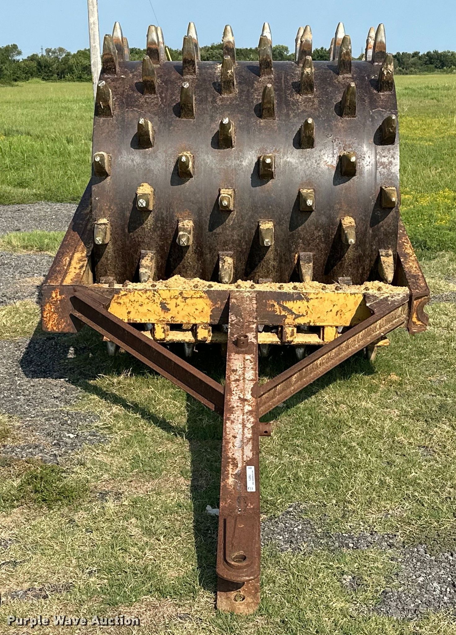 Purple Wave is selling a used Pull Type Roller Compactor in Oklahoma. This item is a Single drum roller with the following: Drum: Wedge foot, Front drum, Width: 60", Diameter: 72", Rear drum, Drum scrapers: Front, Rear