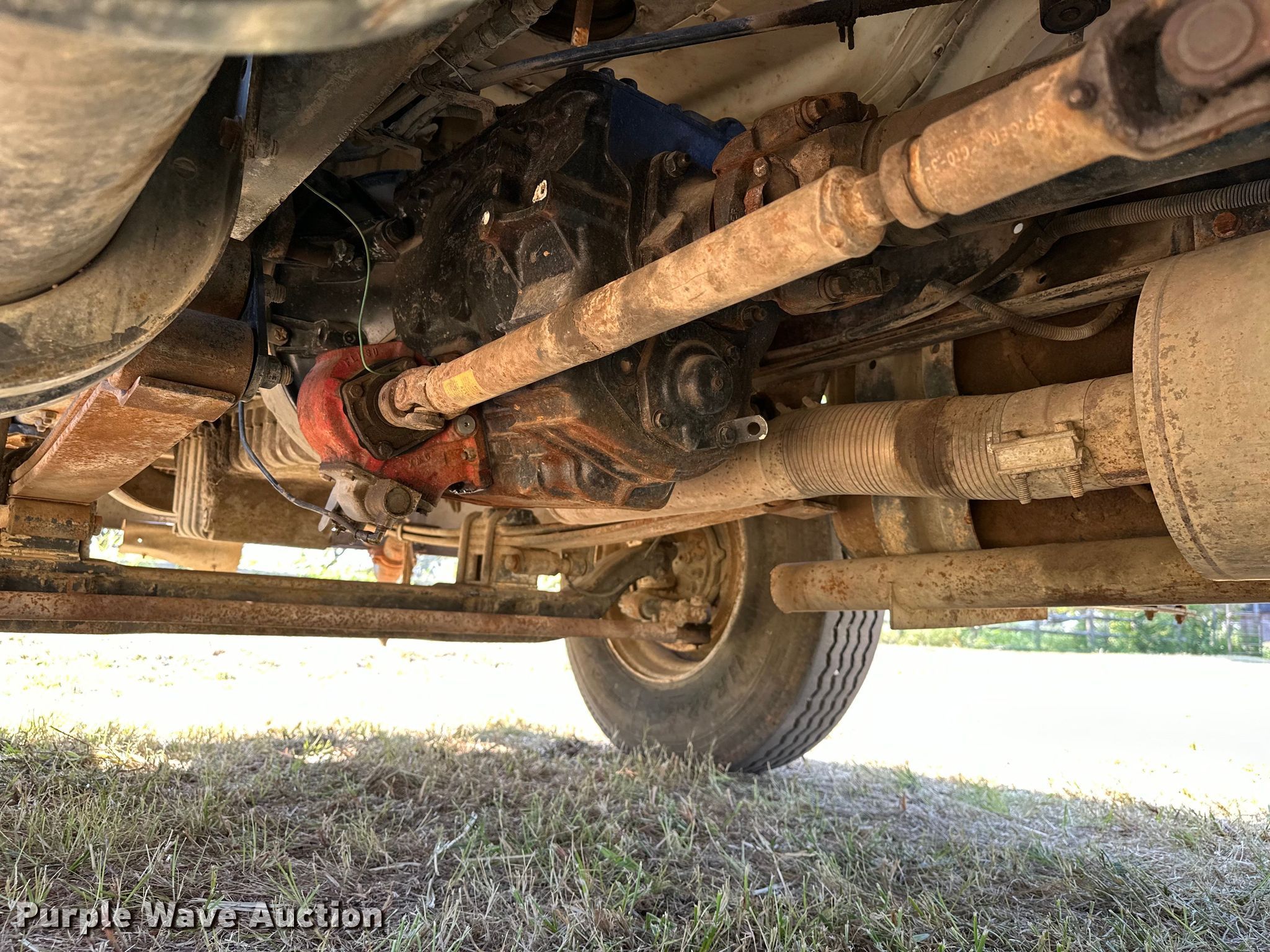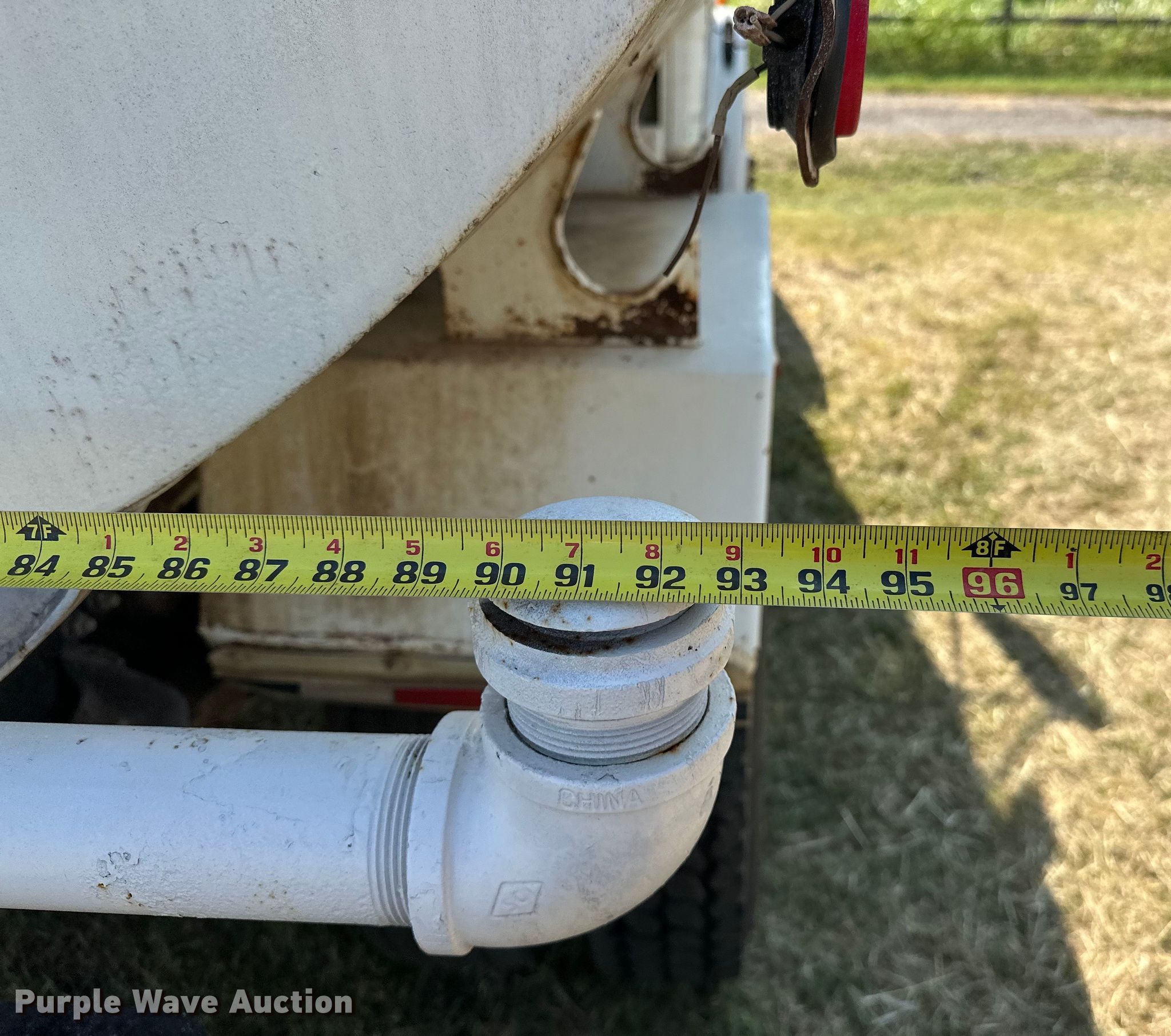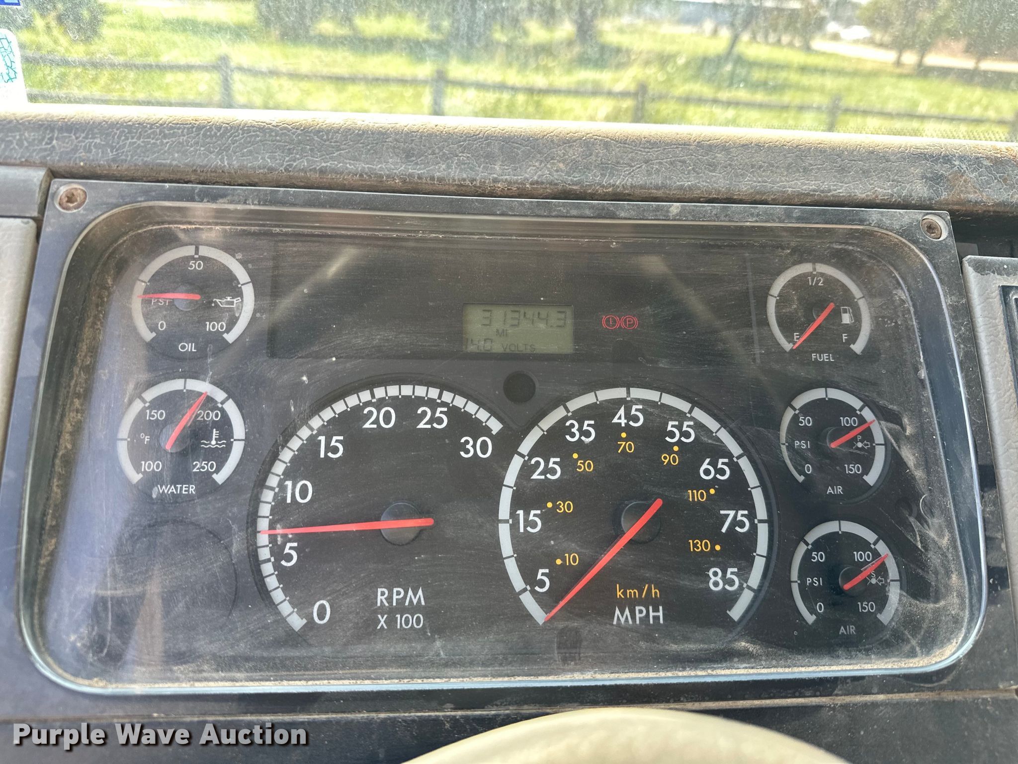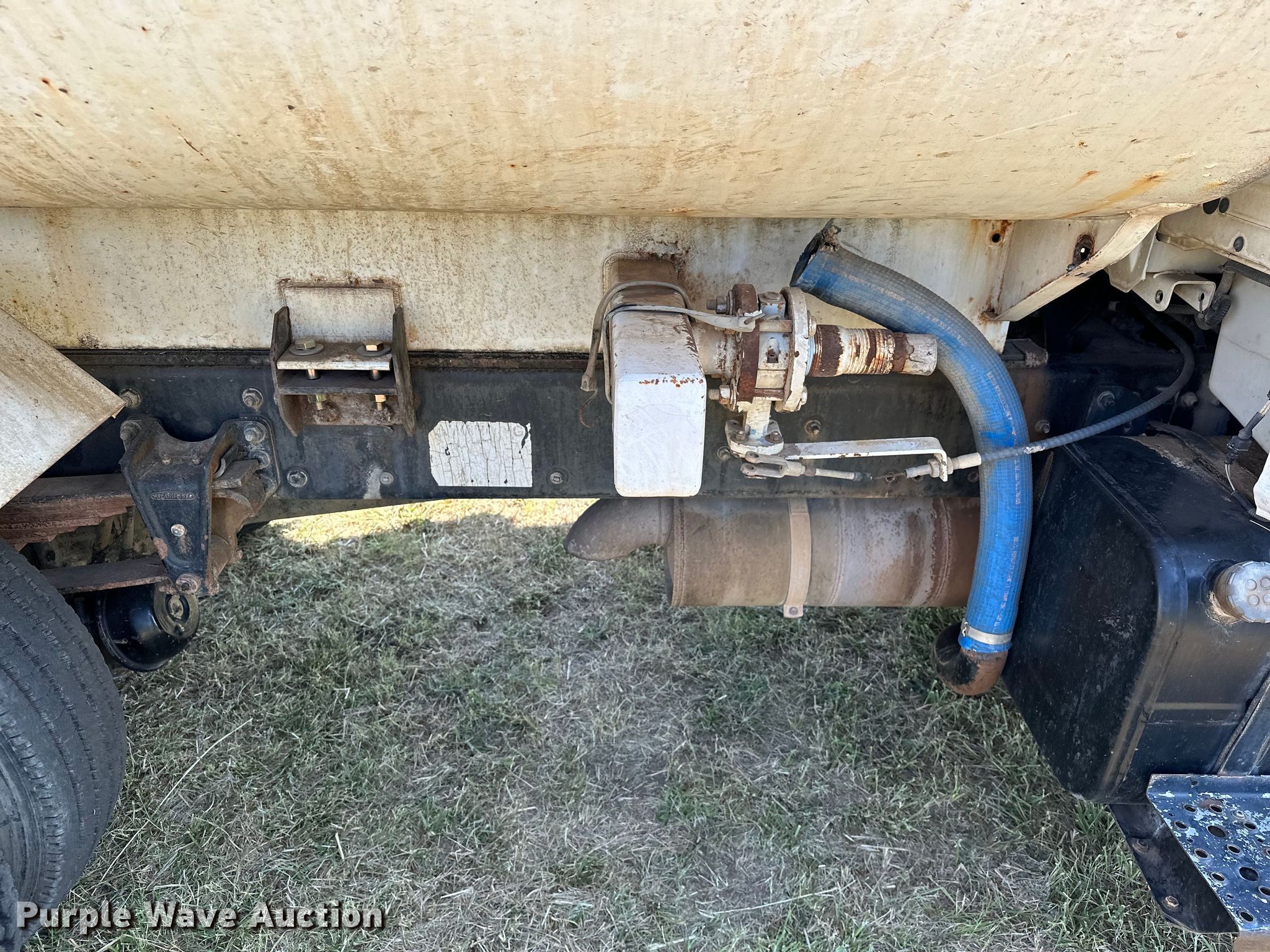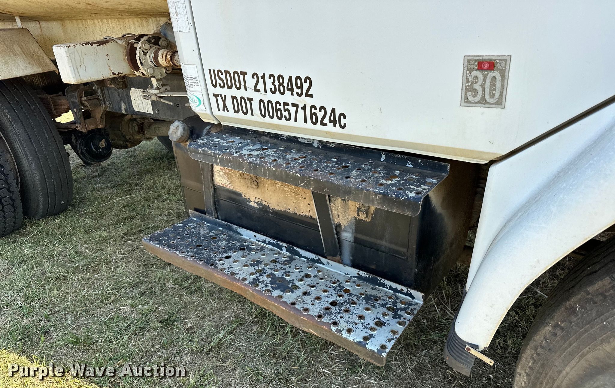 2001 Freightliner FL70 water truck. Miles: 31,344 on odometer, VIN: 1FVABTAK31HG68580. Engine Caterpillar 3126, Serial: 8YL71582, Displacement: 7.2L, Cylinders: 6, Fuel type: Diesel. Transmission Manual, Speed: 6. Chassis Axles: Single, Suspension: Spring, Brakes: Air, PTO, GVWR: 29,000 lbs. Interior Cruise control. Features Bed / tank Valew, 10' L x 96" W, Spray bar: Front, Rear, Side discharge, Hose reel, Top fill. Tires Size: 11R22.5. Notes Dead battery, Non-operational passenger window. Oklahoma title. Patriot Environmental, LLC. Meeker, OK 74855