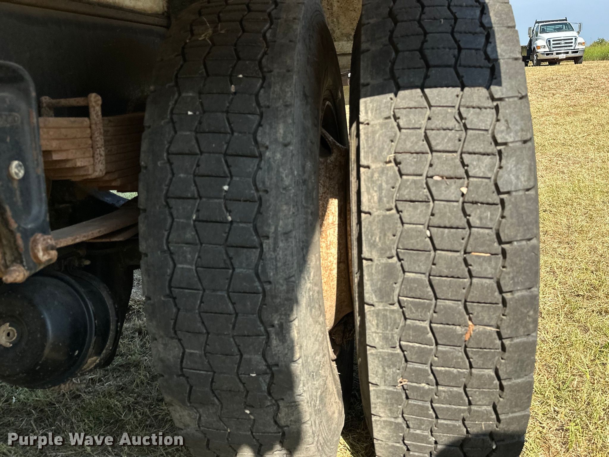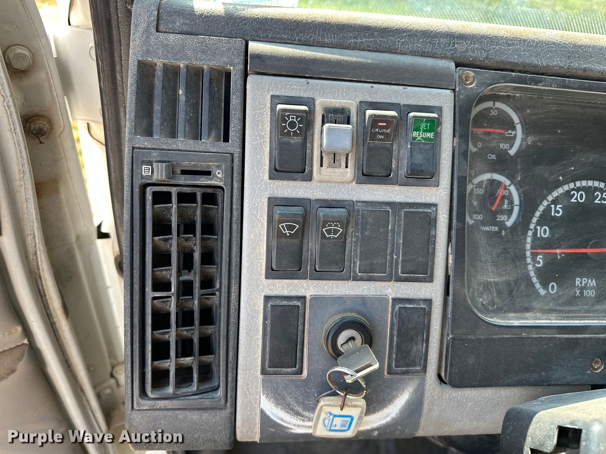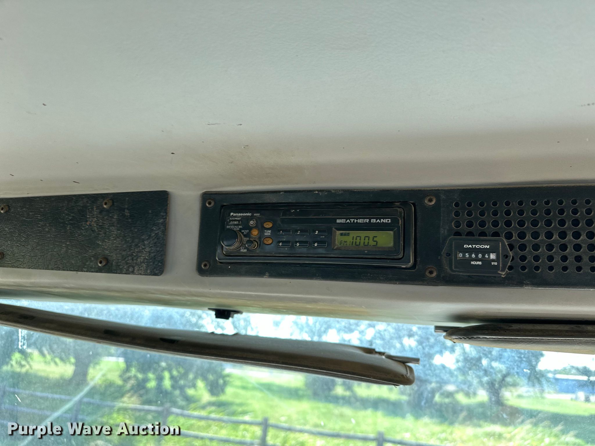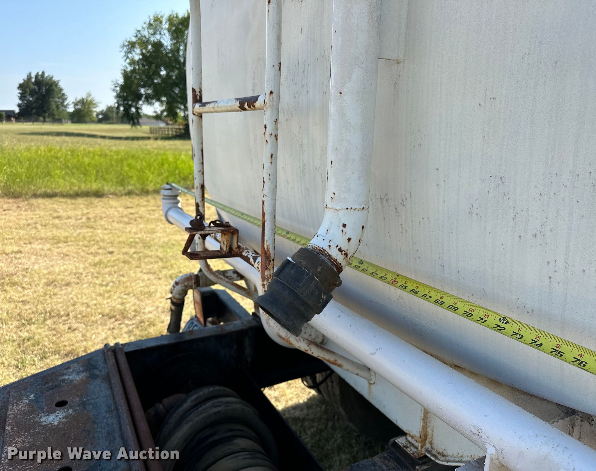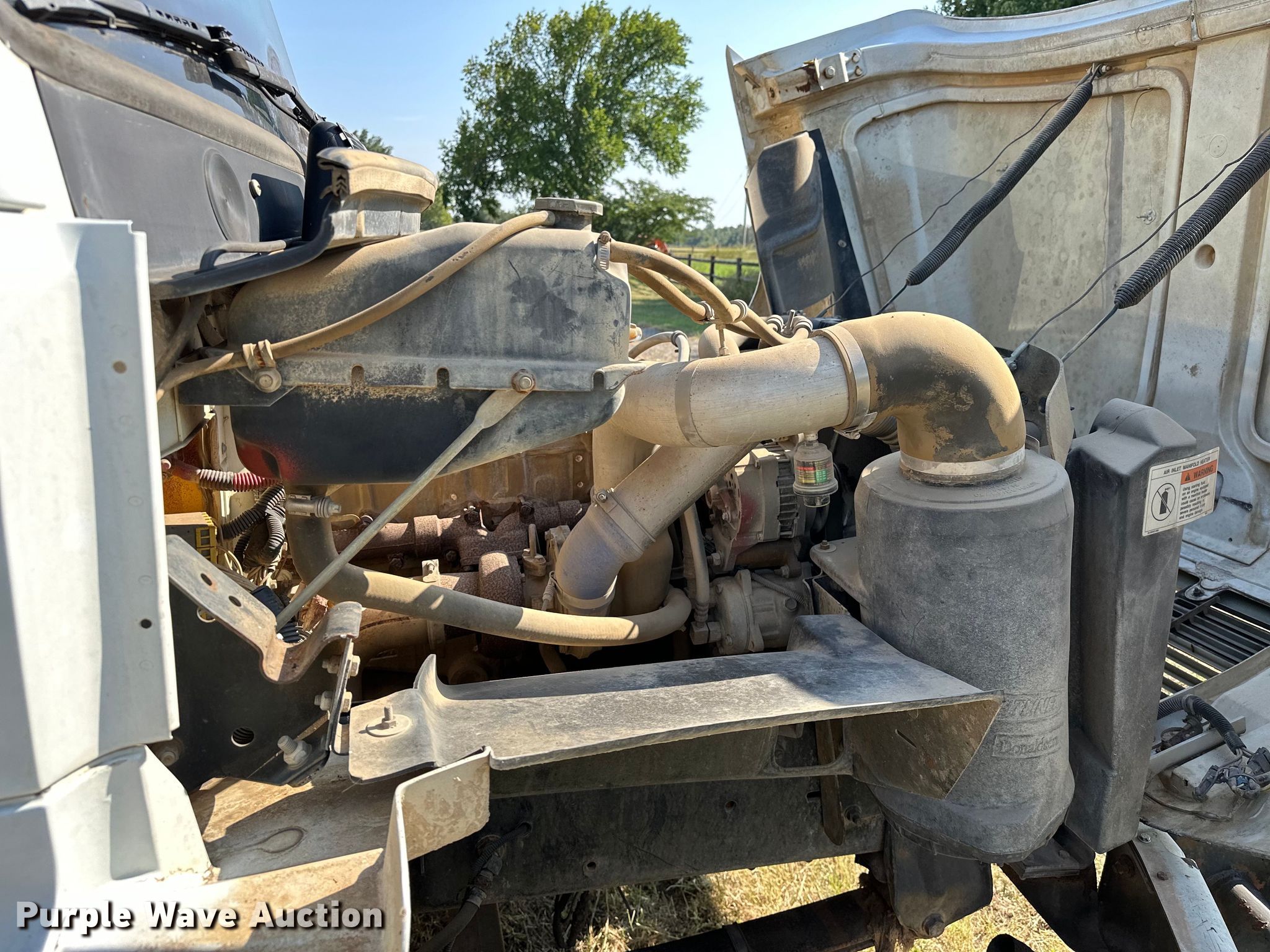 2001 Freightliner FL70 water truck. Miles: 31,344 on odometer, VIN: 1FVABTAK31HG68580. Engine Caterpillar 3126, Serial: 8YL71582, Displacement: 7.2L, Cylinders: 6, Fuel type: Diesel. Transmission Manual, Speed: 6. Chassis Axles: Single, Suspension: Spring, Brakes: Air, PTO, GVWR: 29,000 lbs. Interior Cruise control. Features Bed / tank Valew, 10' L x 96" W, Spray bar: Front, Rear, Side discharge, Hose reel, Top fill. Tires Size: 11R22.5. Notes Dead battery, Non-operational passenger window. Oklahoma title. Patriot Environmental, LLC. Meeker, OK 74855
