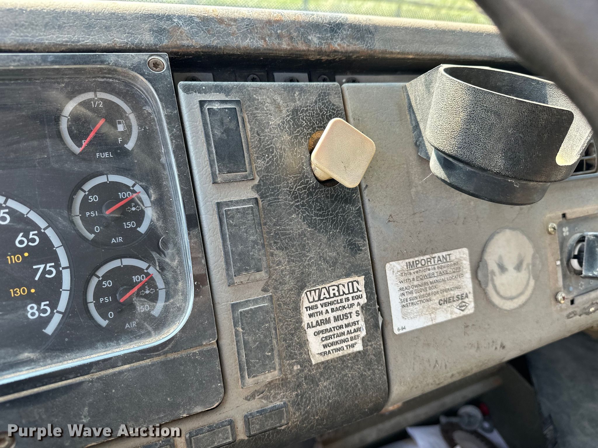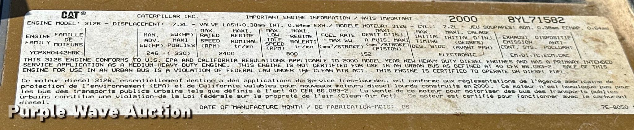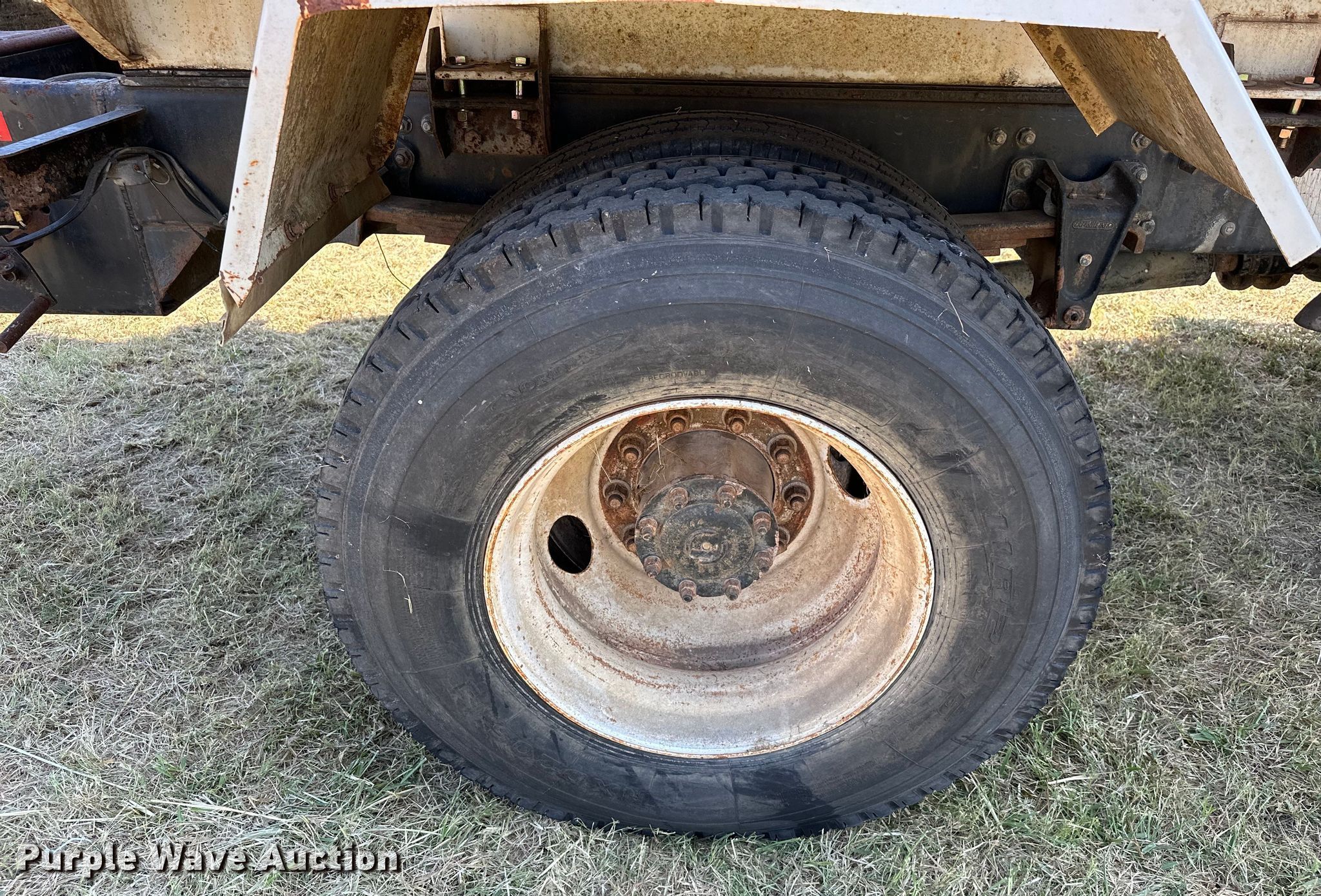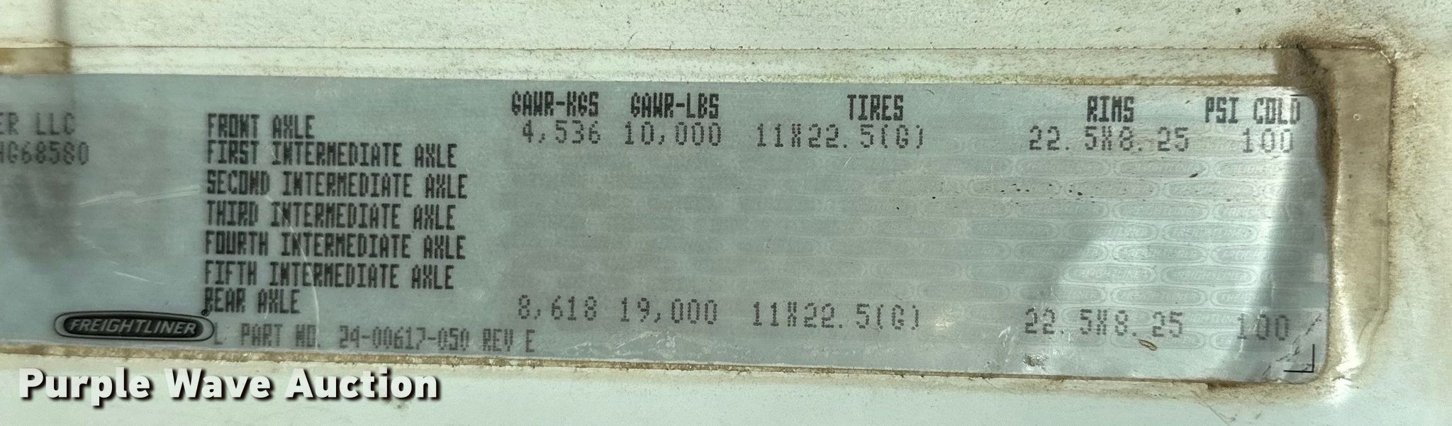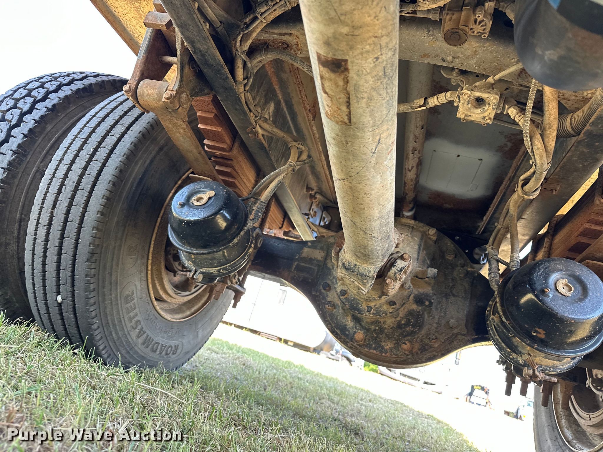 2001 Freightliner FL70 water truck. Miles: 31,344 on odometer, VIN: 1FVABTAK31HG68580. Engine Caterpillar 3126, Serial: 8YL71582, Displacement: 7.2L, Cylinders: 6, Fuel type: Diesel. Transmission Manual, Speed: 6. Chassis Axles: Single, Suspension: Spring, Brakes: Air, PTO, GVWR: 29,000 lbs. Interior Cruise control. Features Bed / tank Valew, 10' L x 96" W, Spray bar: Front, Rear, Side discharge, Hose reel, Top fill. Tires Size: 11R22.5. Notes Dead battery, Non-operational passenger window. Oklahoma title. Patriot Environmental, LLC. Meeker, OK 74855