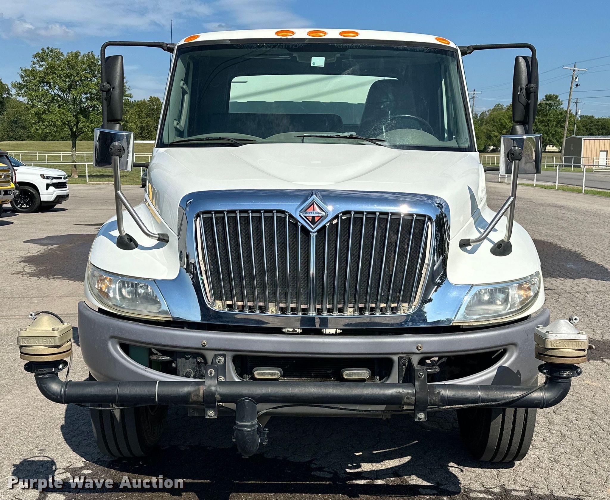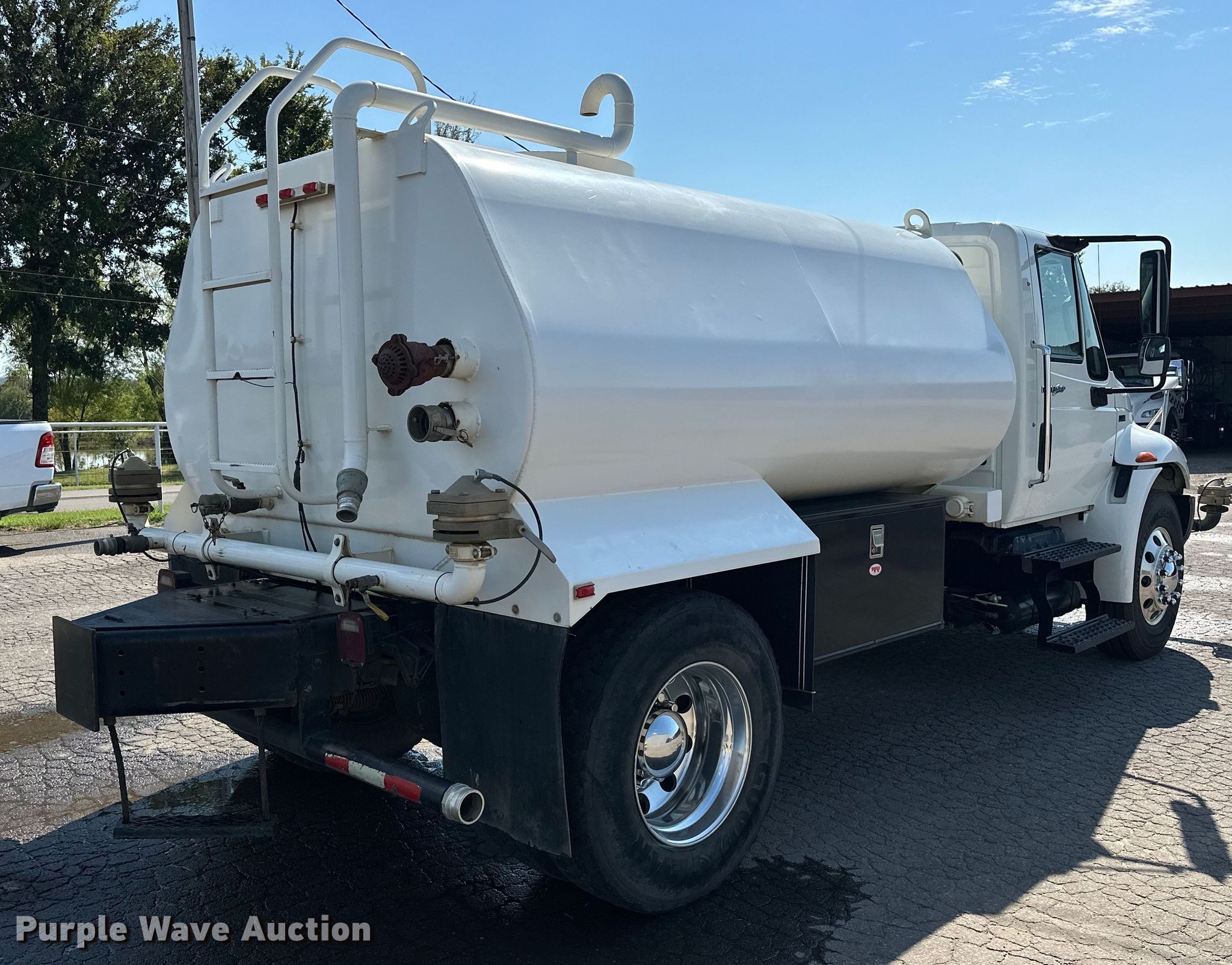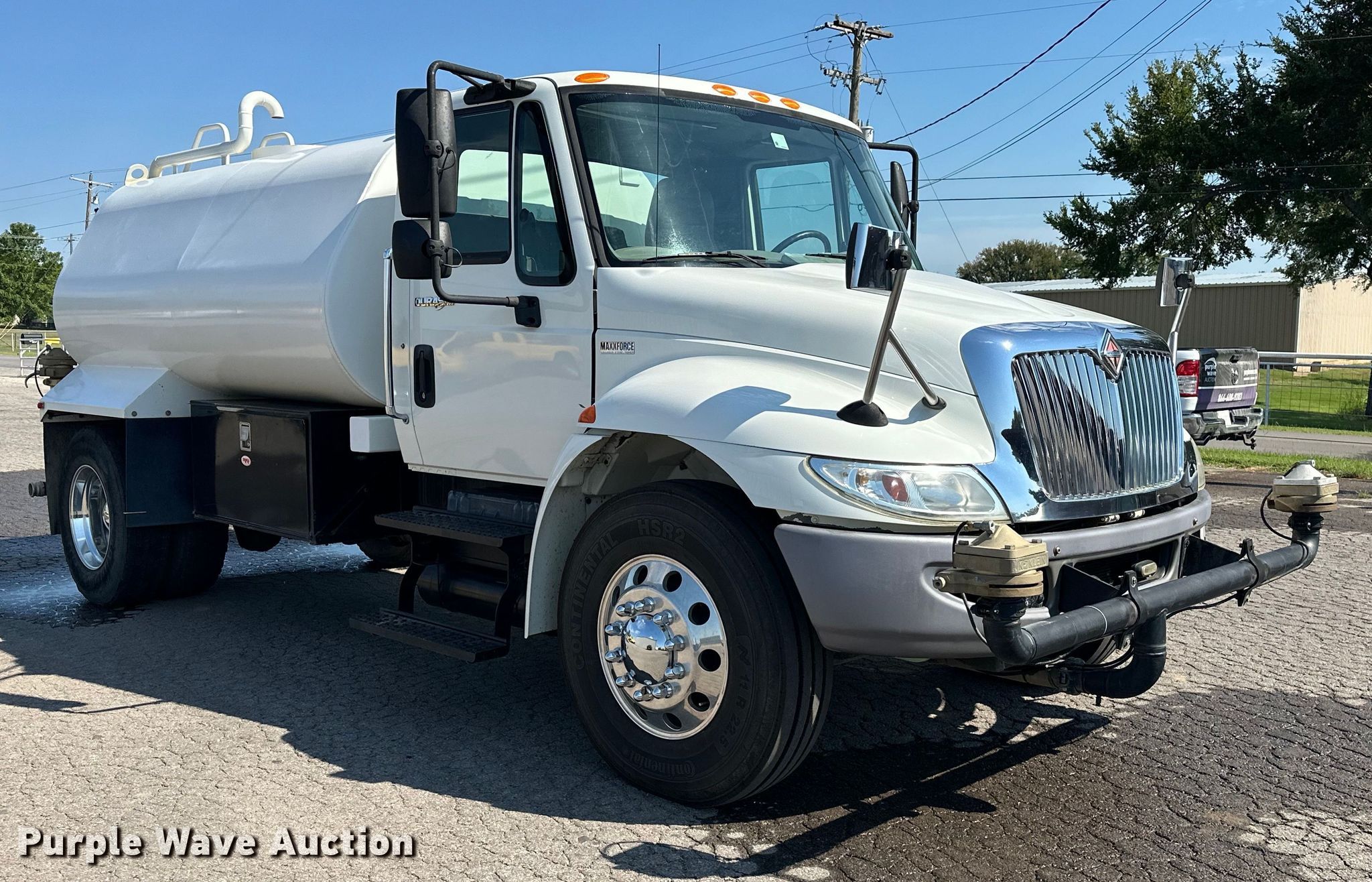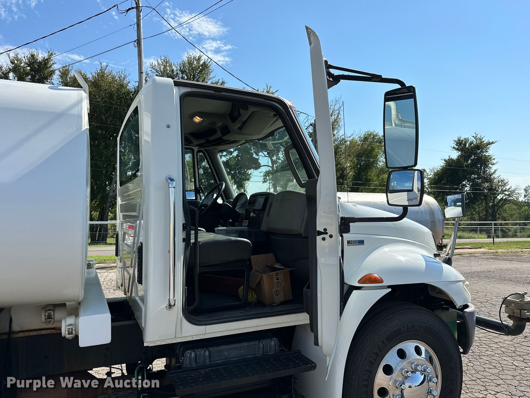 2012 International DuraStar 4300 water truck. Miles: 48,494 on odometer, Hours: 3,794 on meter, VIN: 1HTJTSKNXCH076575. Engine International Maxxforce, Displacement: 6.4L, Cylinders: 8, Fuel type: Diesel. Transmission Automatic. Chassis Axles: Single, Suspension: Spring, Brakes: Air, PTO, GVWR: 33,000 lbs. Interior AC, Heat, Power windows, Power locks, Cruise control, Auxiliary controls, Backup camera. Features Bed / tank KPKlein K-200, Serial: 40931, Capacity: 2,000 gallons, 10' L x 90" W, Spray bar: Front, Rear, Side discharge, Top fill, Rear drain: 2.5", Rear outlet: 3", Tank liner. Tires Size: 11R22.5. Notes Windshield chipped or cracked. Oklahoma title. Title distribution may be delayed up to 14 days from verification of funds. Moore Contracting Co. inc.. Pocola, OK 74902