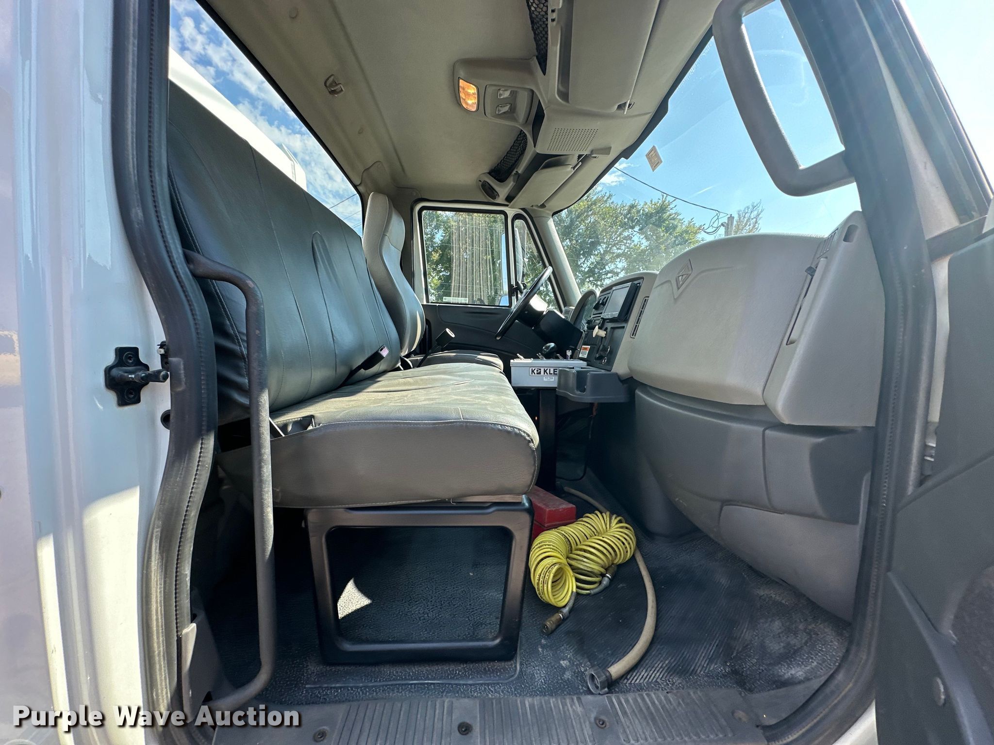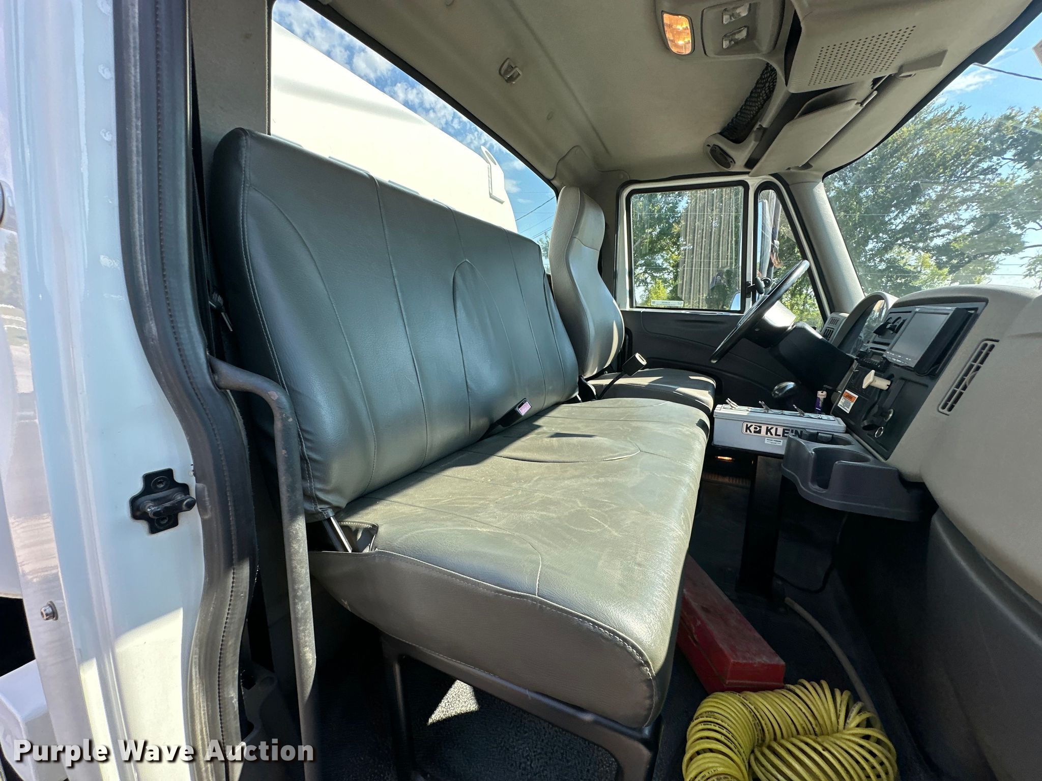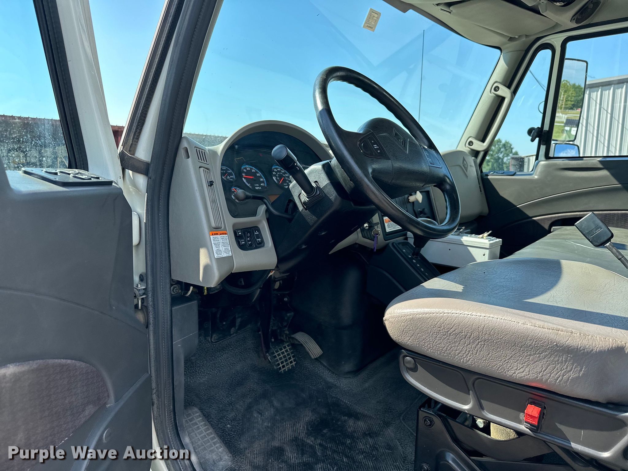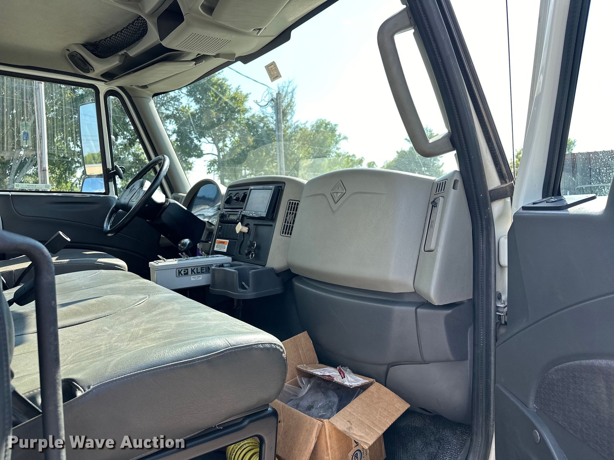 2012 International DuraStar 4300 water truck. Miles: 48,494 on odometer, Hours: 3,794 on meter, VIN: 1HTJTSKNXCH076575. Engine International Maxxforce, Displacement: 6.4L, Cylinders: 8, Fuel type: Diesel. Transmission Automatic. Chassis Axles: Single, Suspension: Spring, Brakes: Air, PTO, GVWR: 33,000 lbs. Interior AC, Heat, Power windows, Power locks, Cruise control, Auxiliary controls, Backup camera. Features Bed / tank KPKlein K-200, Serial: 40931, Capacity: 2,000 gallons, 10' L x 90" W, Spray bar: Front, Rear, Side discharge, Top fill, Rear drain: 2.5", Rear outlet: 3", Tank liner. Tires Size: 11R22.5. Notes Windshield chipped or cracked. Oklahoma title. Title distribution may be delayed up to 14 days from verification of funds. Moore Contracting Co. inc.. Pocola, OK 74902