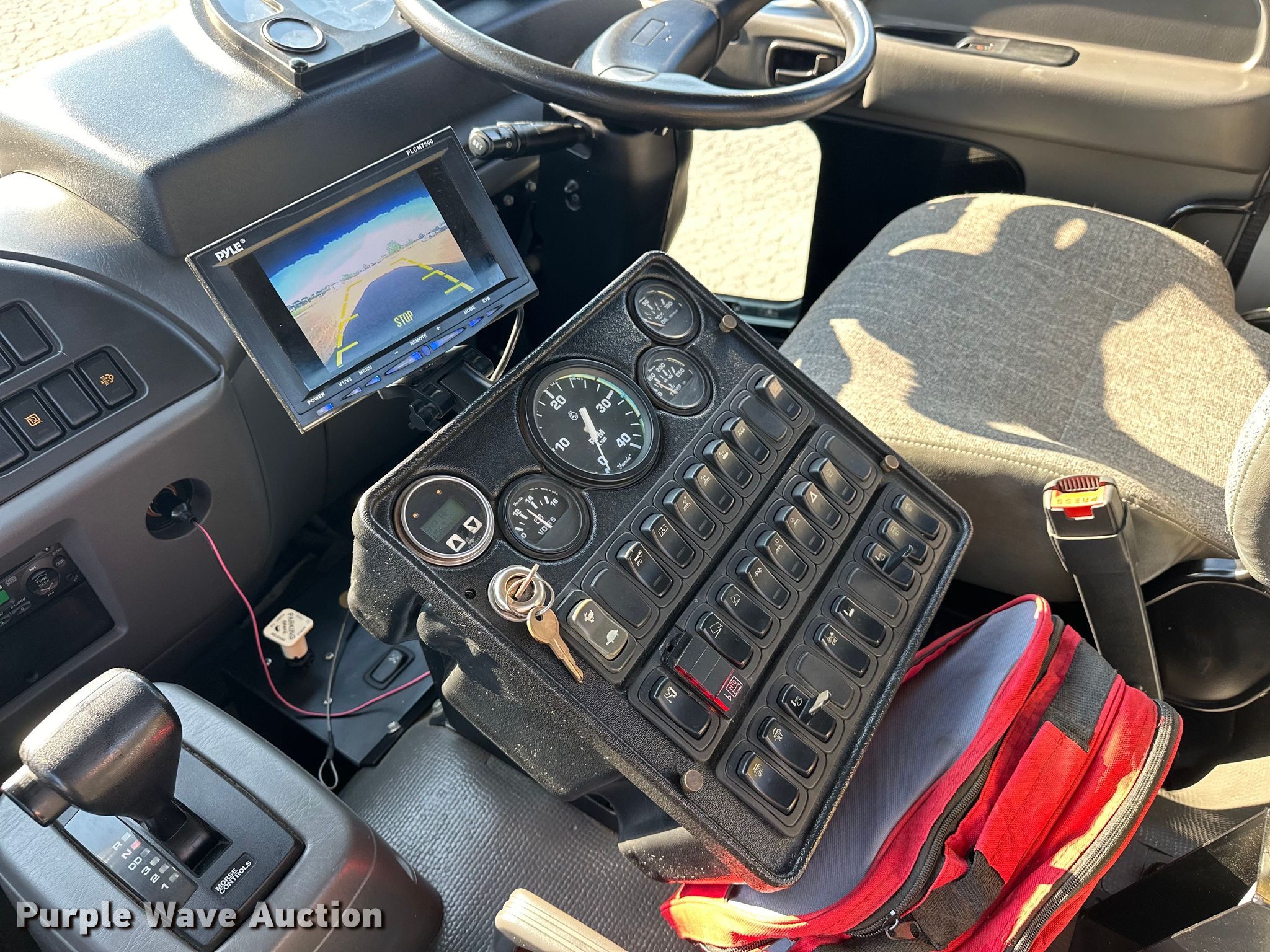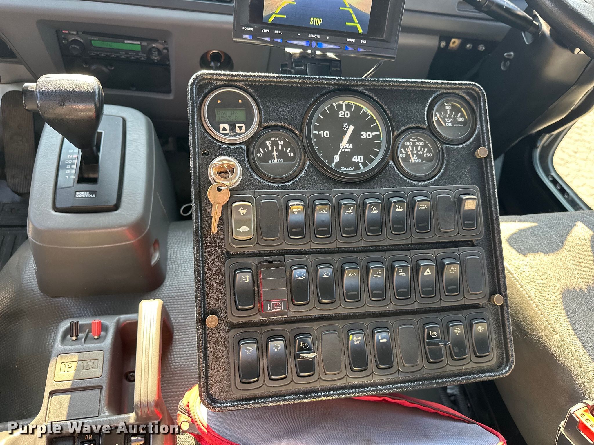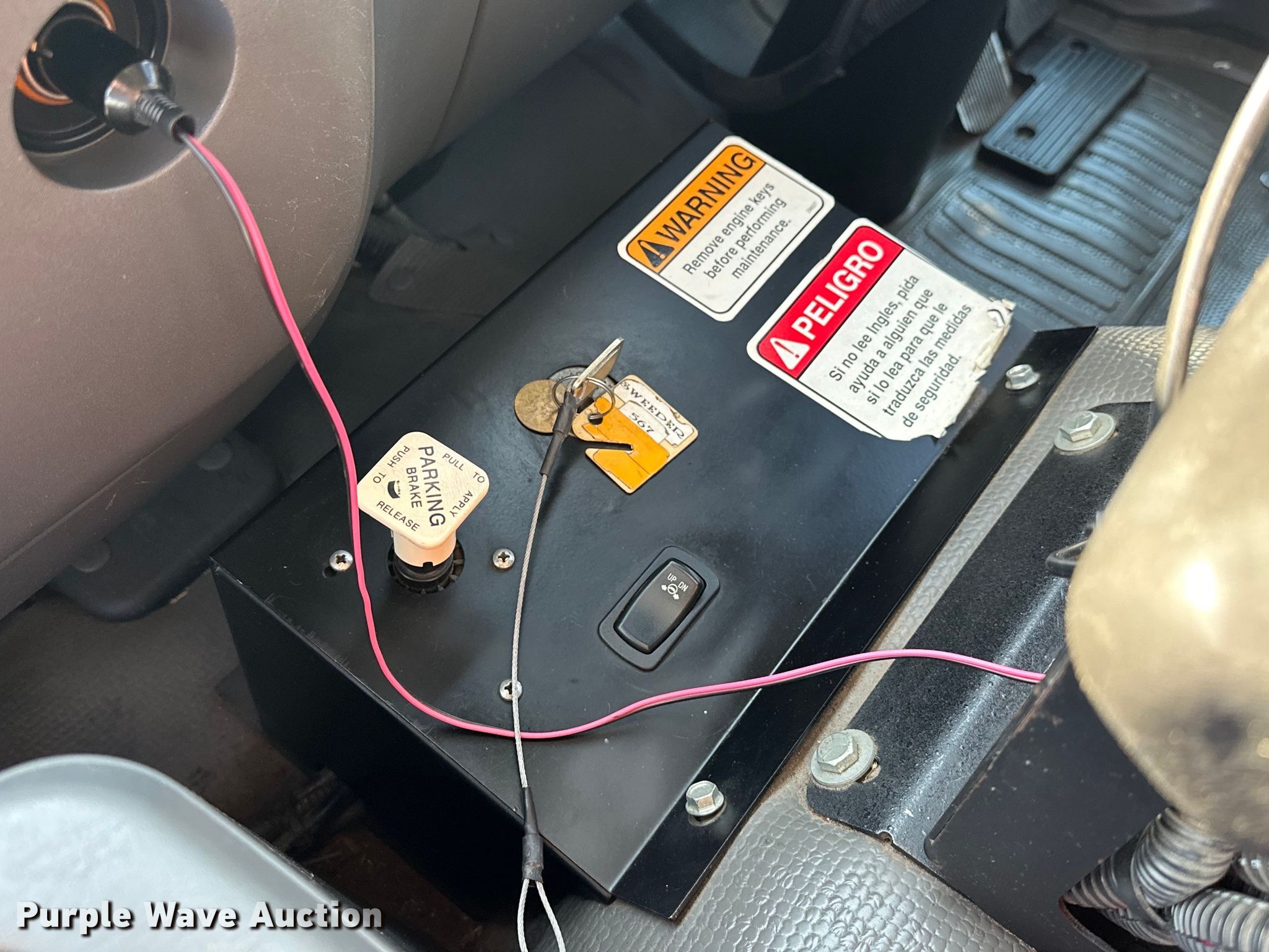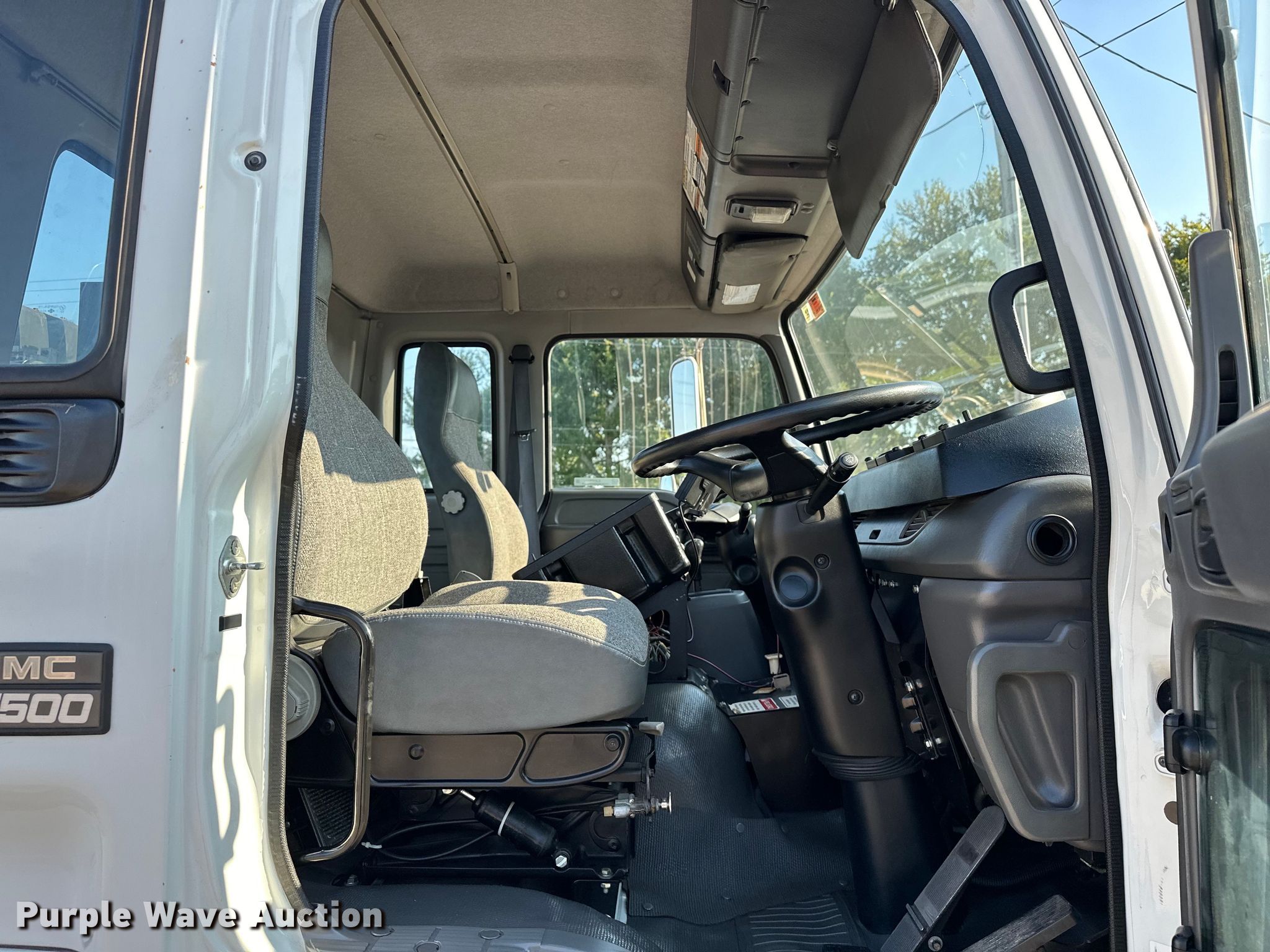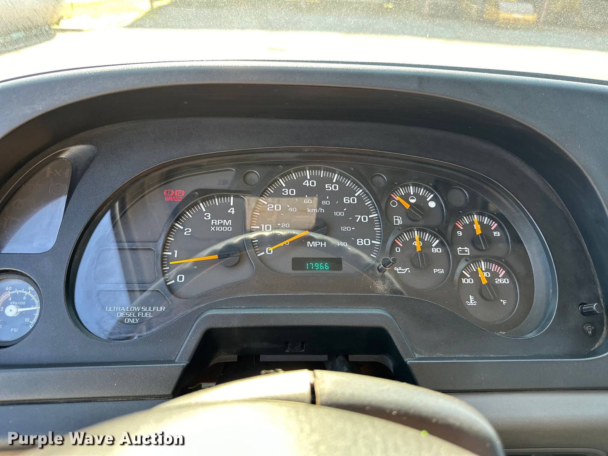 2008 GMC T7500 street sweeper truck. Miles: 17,966 on odometer, VIN: 1GDM7F1B28F413851. Engine Isuzu 6HK1X, Displacement: 475 C.I.D., Cylinders: 6, Fuel type: Diesel. Transmission Automatic. Chassis Suspension: Air, Brakes: Air, Dump valves, GVWR: 33,000 lbs. Operators station AC, Heat, Dual operating station, Video monitoring system. Features Sweeper bed Sweeper bed type: Vacuum Schwarze A7000, Serial: 09A70000365, Left gutter broom Diameter: 32", Right gutter broom Diameter: 32", Engine John Deere, Engine hours: 1564, Cylinders: 4. Tires Size: 11R22.5. Notes Dash warning indicator: Brake, Windshield chipped or cracked. Oklahoma title. Title distribution may be delayed up to 14 days from verification of funds. Moore Contracting Co. inc.. Pocola, OK 74902