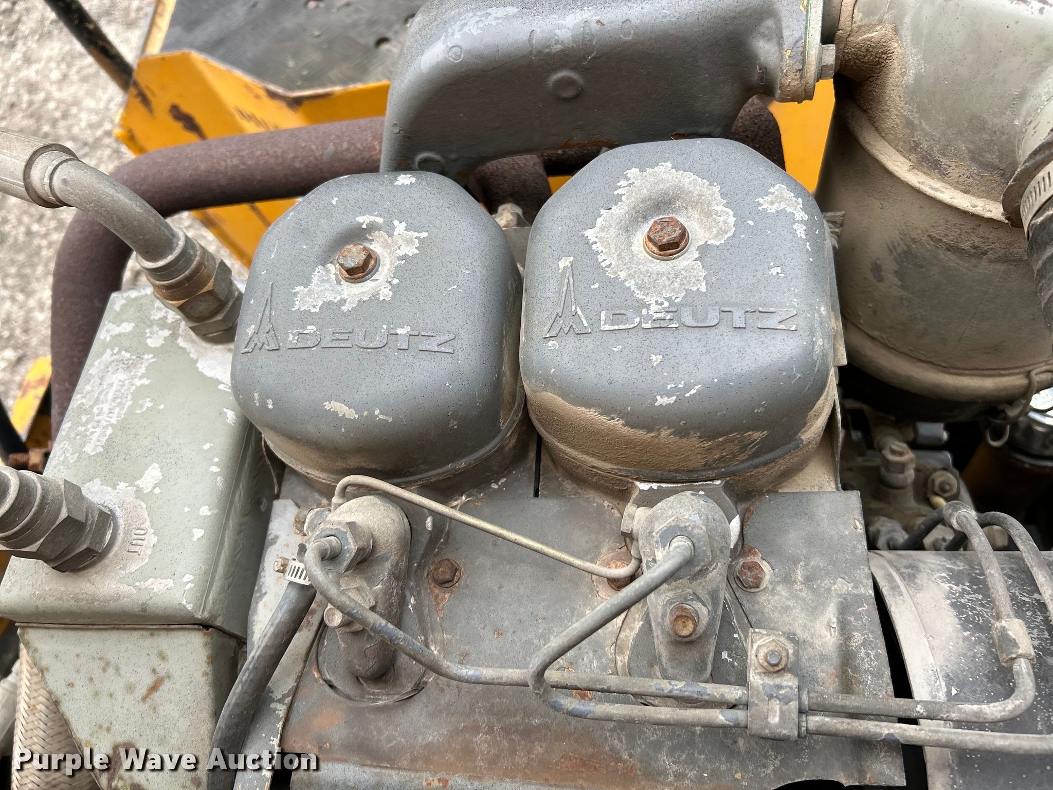 1986 Dynapac CC10 double drum vibratory roller. Hours: 5,847 on meter, Serial: 586570. Engine Deutz F2L511, Cylinders: 2, Fuel type: Diesel. Transmission Hydrostatic. Features Drum: Smooth, Vibratory system: Double, Front drum Width: 41", Diameter: 25", Rear drum Width: 41", Diameter: 25", Drum scrapers: Front, Rear. Notes Non-operational water spray applicator. Gershenson Construction Co., Inc.. Eureka, MO 63025
