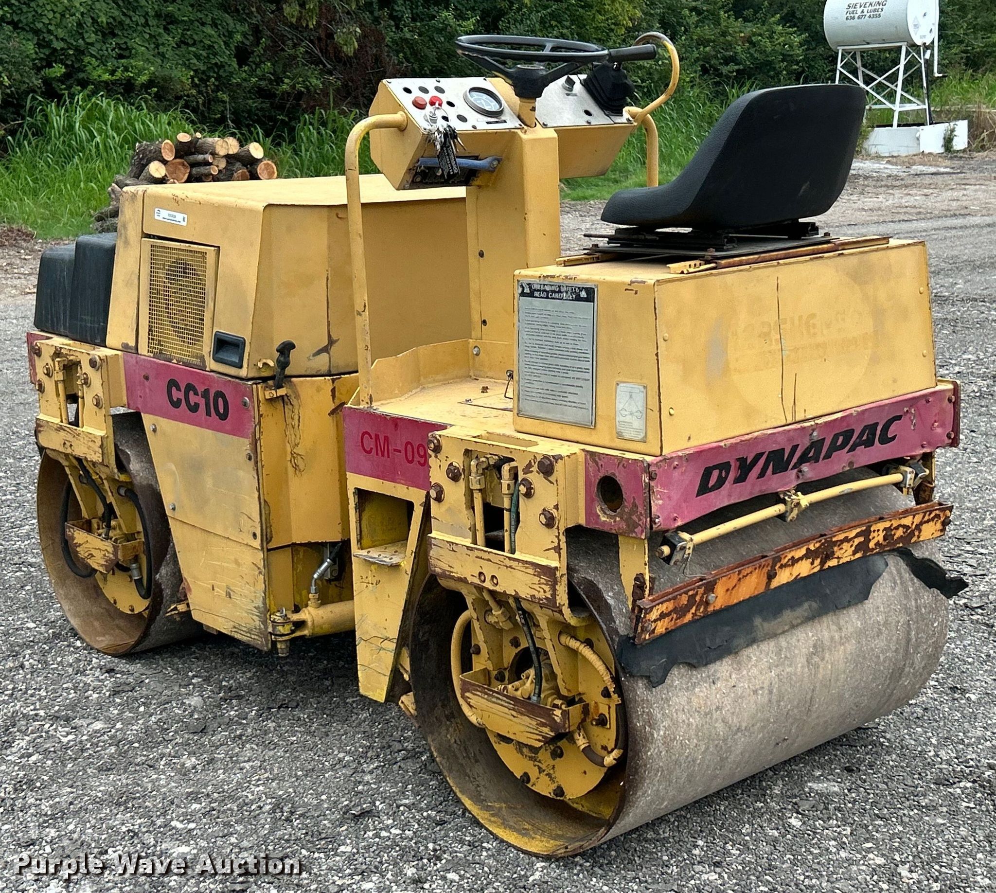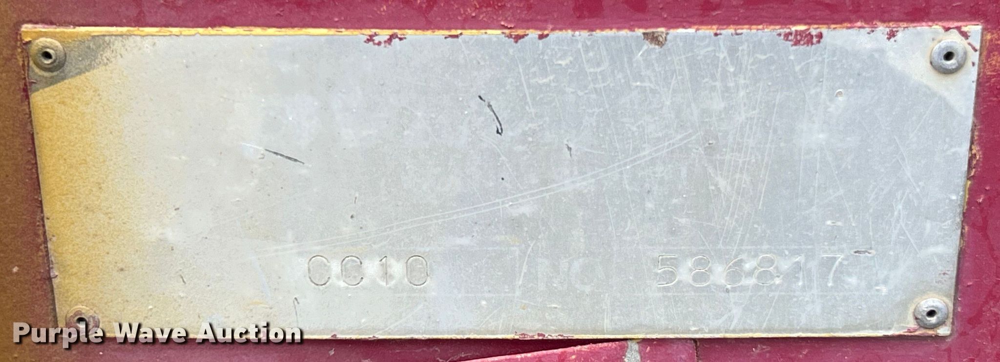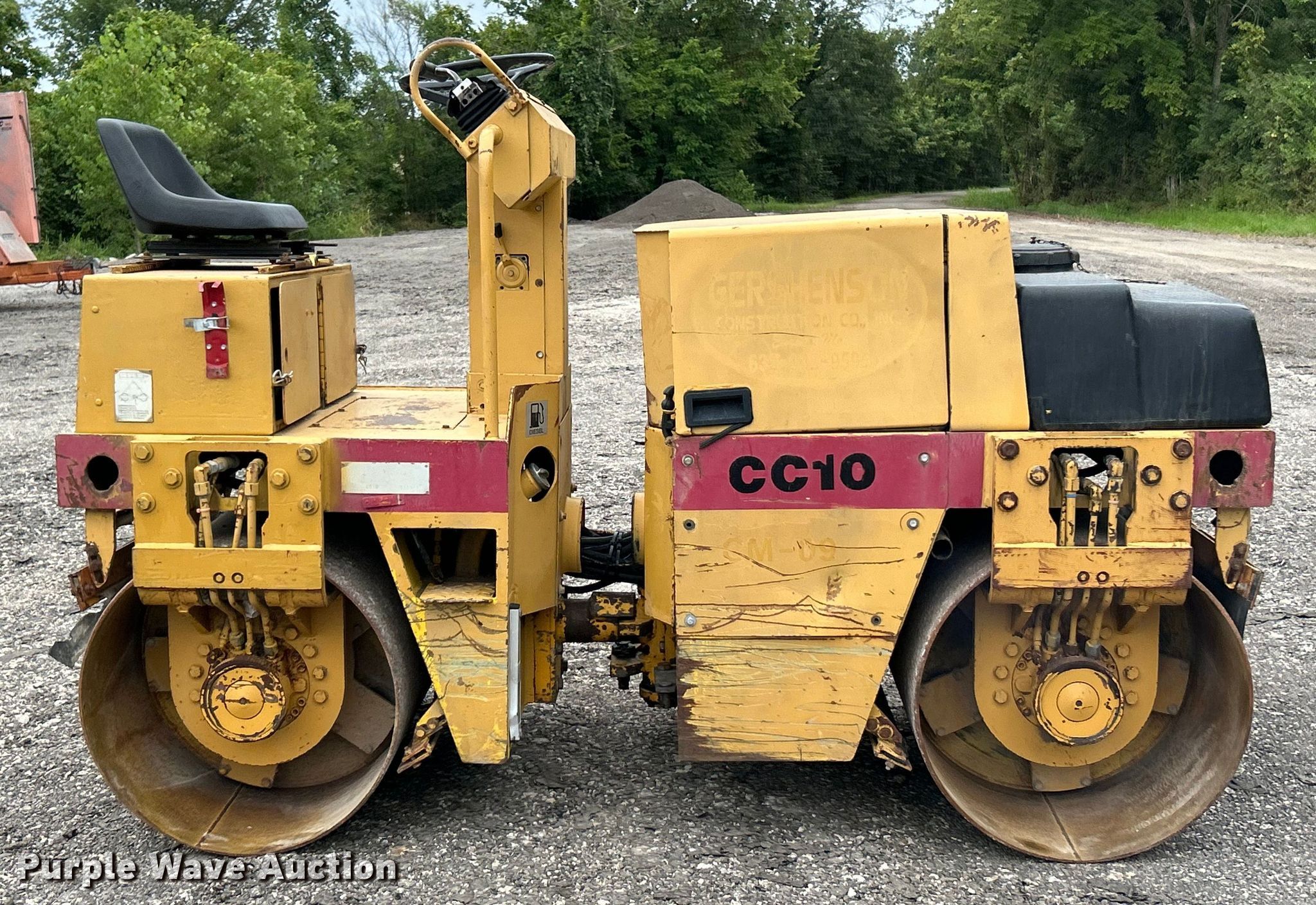 1986 Dynapac CC10 double drum vibratory roller. Hours: 1,182 on meter, Serial: 586817. Engine Deutz, Cylinders: 2, Fuel type: Diesel. Transmission Hydrostatic. Features Drum: Smooth, Vibratory system: Double, Front drum Width: 42", Diameter: 25", Rear drum Width: 42", Diameter: 25", Drum scrapers: Front, Rear. Notes Non-operational water spray applicator. Gershenson Construction Co., Inc.. Eureka, MO 63025
