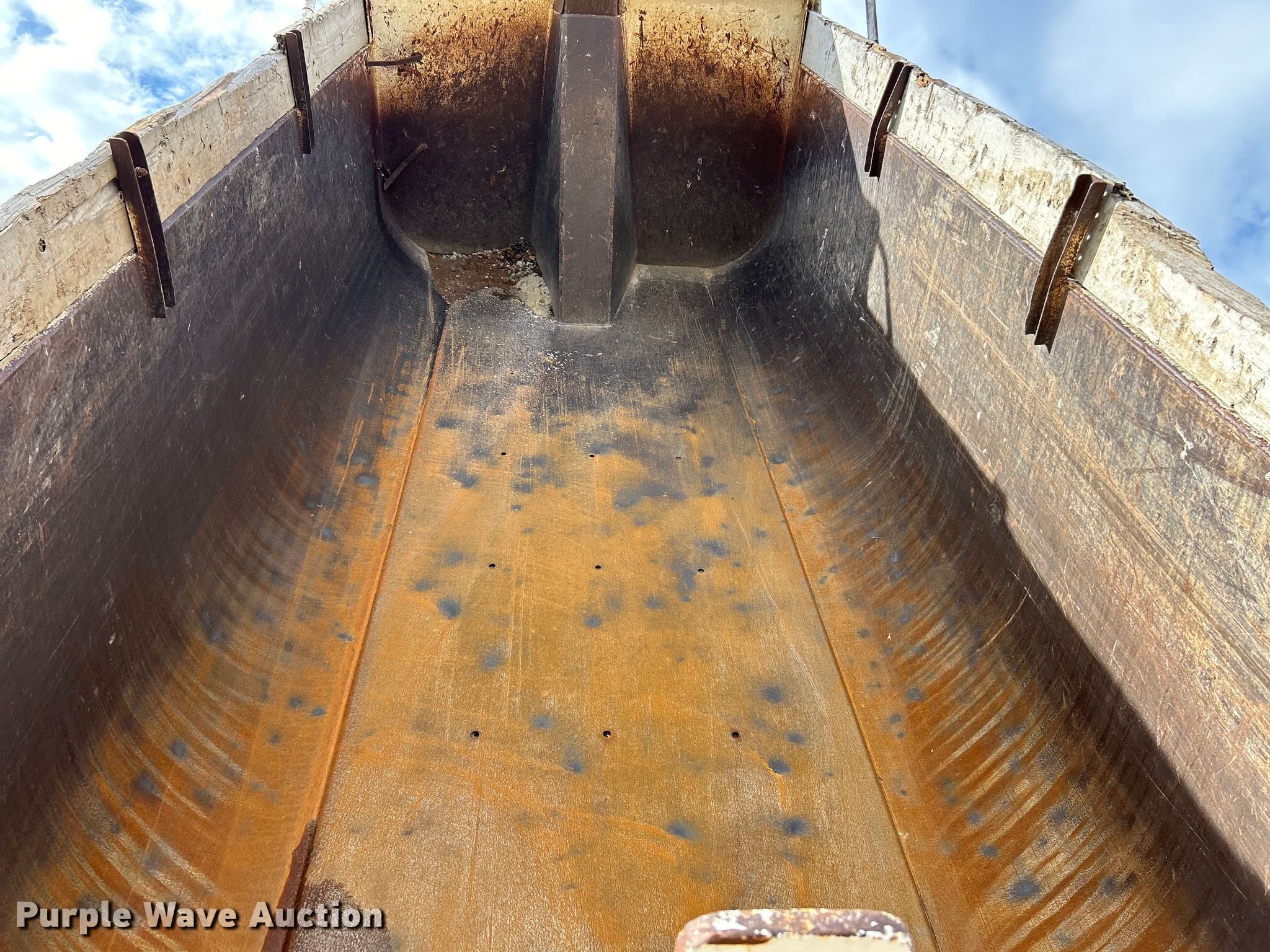 1999 International 2574 dump truck. Miles: 410,816 on odometer, Hours: 25,659 on meter, VIN: 1HTGGADT4XH217361. Engine International DT530, Displacement: 8.7L, Cylinders: 6, Fuel type: Diesel. Transmission Eaton Fuller, Manual, Speed: 10. Chassis Double frame, Axles: Tandem, Differential lock: Full, Suspension: Spring over walking beam, Brakes: Air, PTO. Interior AC, Heat, Cruise control. Features Dump bed 16' L x 94" W, Side height: 44", Side board height: 10", Bed type: Steel, Roll tarp, Ram: Single, End gate: Air operated. Tires Front: 315/80R22.5, Rear: 11R22.5. Missouri title. Title distribution may be delayed up to 14 days from verification of funds. Hardecke Farms LLC. Owensville, MO 65066