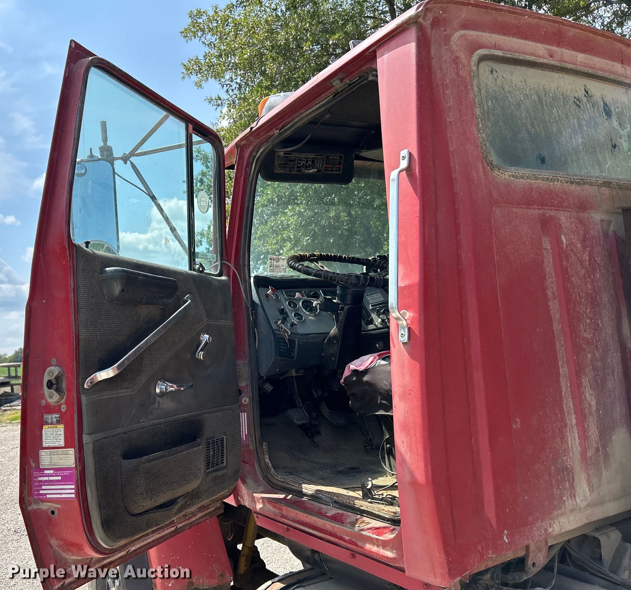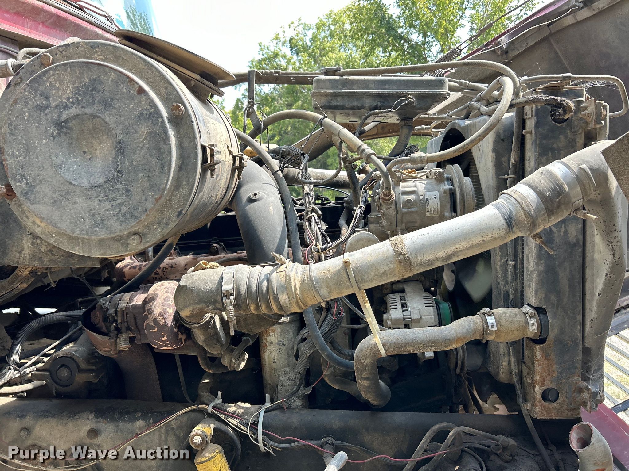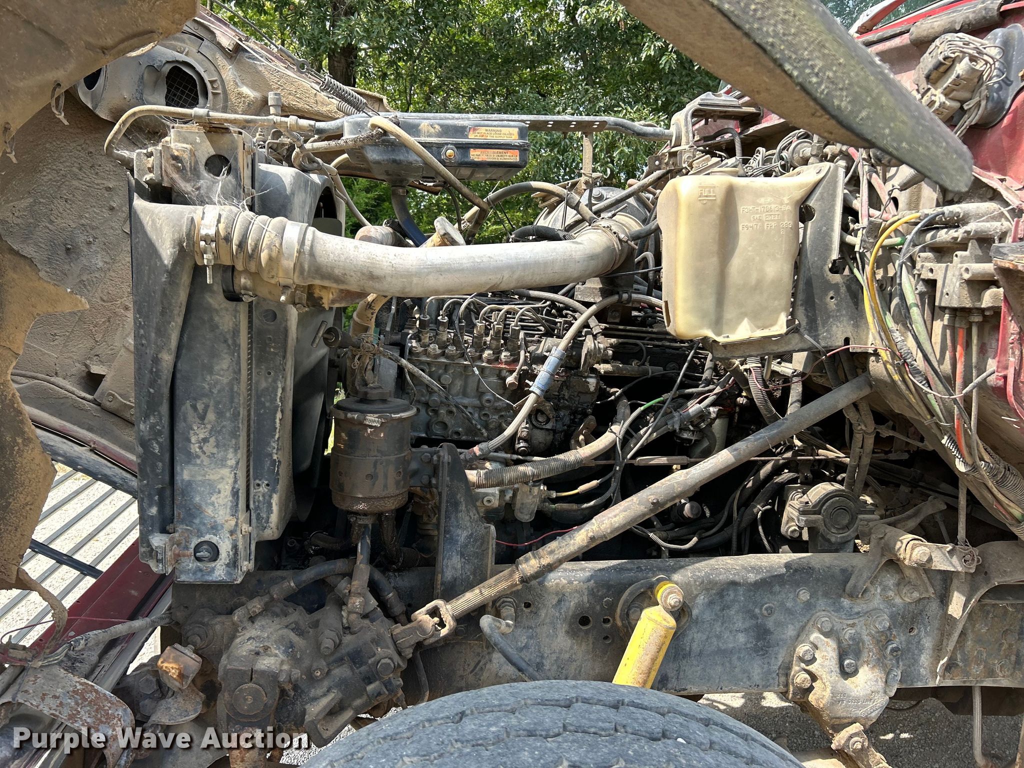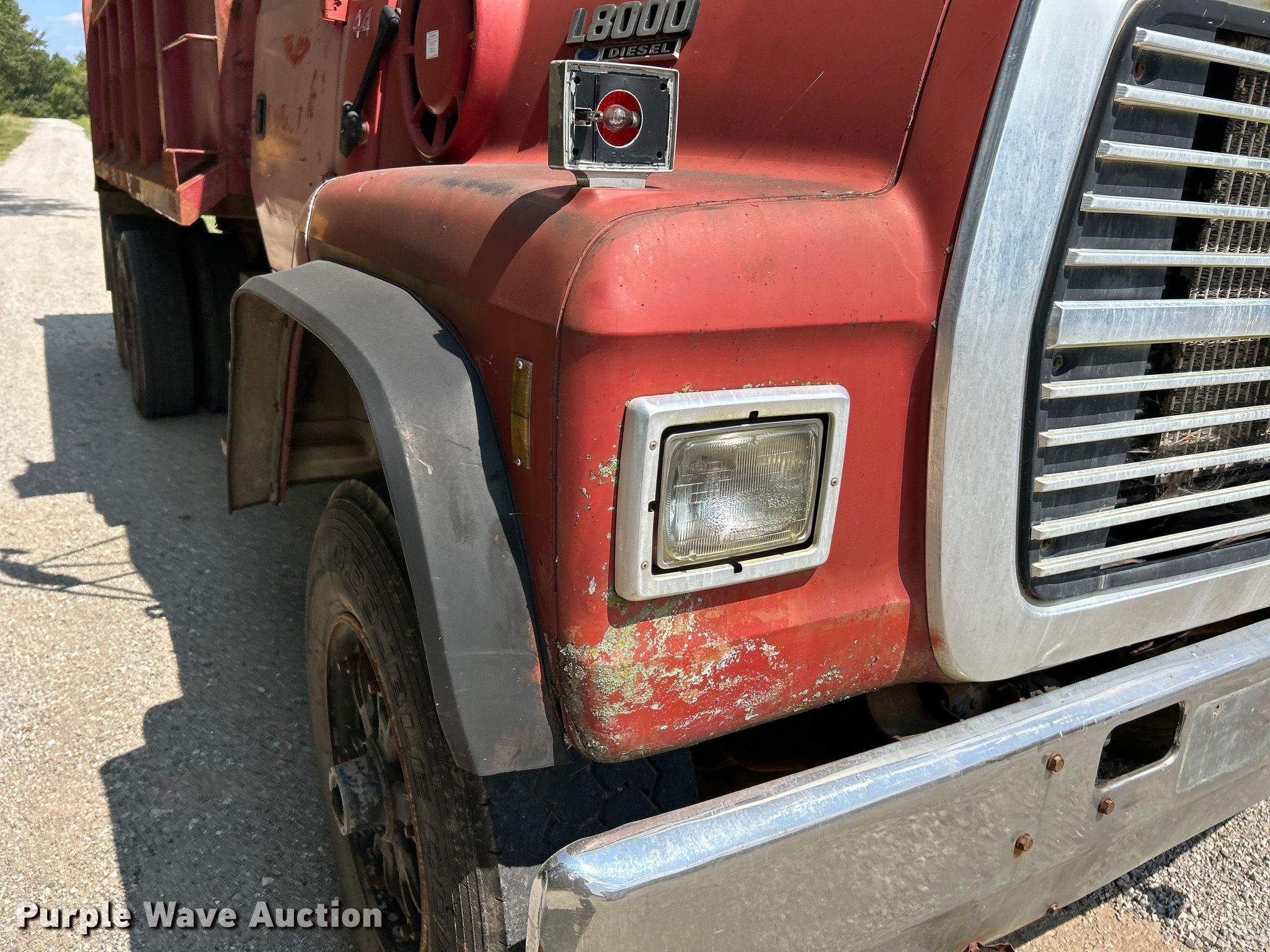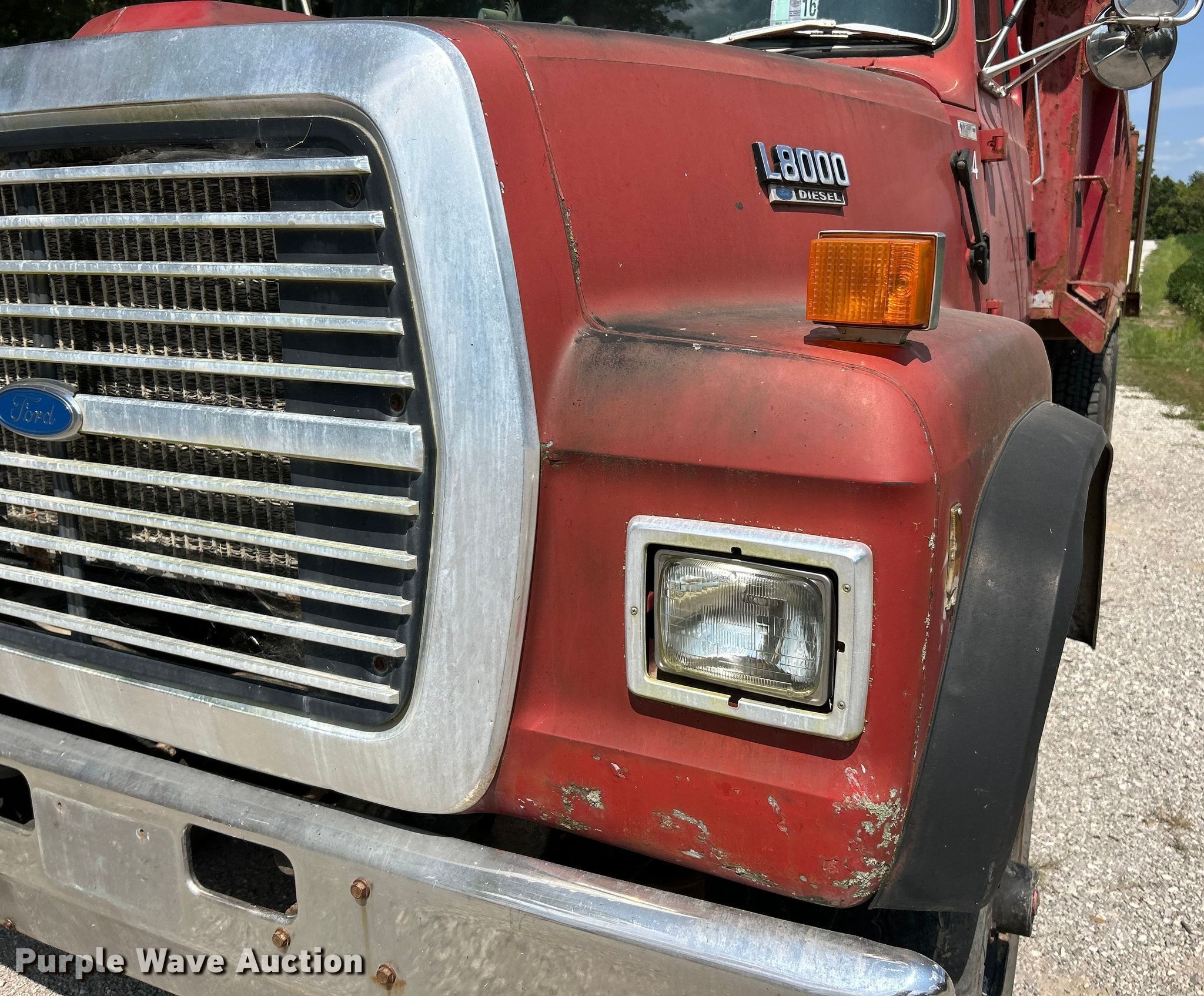 1994 Ford L8000 dump truck. Miles: 368,761 on odometer, VIN: 1FDZU82E0RVA52517. Engine Ford FD-1460, Displacement: 8.3L, Cylinders: 6, Fuel type: Diesel. Transmission Eaton Fuller Roadranger RT-7608LL, Manual, Speed: 10. Chassis Axles: Tandem, Differential lock: Full, Suspension: Spring over walking beam, Brakes: Air, PTO, GVWR: 58,000 lbs FAWR: 18,000 lbs, IAWR: 20,000 lbs, RAWR: 20,000 lbs, Wheelbase: 210". Interior AC, Heat. Features Dump bed 15' 6" L x 96" W, Side height: 41", Bed type: Steel, Roll tarp, Ram: Single, End gate: Air operated. Tires Front: 385/65R22.5, Rear: 11R22.5. Notes Non-operational roll tarp, Non-operational clutch brake, AC belt missing, Windshield chipped or cracked. Repossessed vehicle. Item condition and history are unknown. No additional information is available. Buyer may be asked to sign bill of sale for seller's records at pickup. Titles will be distributed after confirmation of payment and removal. Illinois title. Title distribution may be delayed up to 30 days from verification of funds. State Bank. Waterloo, IL 62298