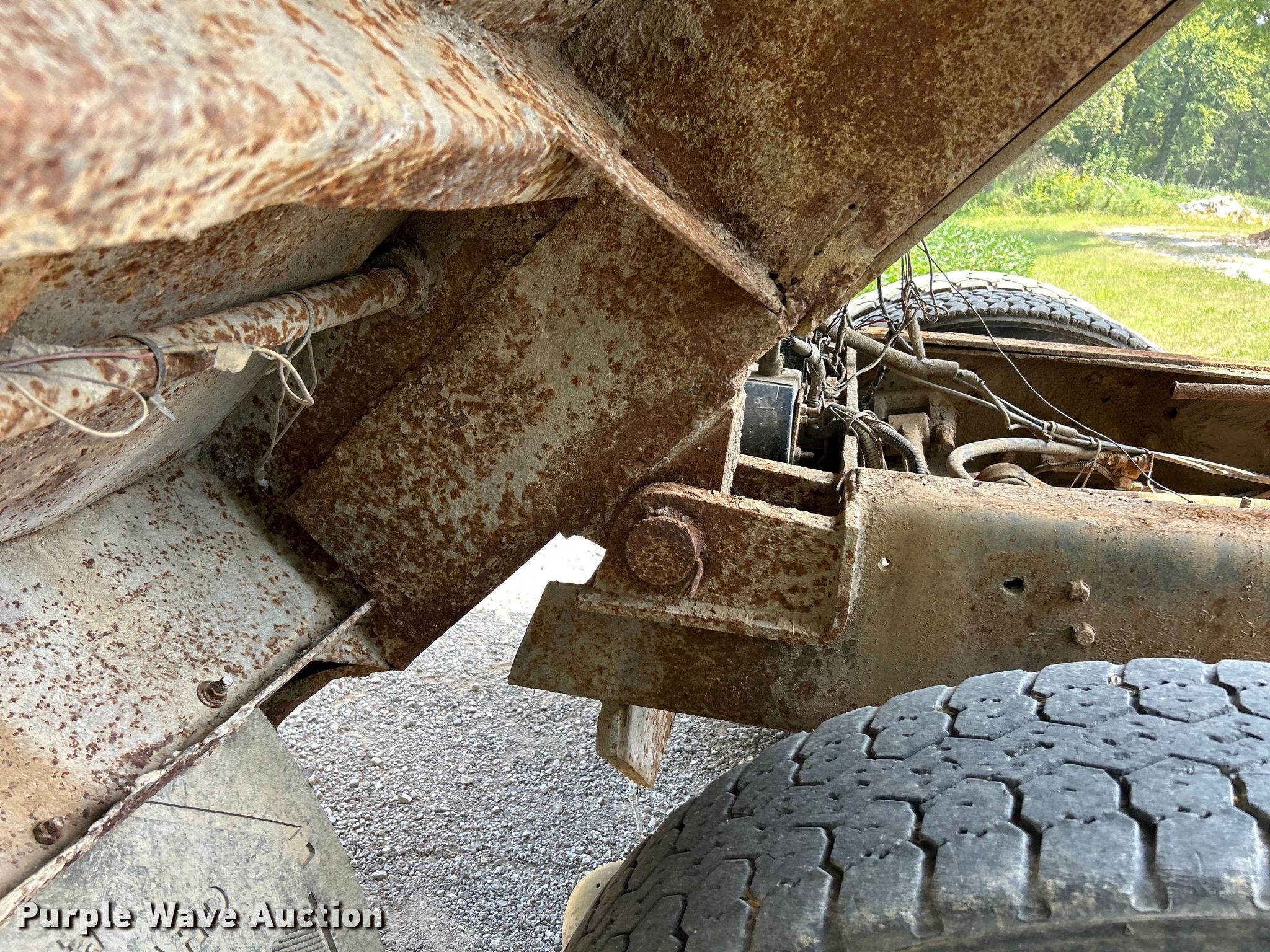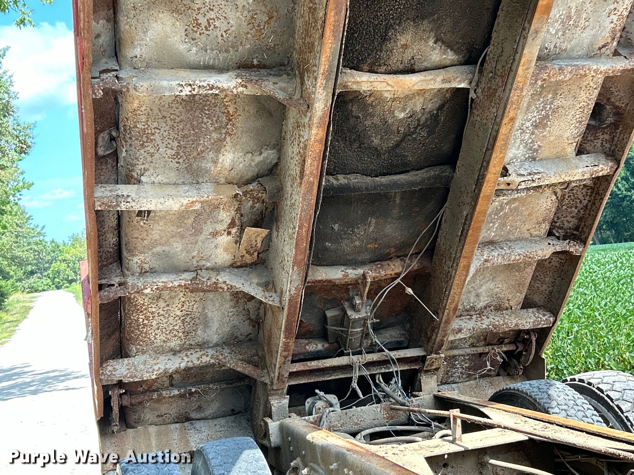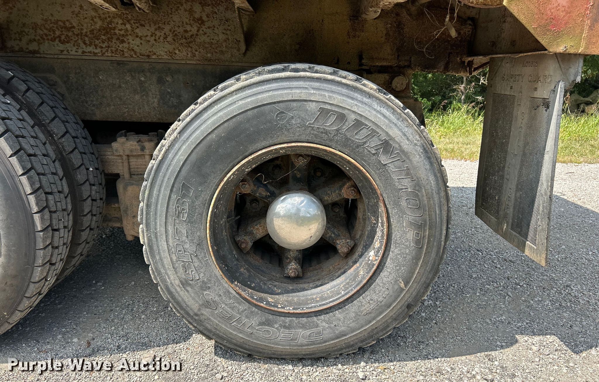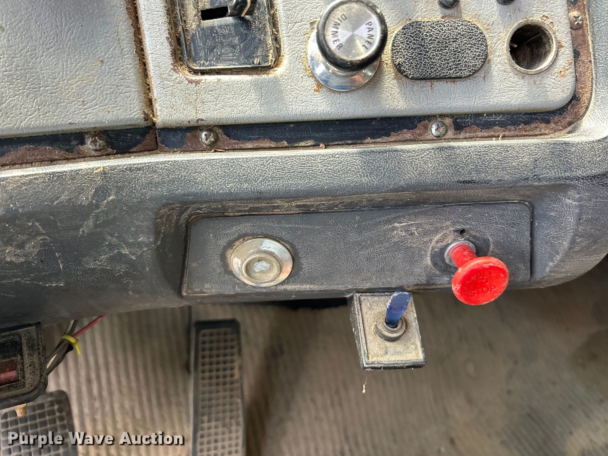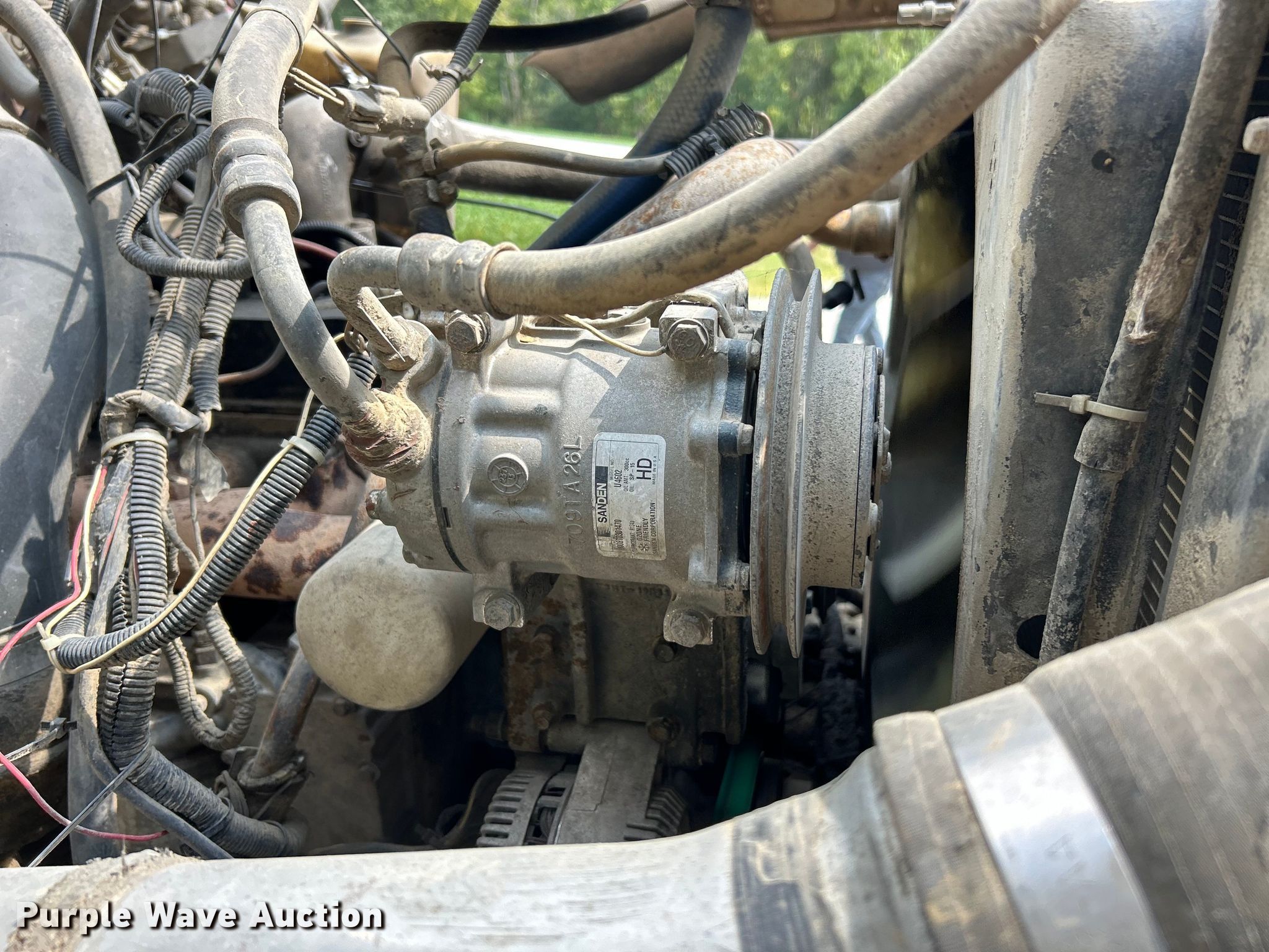 1994 Ford L8000 dump truck. Miles: 368,761 on odometer, VIN: 1FDZU82E0RVA52517. Engine Ford FD-1460, Displacement: 8.3L, Cylinders: 6, Fuel type: Diesel. Transmission Eaton Fuller Roadranger RT-7608LL, Manual, Speed: 10. Chassis Axles: Tandem, Differential lock: Full, Suspension: Spring over walking beam, Brakes: Air, PTO, GVWR: 58,000 lbs FAWR: 18,000 lbs, IAWR: 20,000 lbs, RAWR: 20,000 lbs, Wheelbase: 210". Interior AC, Heat. Features Dump bed 15' 6" L x 96" W, Side height: 41", Bed type: Steel, Roll tarp, Ram: Single, End gate: Air operated. Tires Front: 385/65R22.5, Rear: 11R22.5. Notes Non-operational roll tarp, Non-operational clutch brake, AC belt missing, Windshield chipped or cracked. Repossessed vehicle. Item condition and history are unknown. No additional information is available. Buyer may be asked to sign bill of sale for seller's records at pickup. Titles will be distributed after confirmation of payment and removal. Illinois title. Title distribution may be delayed up to 30 days from verification of funds. State Bank. Waterloo, IL 62298