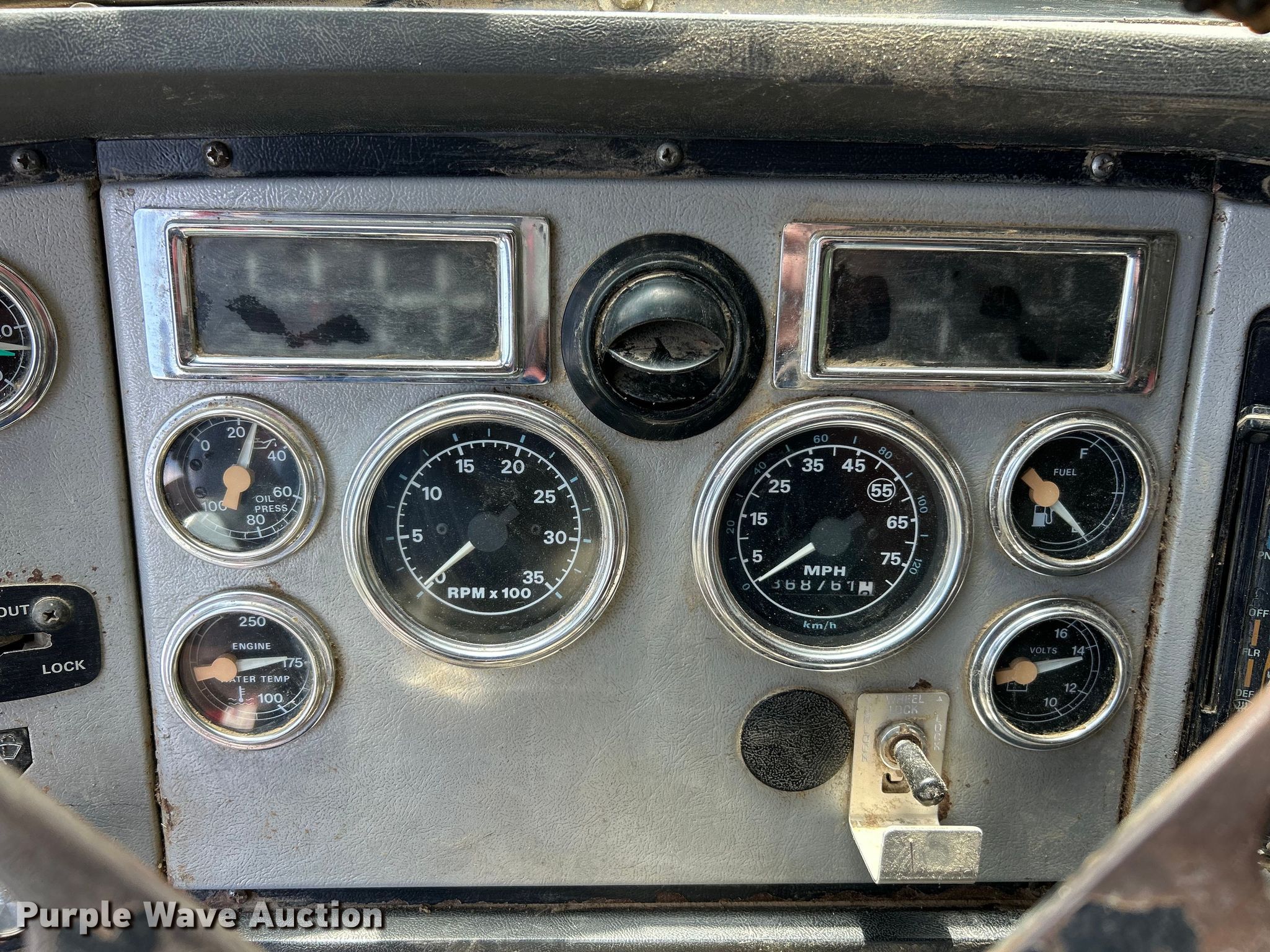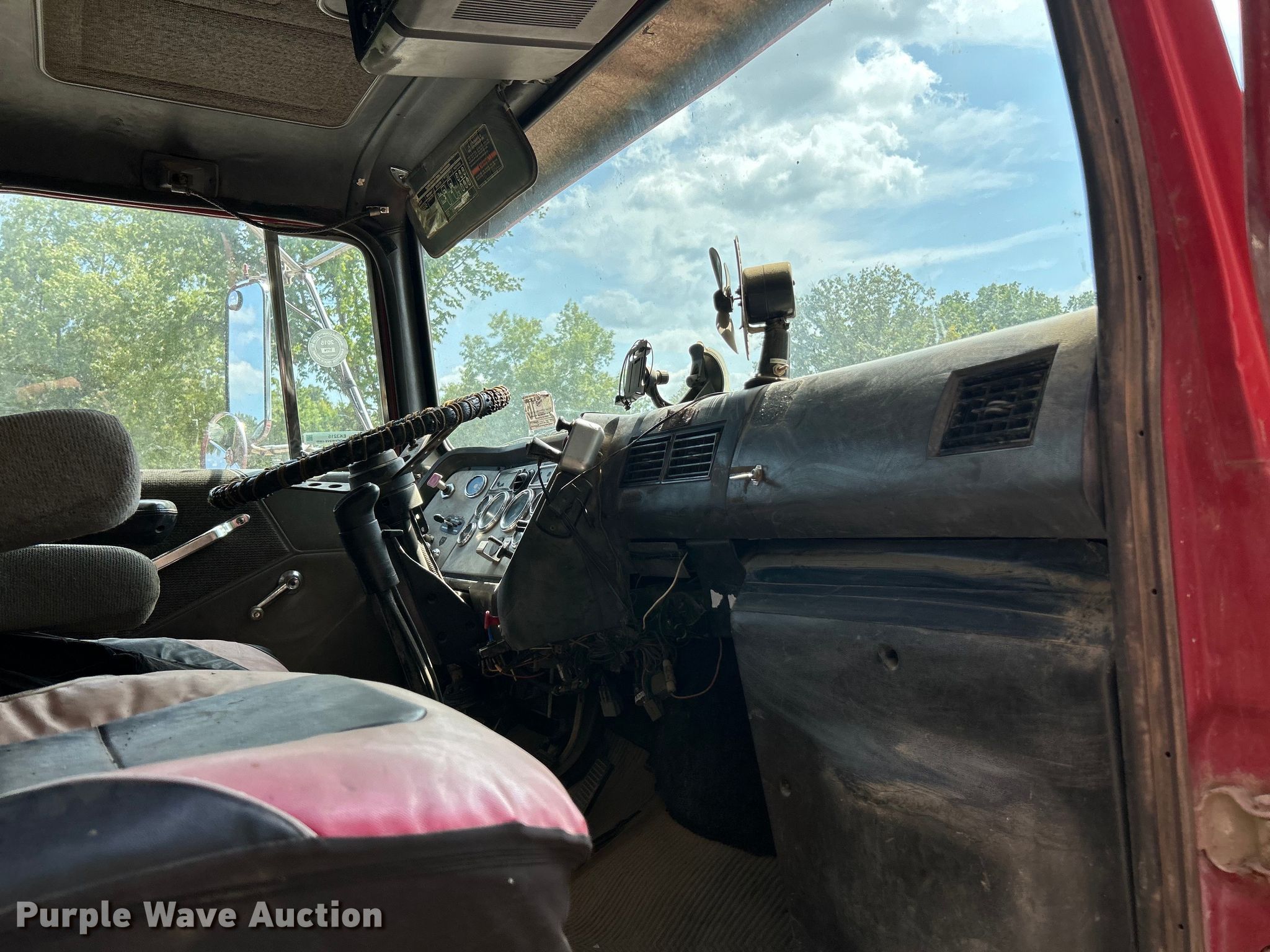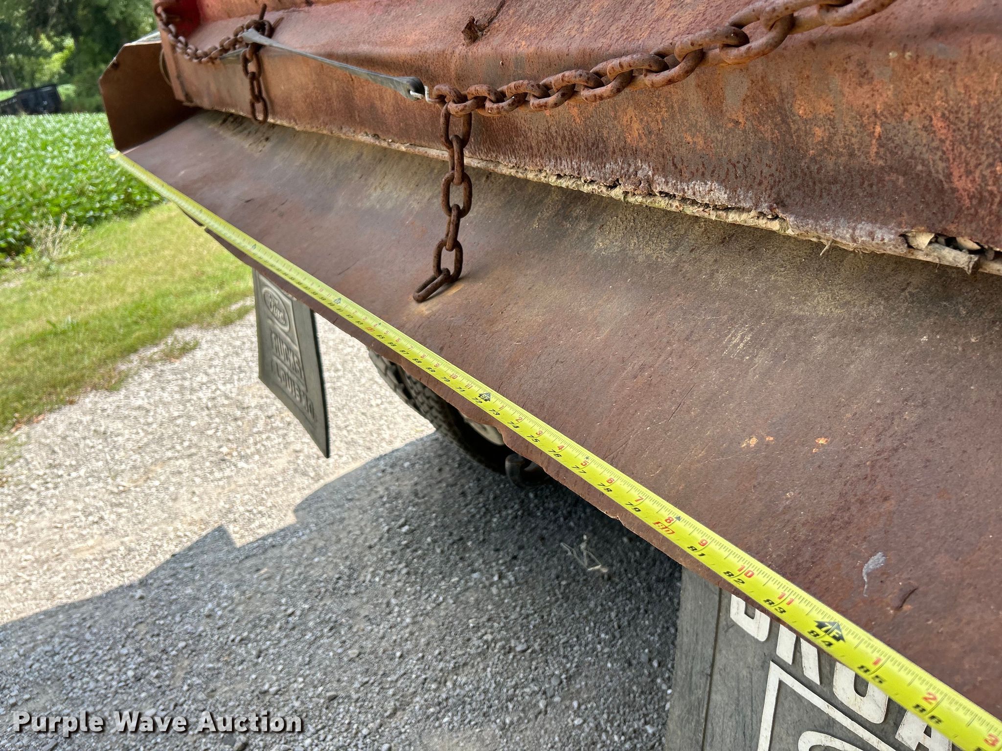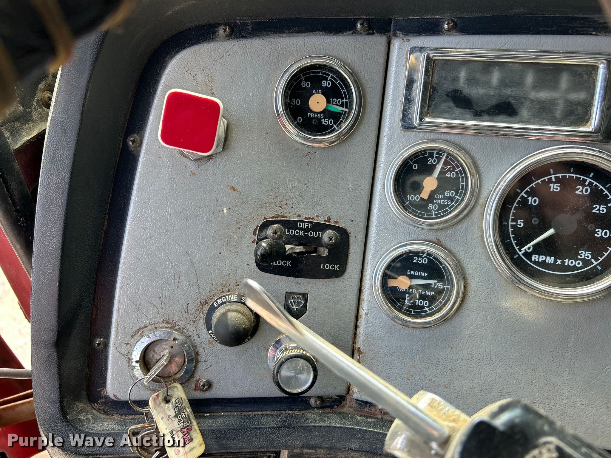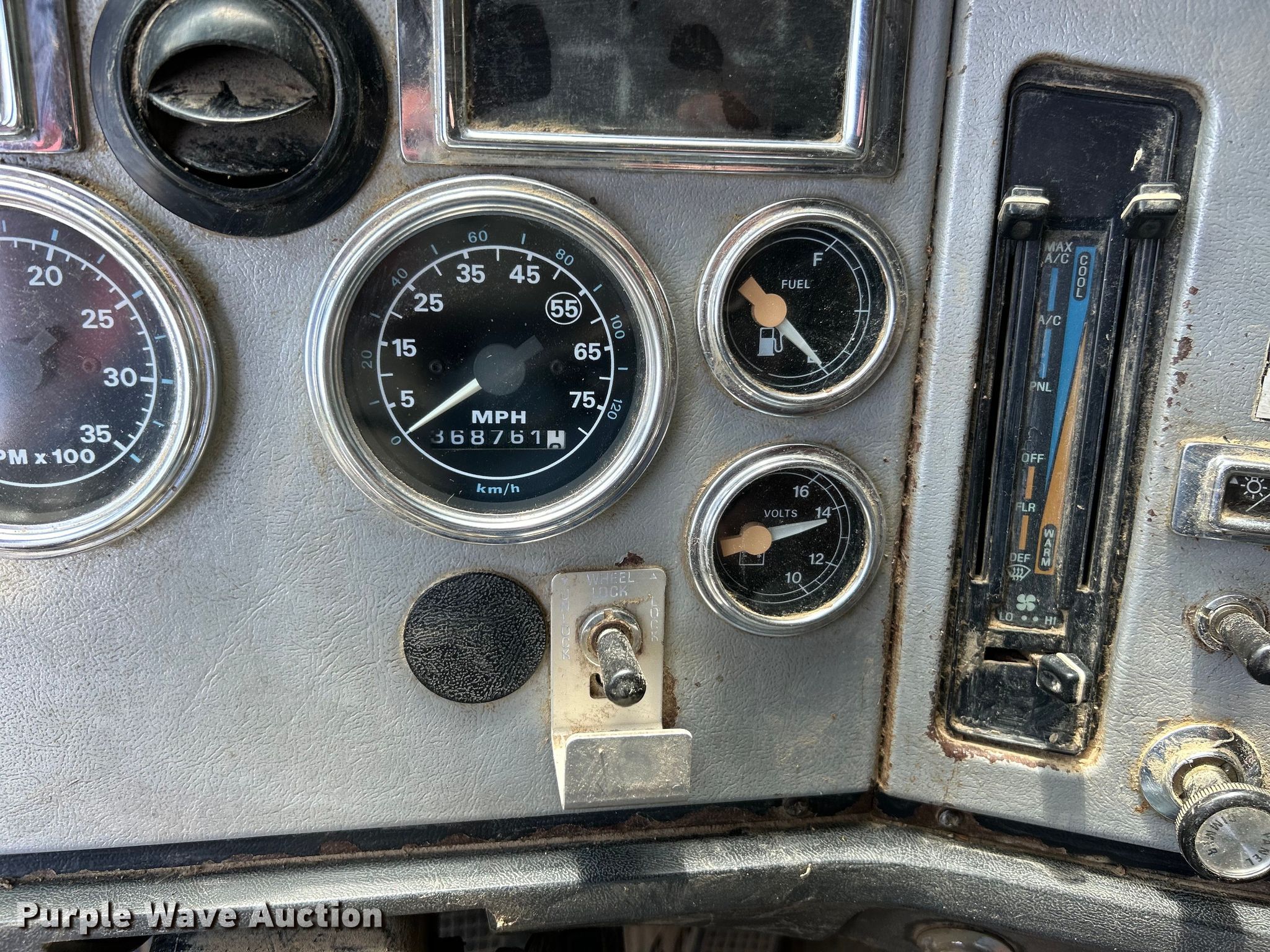 1994 Ford L8000 dump truck. Miles: 368,761 on odometer, VIN: 1FDZU82E0RVA52517. Engine Ford FD-1460, Displacement: 8.3L, Cylinders: 6, Fuel type: Diesel. Transmission Eaton Fuller Roadranger RT-7608LL, Manual, Speed: 10. Chassis Axles: Tandem, Differential lock: Full, Suspension: Spring over walking beam, Brakes: Air, PTO, GVWR: 58,000 lbs FAWR: 18,000 lbs, IAWR: 20,000 lbs, RAWR: 20,000 lbs, Wheelbase: 210". Interior AC, Heat. Features Dump bed 15' 6" L x 96" W, Side height: 41", Bed type: Steel, Roll tarp, Ram: Single, End gate: Air operated. Tires Front: 385/65R22.5, Rear: 11R22.5. Notes Non-operational roll tarp, Non-operational clutch brake, AC belt missing, Windshield chipped or cracked. Repossessed vehicle. Item condition and history are unknown. No additional information is available. Buyer may be asked to sign bill of sale for seller's records at pickup. Titles will be distributed after confirmation of payment and removal. Illinois title. Title distribution may be delayed up to 30 days from verification of funds. State Bank. Waterloo, IL 62298