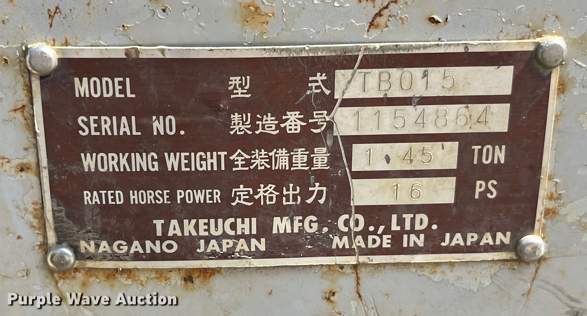 Purple Wave is selling a used Mini Excavator in Iowa. This item is a 1995 Takeuchi TB015 mini excavator with the following: Hours: Unknown, Serial: 1154864