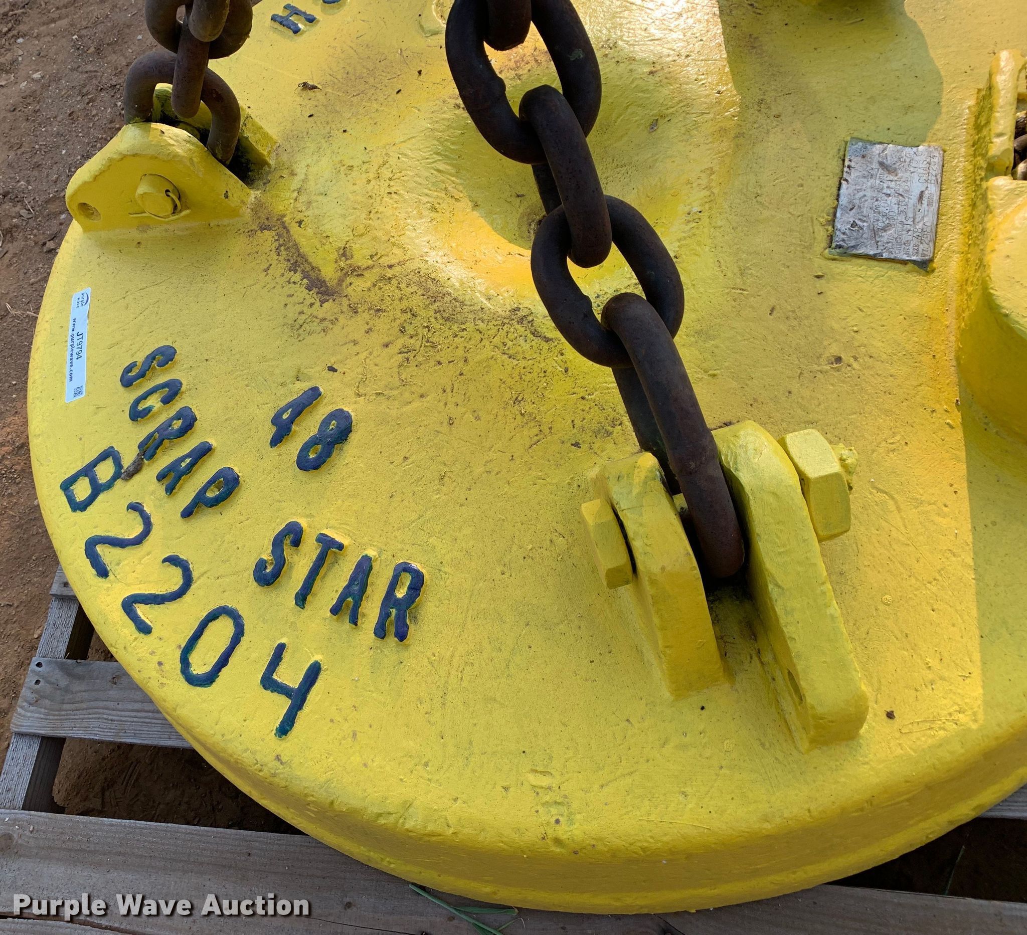Purple Wave is selling a used Crane Attach. in Texas. This item is a Magnetech 48 Scrap Star magnet with the following: Serial: B2204, Diameter: 48"