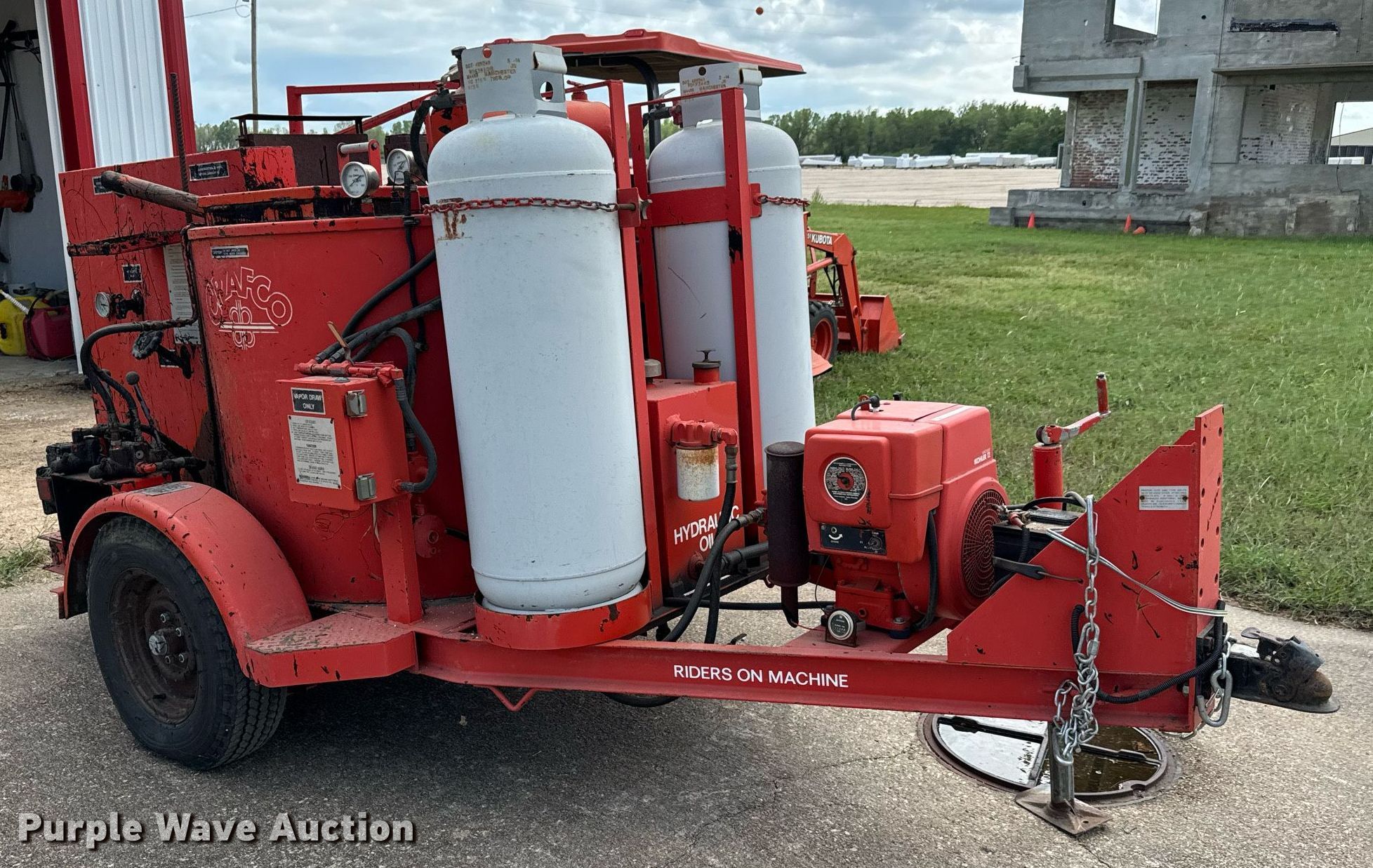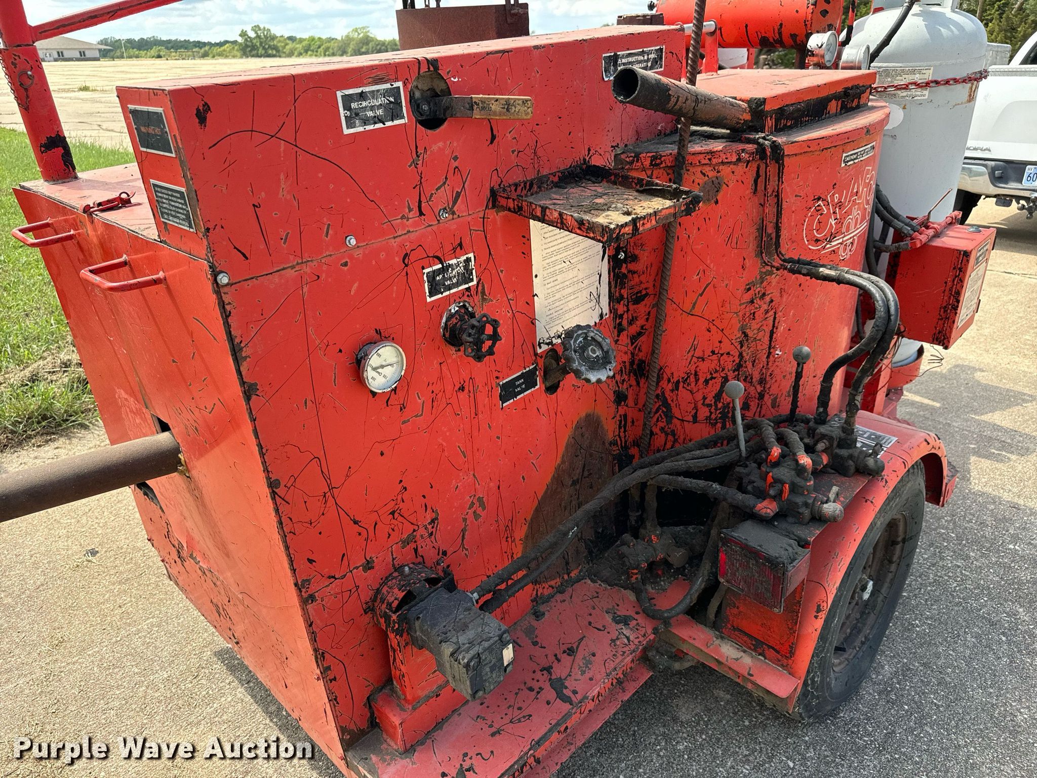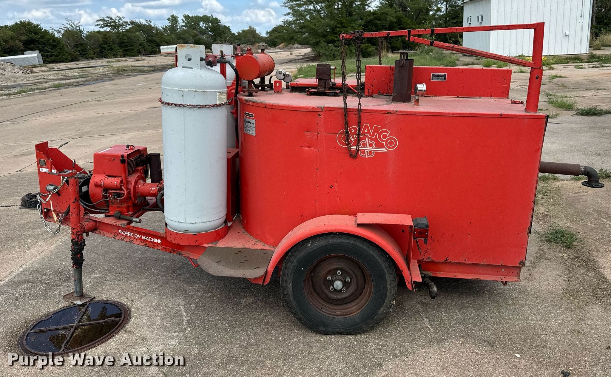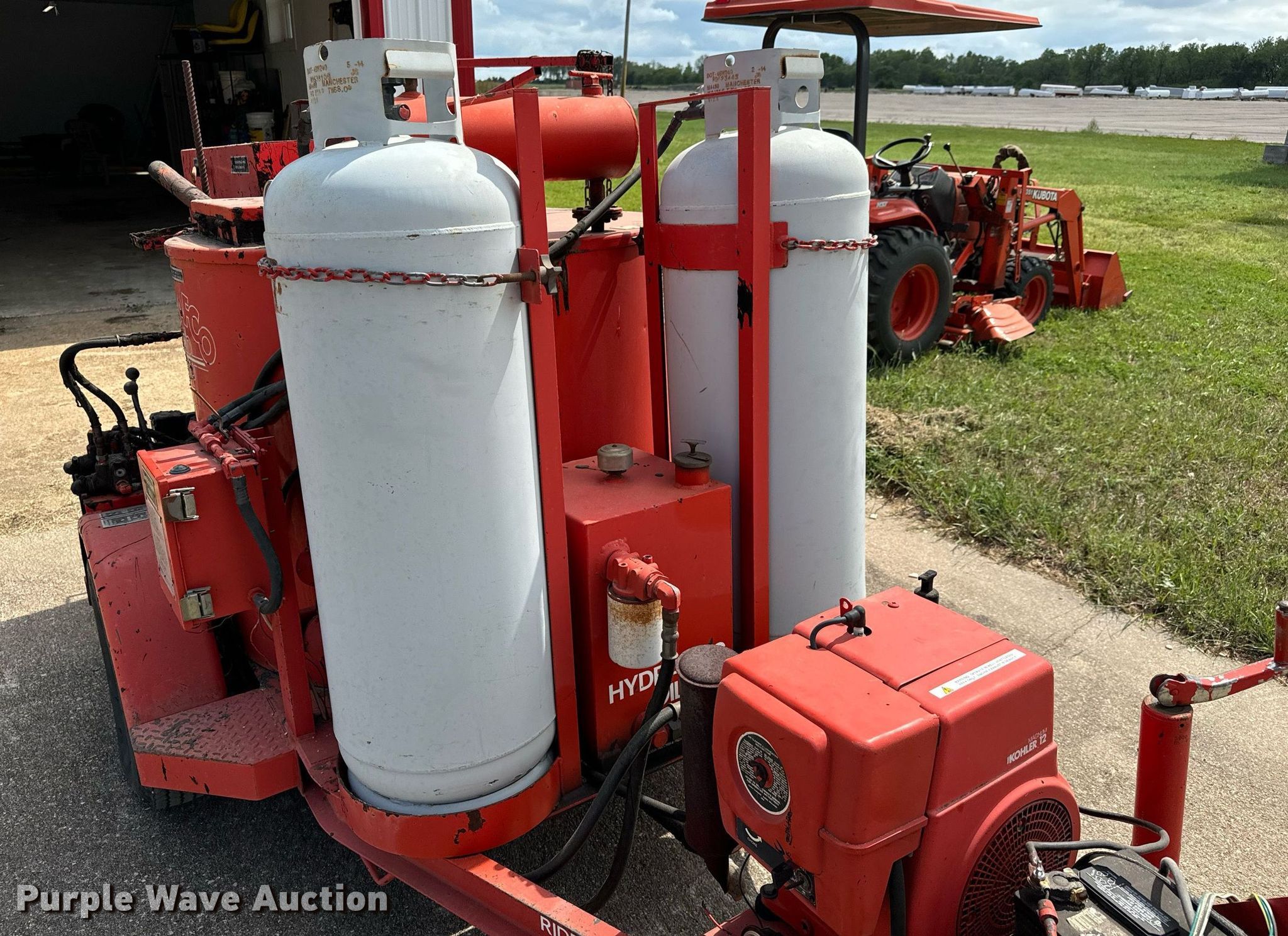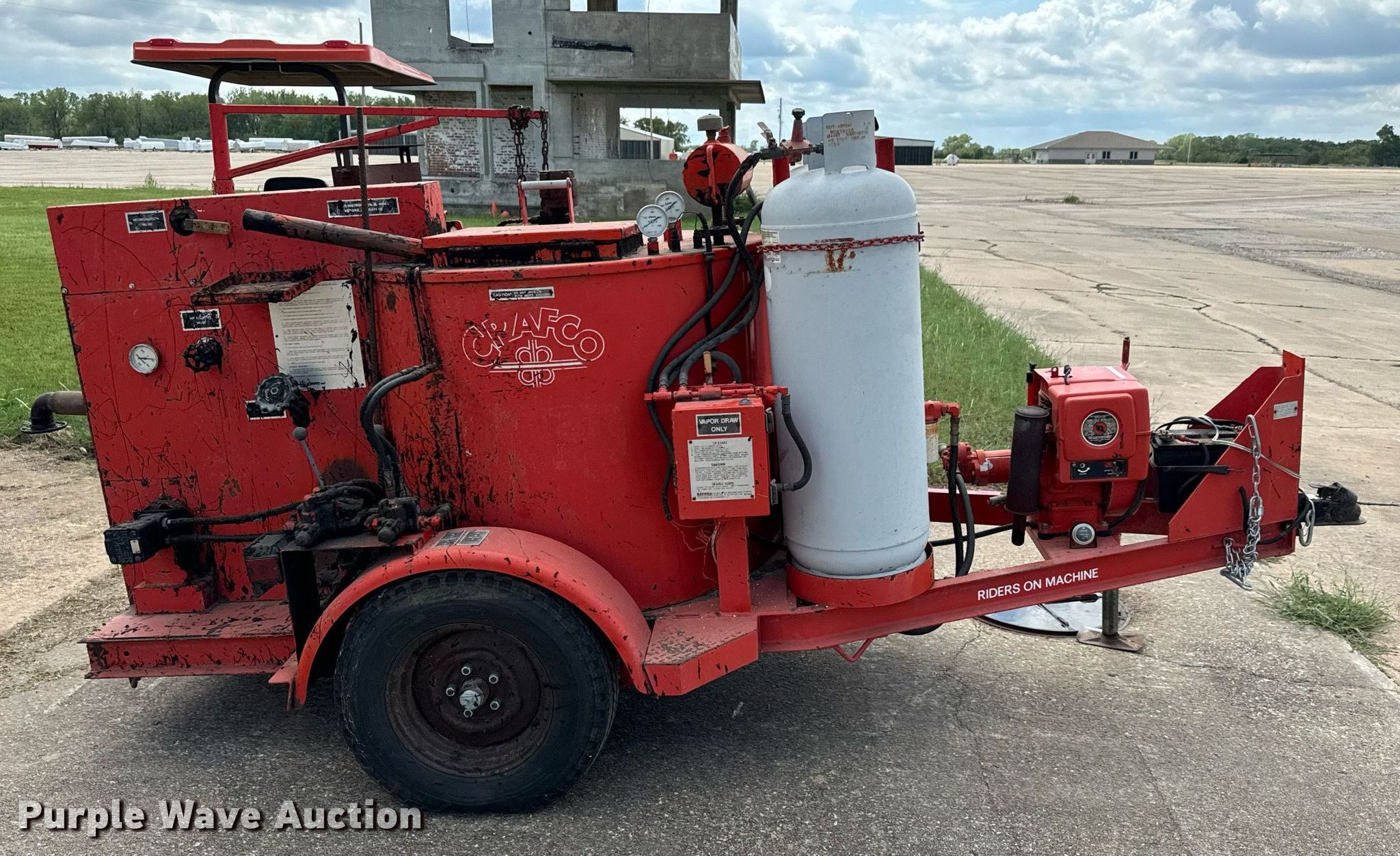 Crafco Ez-Pour pothole patcher. Hours: 3,137 on meter, Serial: 8940491EP. Engine Koehler Magnum 12, Cylinders: 1, Fuel type: LPG. Features Tank capacity: 100 gallons, Burner: LPG LPG tanks included. Chassis Landing gear: Single, Suspension: Spring. Tires Size: 7.00-14LT. Notes Unknown operating condition of Lights. This is worksite support equipment and will not come with a title. Transfer of ownership documentation will be a bill of sale. Sunflower Soaring Foundation. Hutchinson, KS 67501