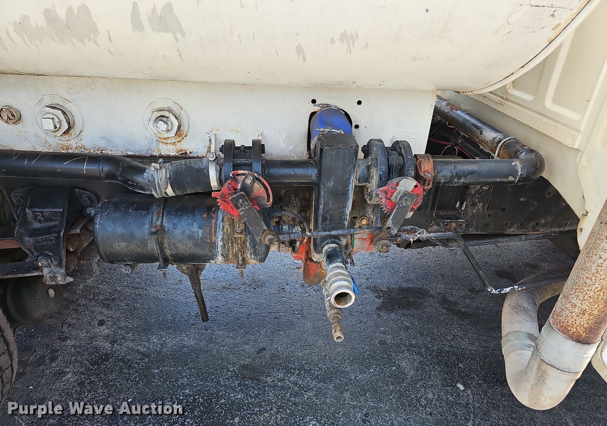 1992 Ford F700 tank truck. Miles: 268,742 on odometer, VIN: 1FDXK74C5NVA33555. Engine Cummins, Displacement: 5.9 L, Cylinders: 6, Fuel type: Diesel. Transmission Allison, Automatic. Chassis Axles: Single, Suspension: Spring, Brakes: Air, PTO. Interior AC, Heat, Brake controller. Features Bed / tank Capacity: 2,000 gallons, 10' 6" L x 90" W, Spray bar: Rear, Side discharge, Top fill, Rear drain: 3", Rear outlet: 3". Tires Size: 11R22.5. Missouri title. Advanced Paving Inc.. Kimberling City, MO 65686