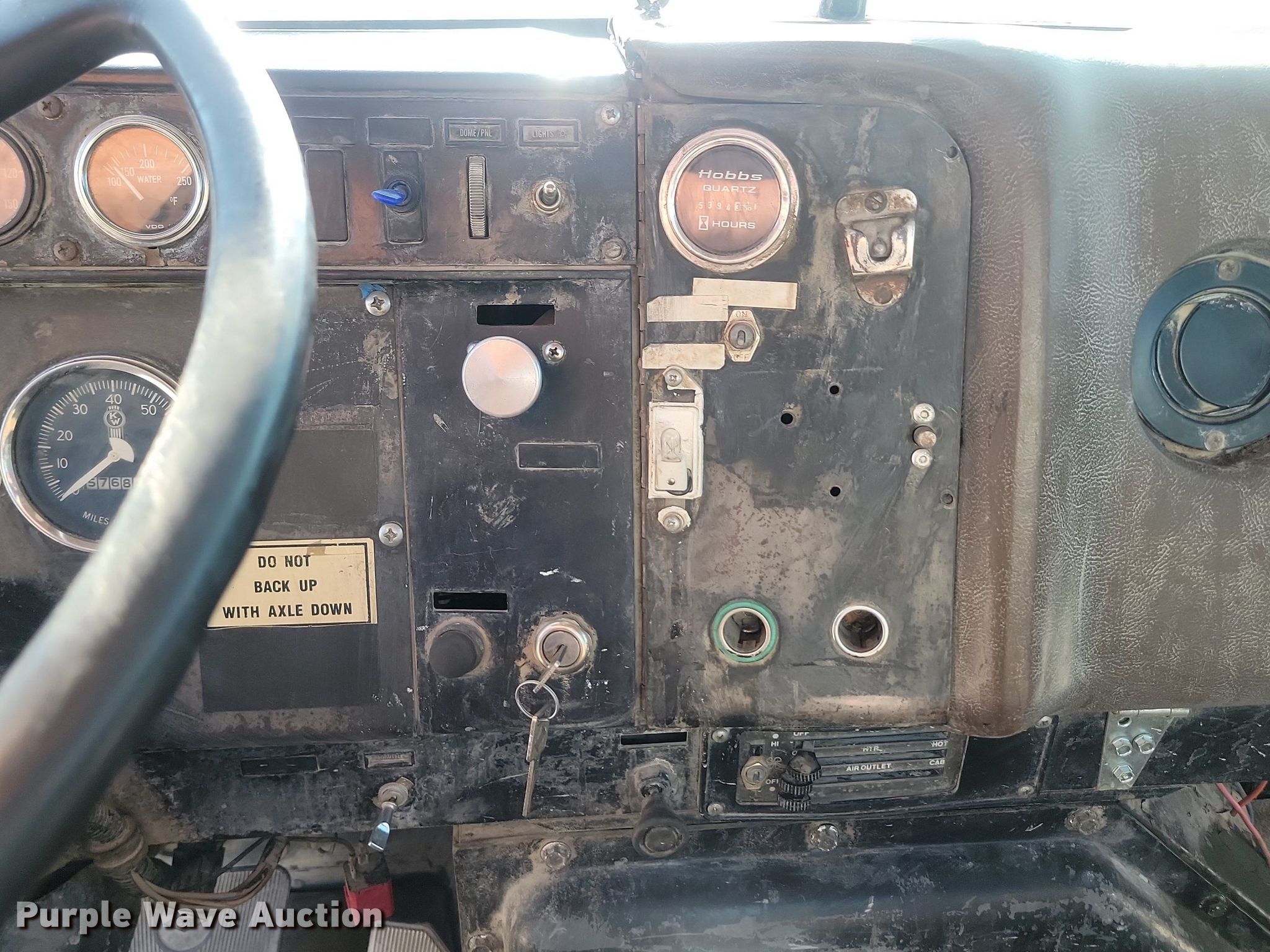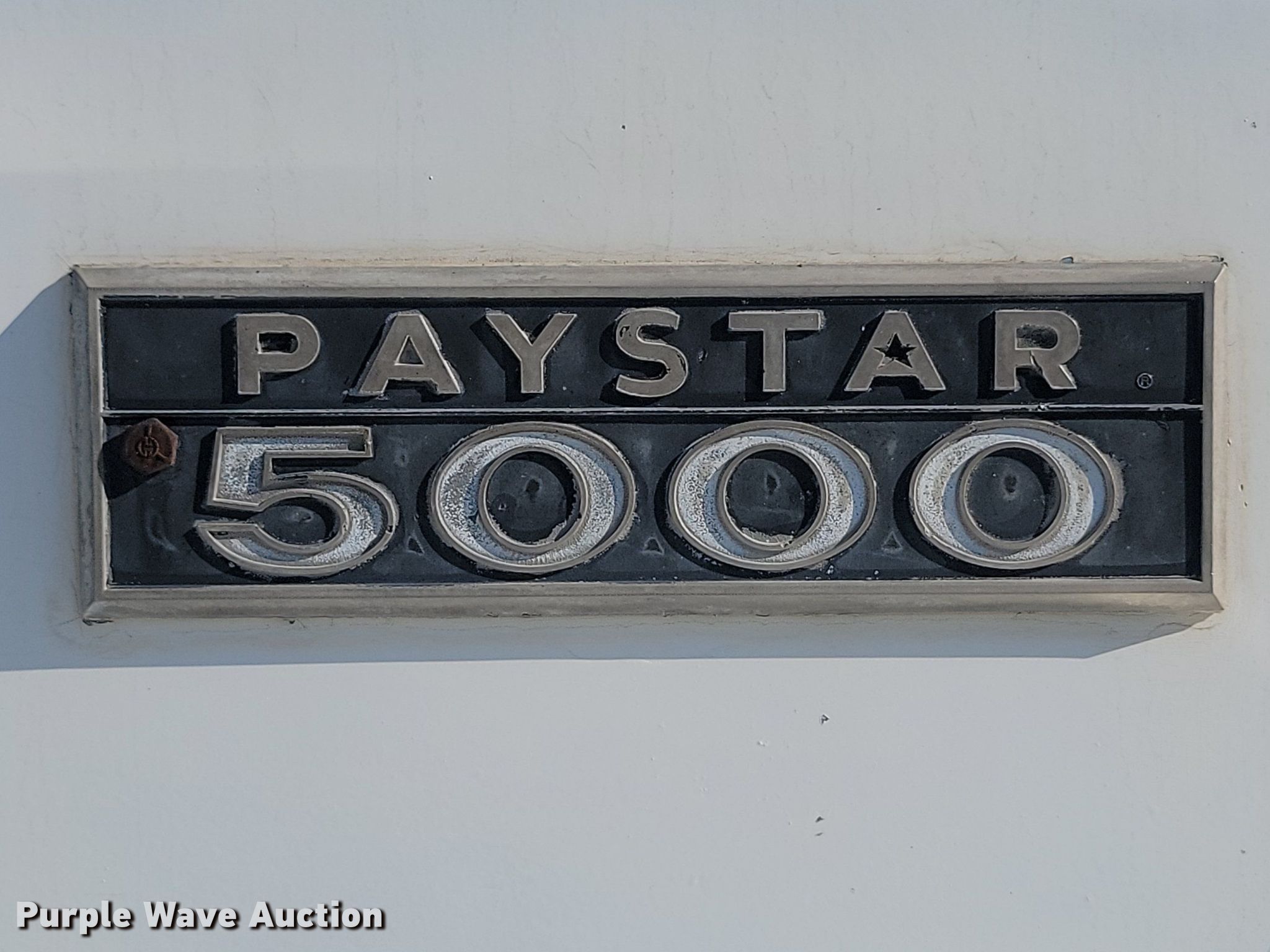 1989 International Paystar 5000 ready mix truck. Miles: 576,811 on odometer, Hours: 5,394 on meter. Engine Cummins, Cylinders: 6, Fuel type: Diesel. Transmission Eaton Fuller, Manual. Chassis Axles: 4, Pusher axle Steerable, Differential lock: Inter-axle, Suspension: Spring over walking beam, Brakes: Air, Front mount PTO. Interior Heat. Features Mixer TMMB, Capacity: 11 cu.yd., Discharge: Rear, In-cab controls, Rear drum controls, Water tank capacity: 150 gallons, Chute Extensions: 3, Chute type: Steel.. Tires Front: 425/65R22.5, Rear: 11R22.5, Lift axle: 255/70R22.5. Notes Heater issues, always on, Unknown operating condition of switches for mixer functions. Iowa title. Title distribution may be delayed up to 30 days from verification of funds. Croell Redi-Mix. Riverton, WY 82501