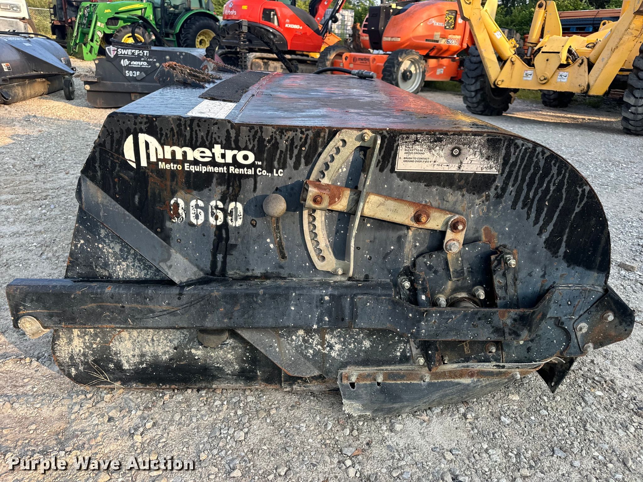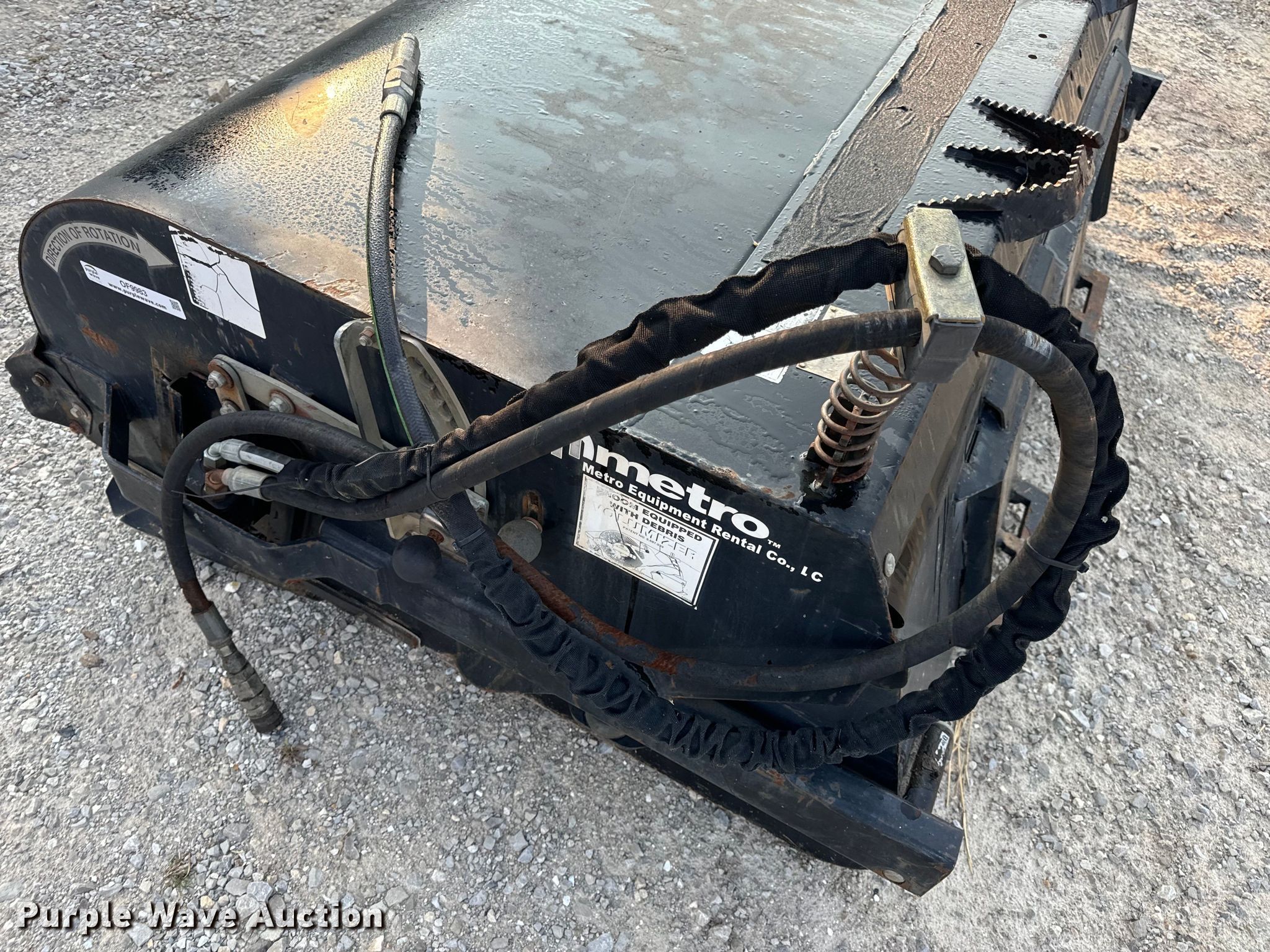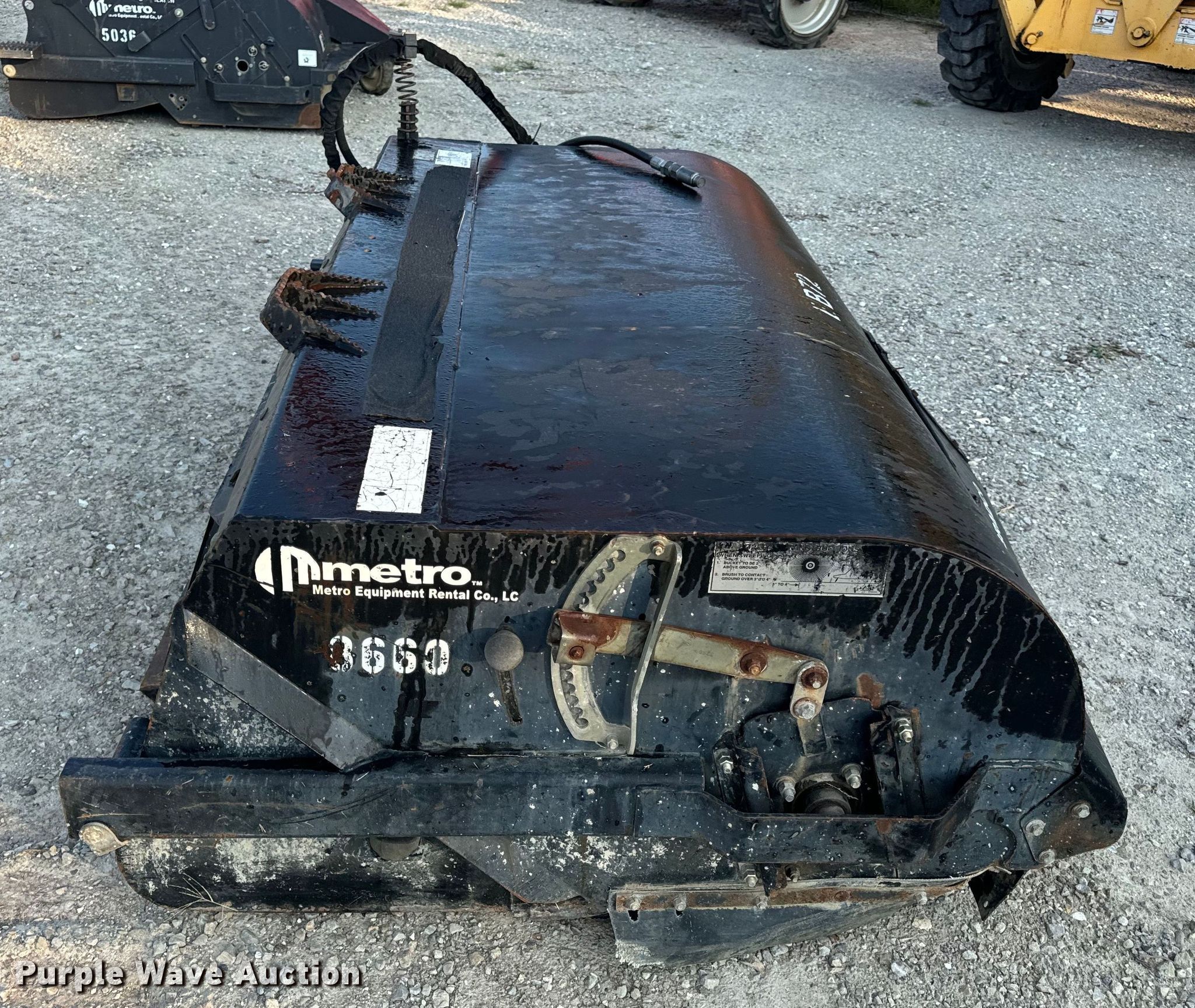 Bradco BB72 skid steer sweeper. Serial: 148660, Width: 72". Notes Non-operational unit. Metro Equipment Rental. Columbia, MO 65202