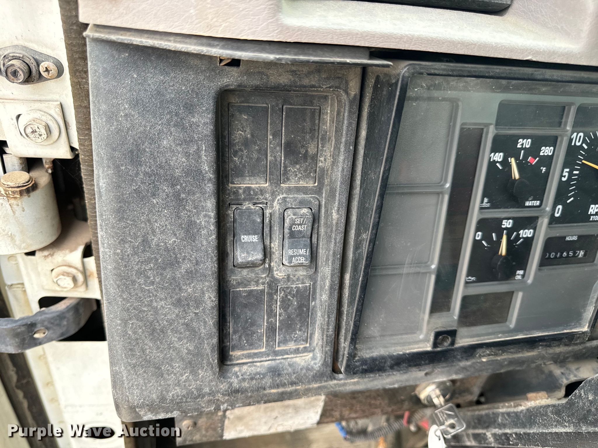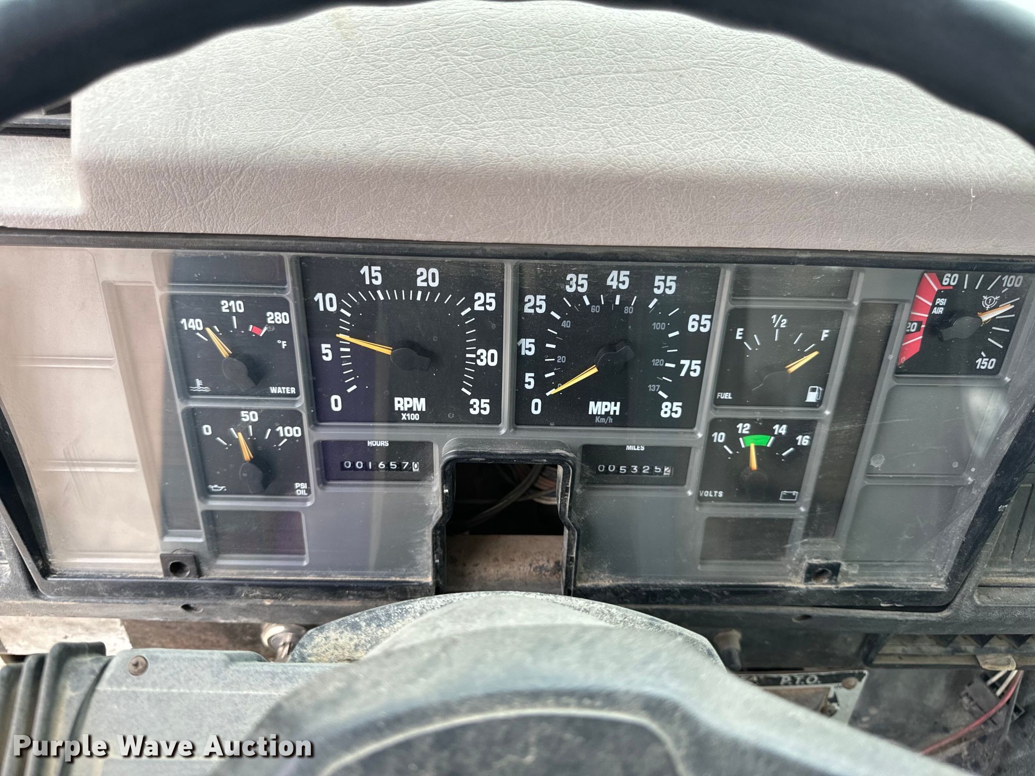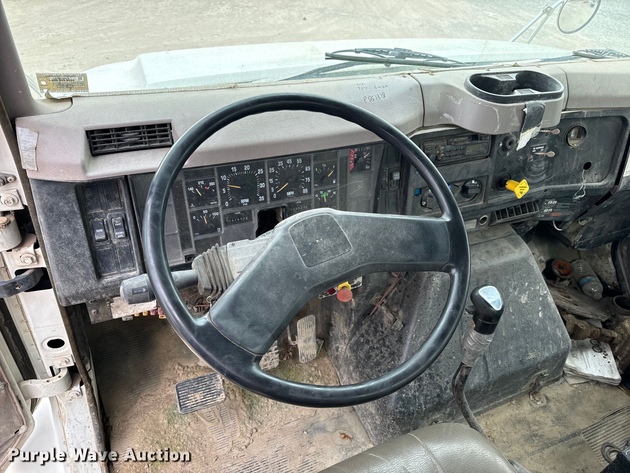 1999 International 8100 water truck. Miles: 5,325 on odometer Actual mileage unknown, Hours: 1,657 on meter, VIN: 1HTHCADR4XH637741, Unit #: T-48. Engine International DT466, Displacement: 8.7L, Cylinders: 6, Fuel type: Diesel. Transmission Eaton Fuller, Manual, Speed: 9. Chassis Axles: Tandem, Differential lock: Inter-axle, Suspension: Air Dump valves, Brakes: Air. Interior AC, Heat, Cruise control. Features Bed / tank Serial: 100012, 14' 11" L x 96" W, Spray bar: Front, Rear, Side discharge, Hose reel, Top fill, Rear drain: 3", Rear outlet: 3". Tires Front: 385/65R22.5, Rear: 11R22.5. Notes Dead battery, Non-operational water pump, AC issues, will not blow cold, Possible water tank issues, may have sediment in tank. Missouri title. Mileage has not been verified. Exempt will be written in the odometer disclosure on the title. Title distribution may be delayed up to 14 days from verification of funds. Kissick Construction Company. Kansas City, MO 64132