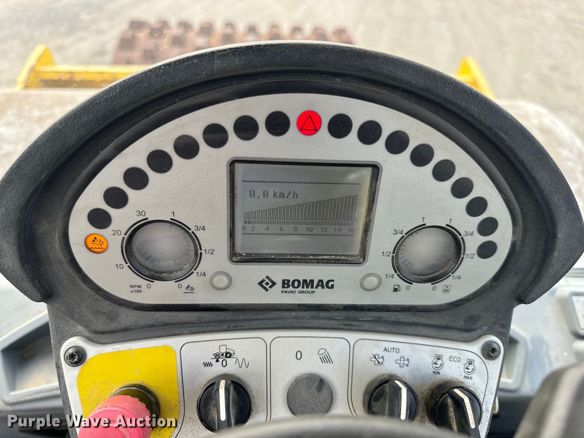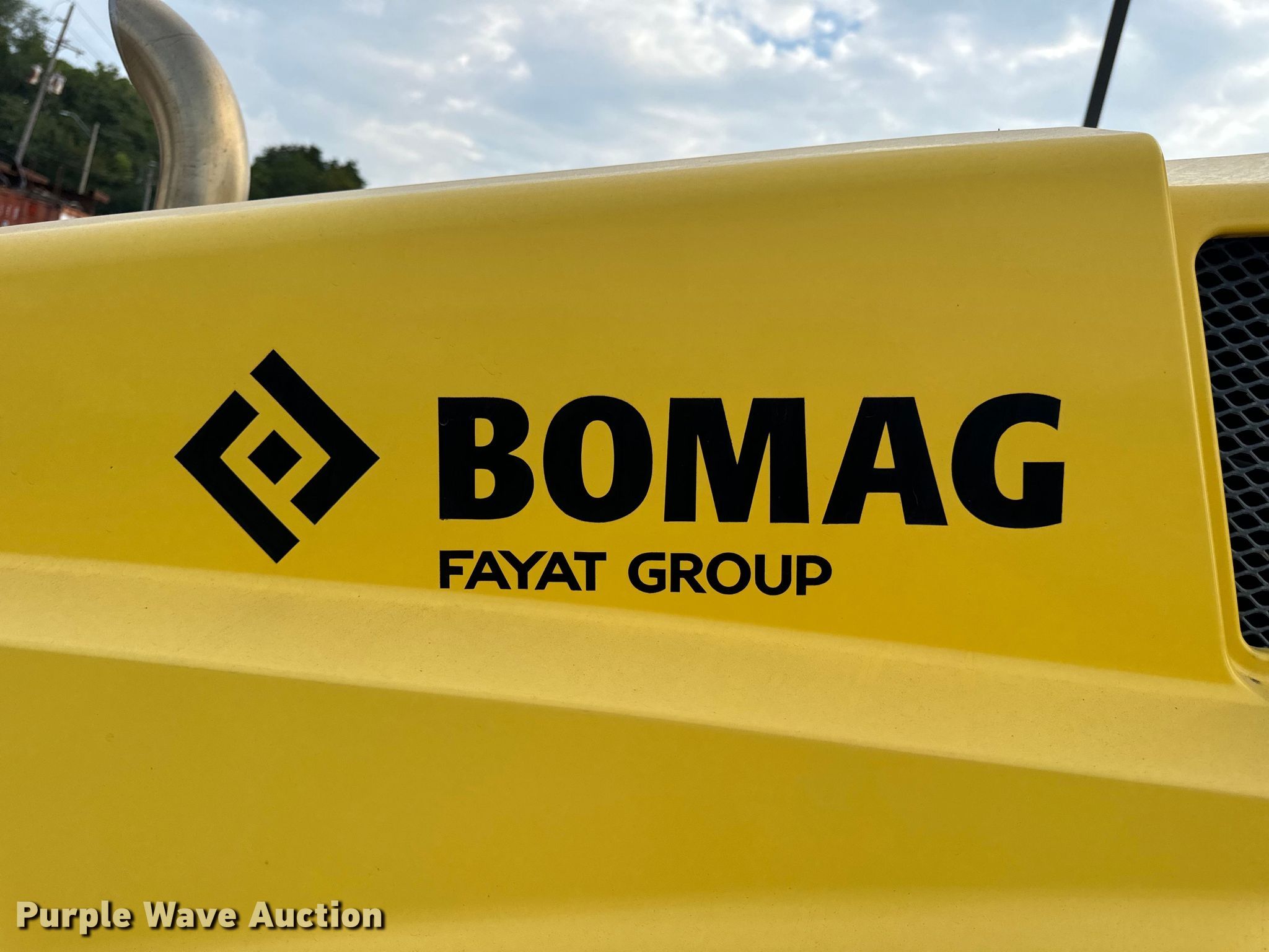 2017 Bomag BW211DH-5 single drum vibratory roller. Hours: 1,737 on meter, Serial: 101586091010. Engine Deutz TCD, Cylinders: 4, Fuel type: Diesel, HP: 127. Transmission Hydrostatic. Operators station Enclosed cab, AC, Heat. Features Drum: Smooth, Combination/ Shell Kit, Vibratory system: Single, Two speed, Front drum Width: 84", Diameter: 59", Drum scrapers: Front. Tires Size: 23.1-26R3. Kissick Construction Company. Kansas City, MO 64132