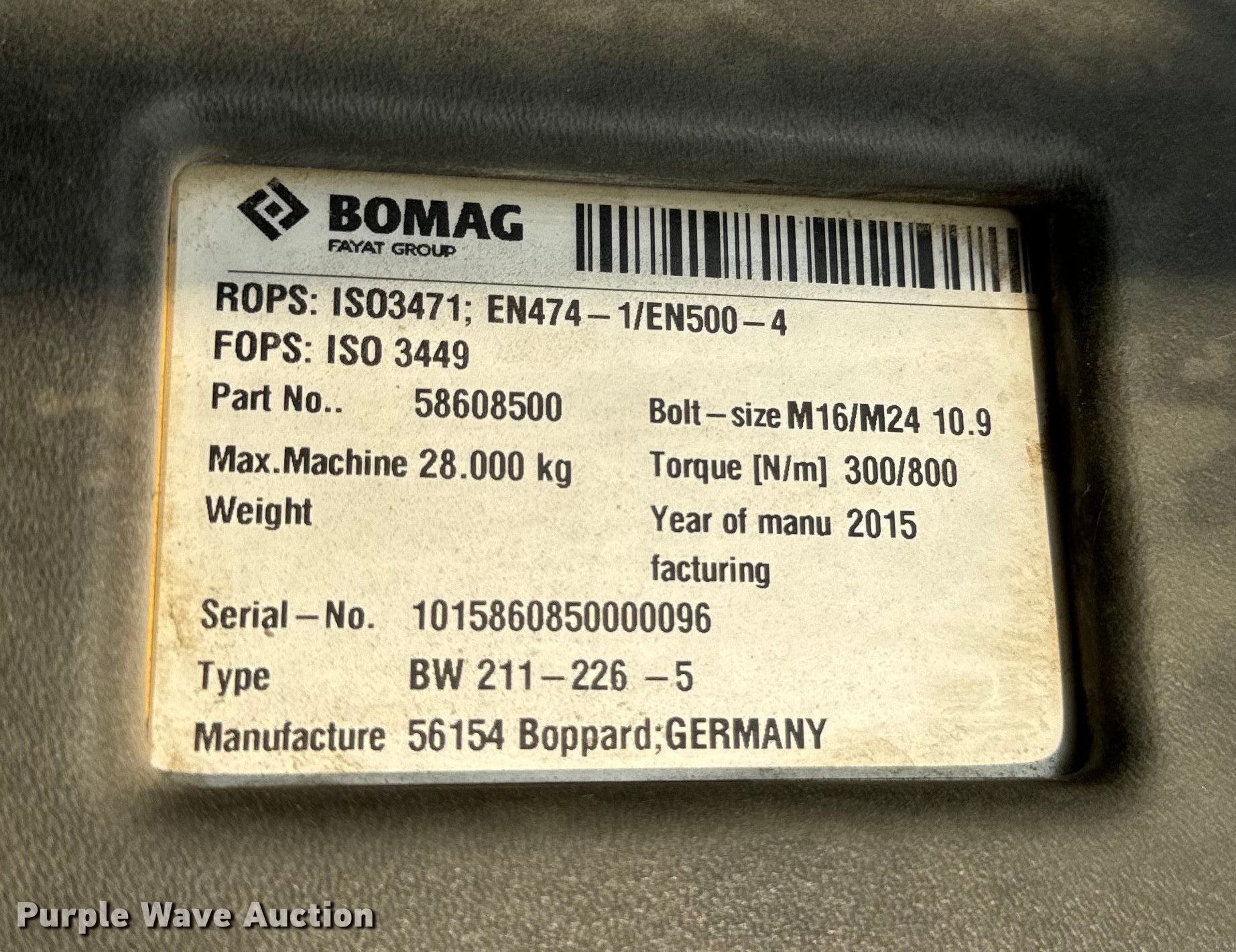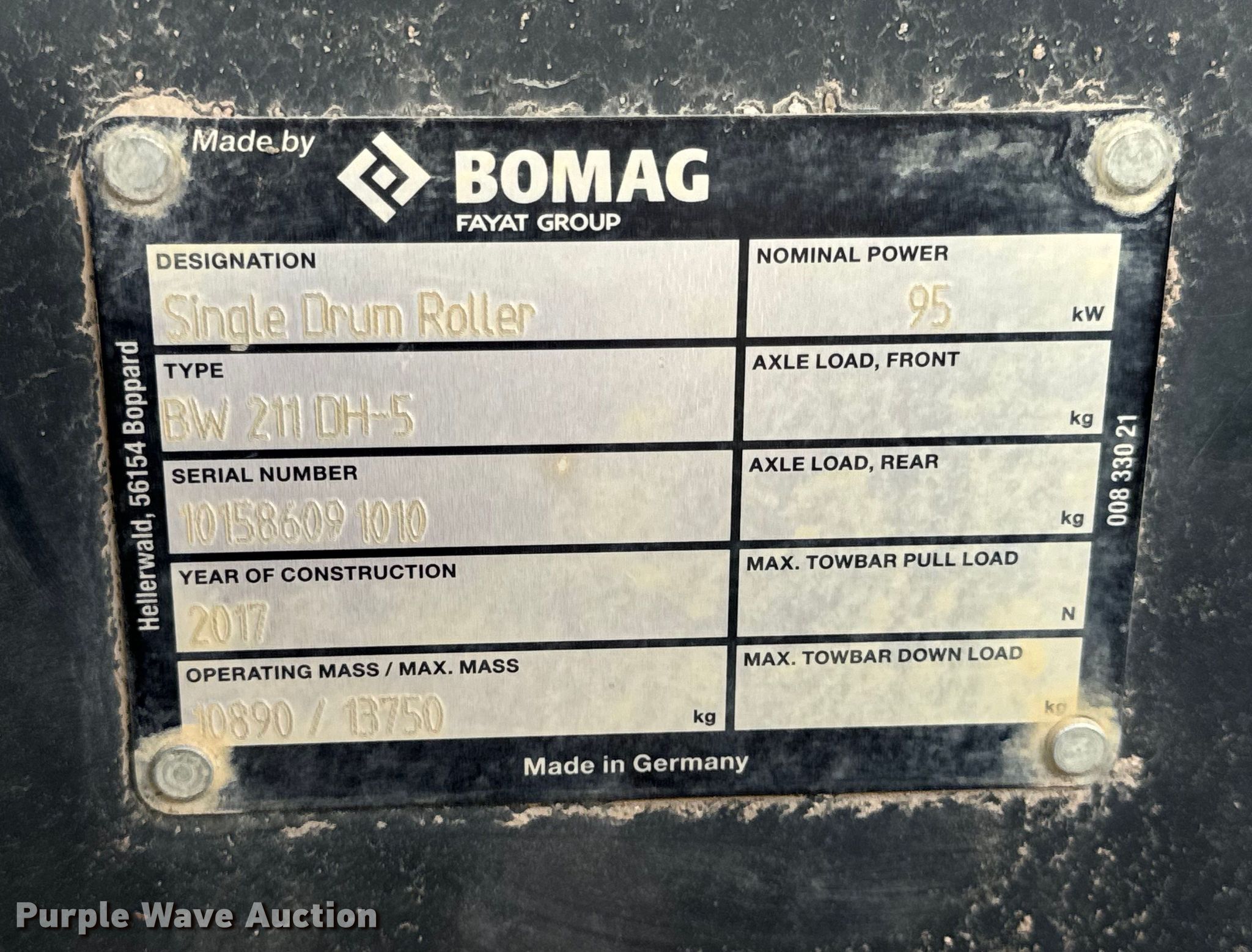2017 Bomag BW211DH-5 single drum vibratory roller