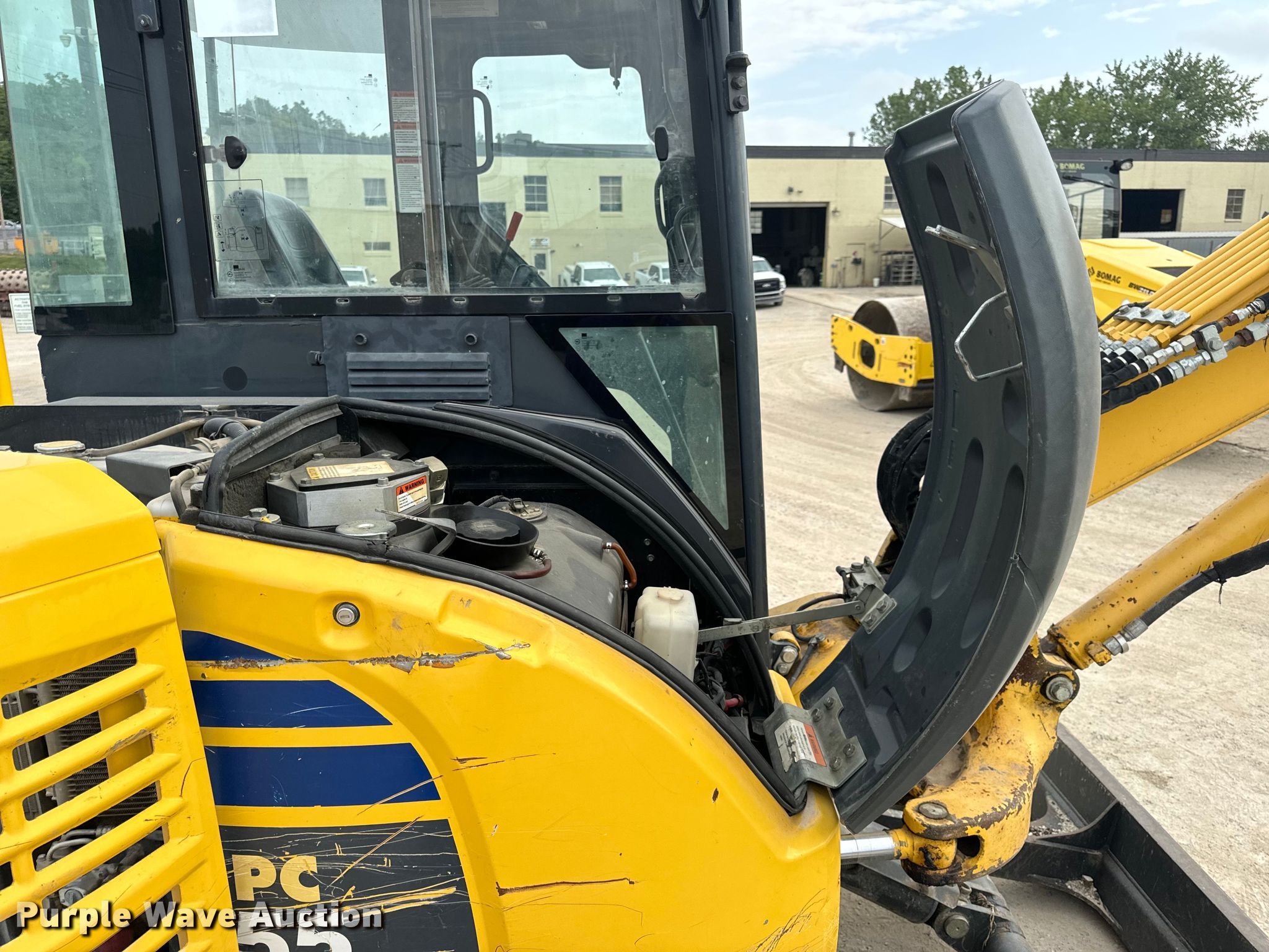2012 Komatsu PC55MR-3 mini excavator. Hours: 6,234 on meter, Serial: KMTPC212K04017177. Engine Yanmar 4D88E-6BPDB, Serial: 25699, Displacement: 2.190L, Cylinders: 4, Fuel type: Diesel. Transmission Hydrostatic, Two speed travel. Operators station Enclosed cab, AC, Heat. Features Auxiliary hydraulics, Backfill blade Width: 77", Boom Swing, Stick Stick length: 65", Quick coupler: Mechanical WB.. Tracks Width: 16", Rubber. Notes AC issues, will not blow cold, Track pads missing. Kissick Construction Company. Kansas City, MO 64132