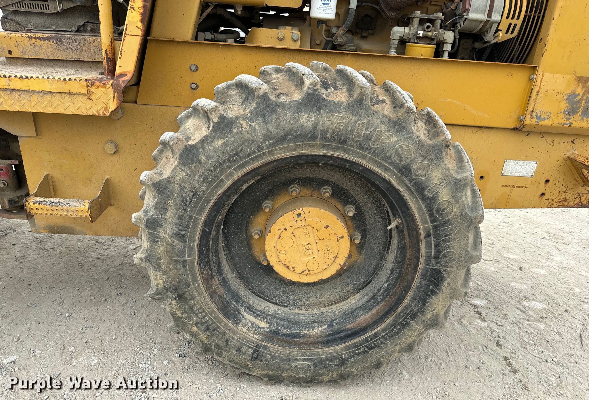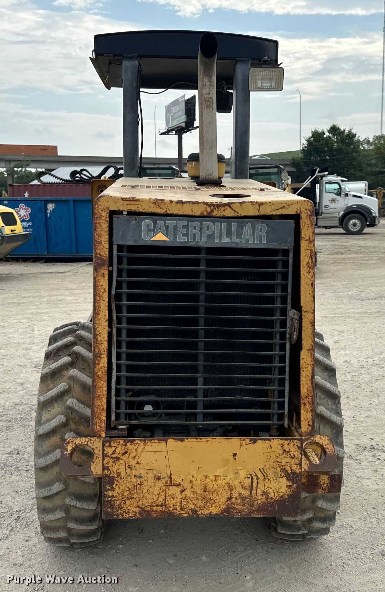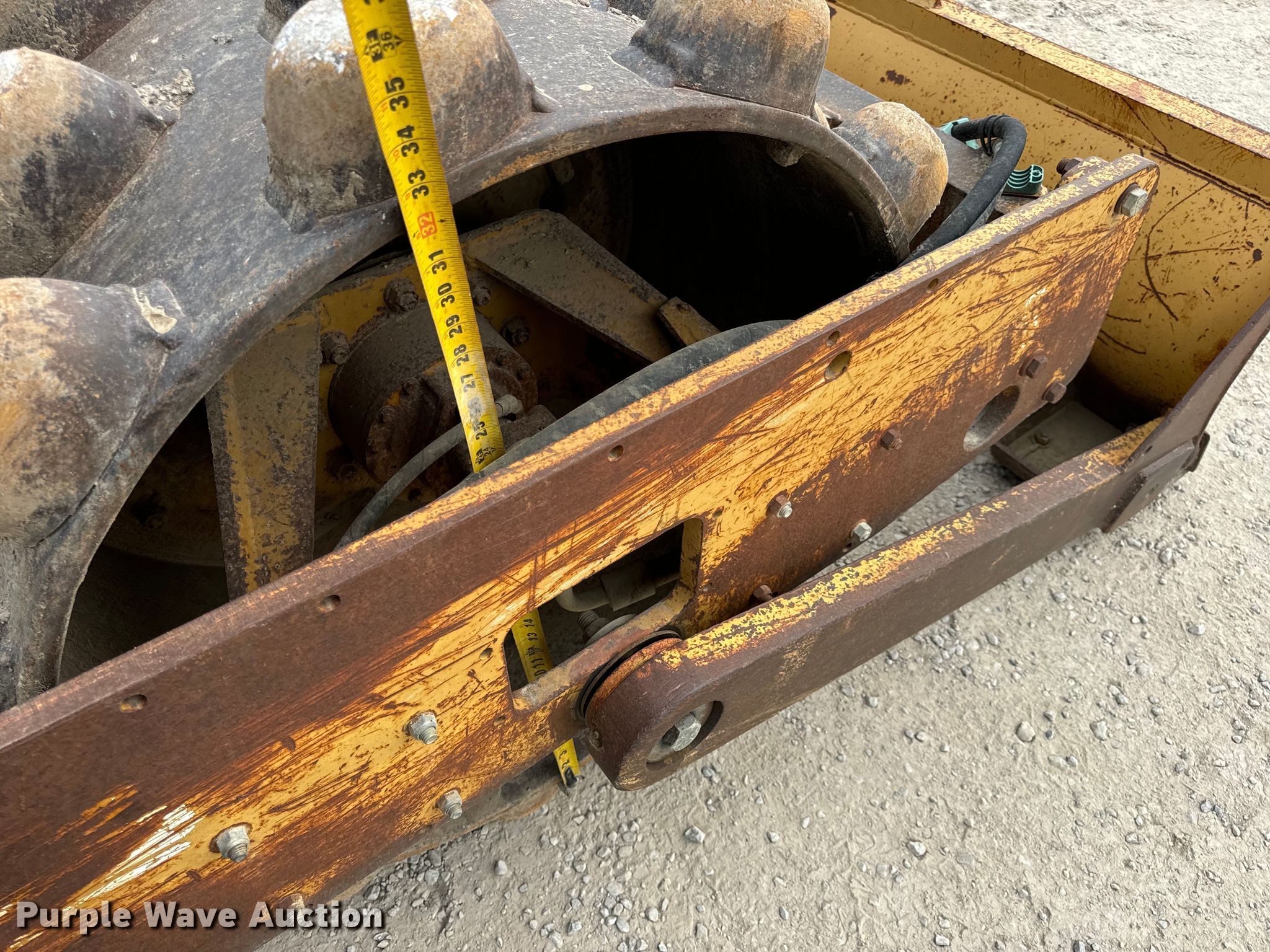 2002 Caterpillar CP-323C single drum vibratory roller. Hours: 4,574 on meter, Serial: CATCP323L6DM00554. Engine Caterpillar 3054, Serial: 7BJ52756, Cylinders: 4, Fuel type: Diesel. Transmission Hydrostatic. Operators station OROPS, Vandal cover. Features Drum: Padfoot, Vibratory system: Single, Front drum Width: 50", Diameter: 33", Drum scrapers: Front, Front blade width: 62". Tires Size: 11.2-24. Notes Front blade cutting edge broken. Kissick Construction Company. Kansas City, MO 64132