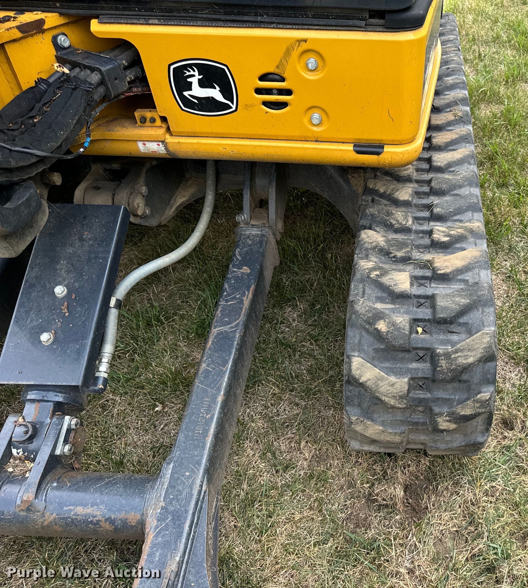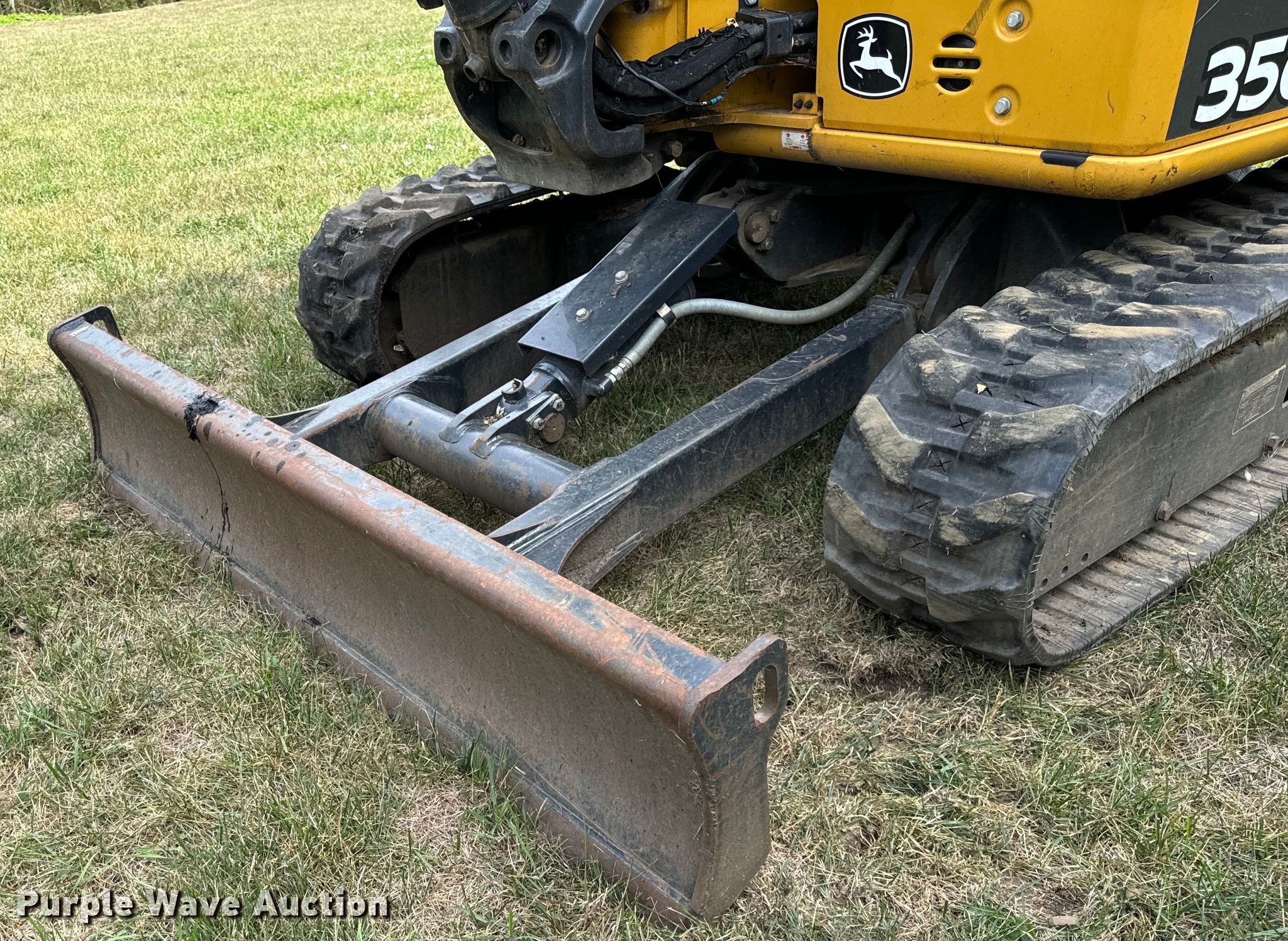 2020 John Deere 35G mini excavator. Hours: 374 on meter, Serial: 1FF035GXVJK284437. Engine Yanmar 3TNV88F-EPHB, Cylinders: 3, Fuel type: Diesel. Transmission Hydrostatic, Two speed travel. Operators station Pattern changer. Features Auxiliary hydraulics, Counter weights, Removable, Backfill blade Width: 68", Boom Swing, Stick Stick length: 67", Quick coupler: Mechanical, Bucket Width: 18", Cutting edge: Weld-on, Teeth: 4. Tracks Width: 12", Rubber. Notes Dead battery, will be replaced prior to auction. Lemont, IL 60439
