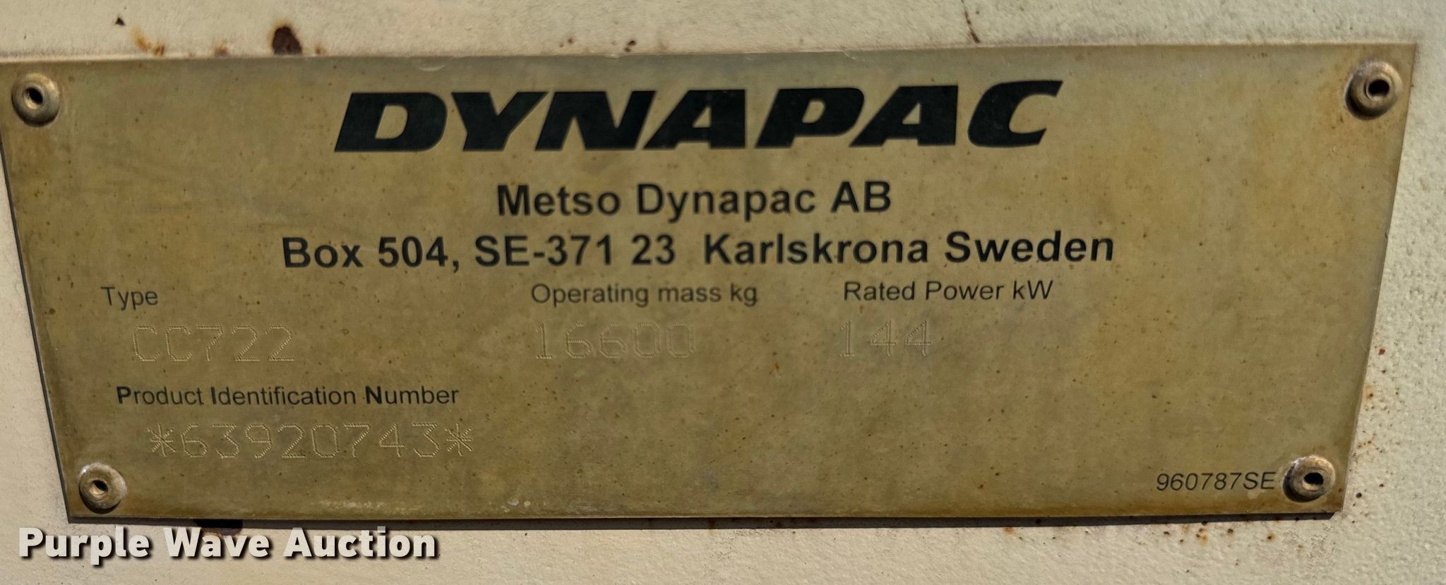 Purple Wave is selling a used Double Drum Roller Compactor in Indiana. This item is a 2003 Dynapac CC722 double drum vibratory roller with the following: Hours: 8,099 on meter, Actual hours unknown, Serial: 63920743, Unit #: RR36