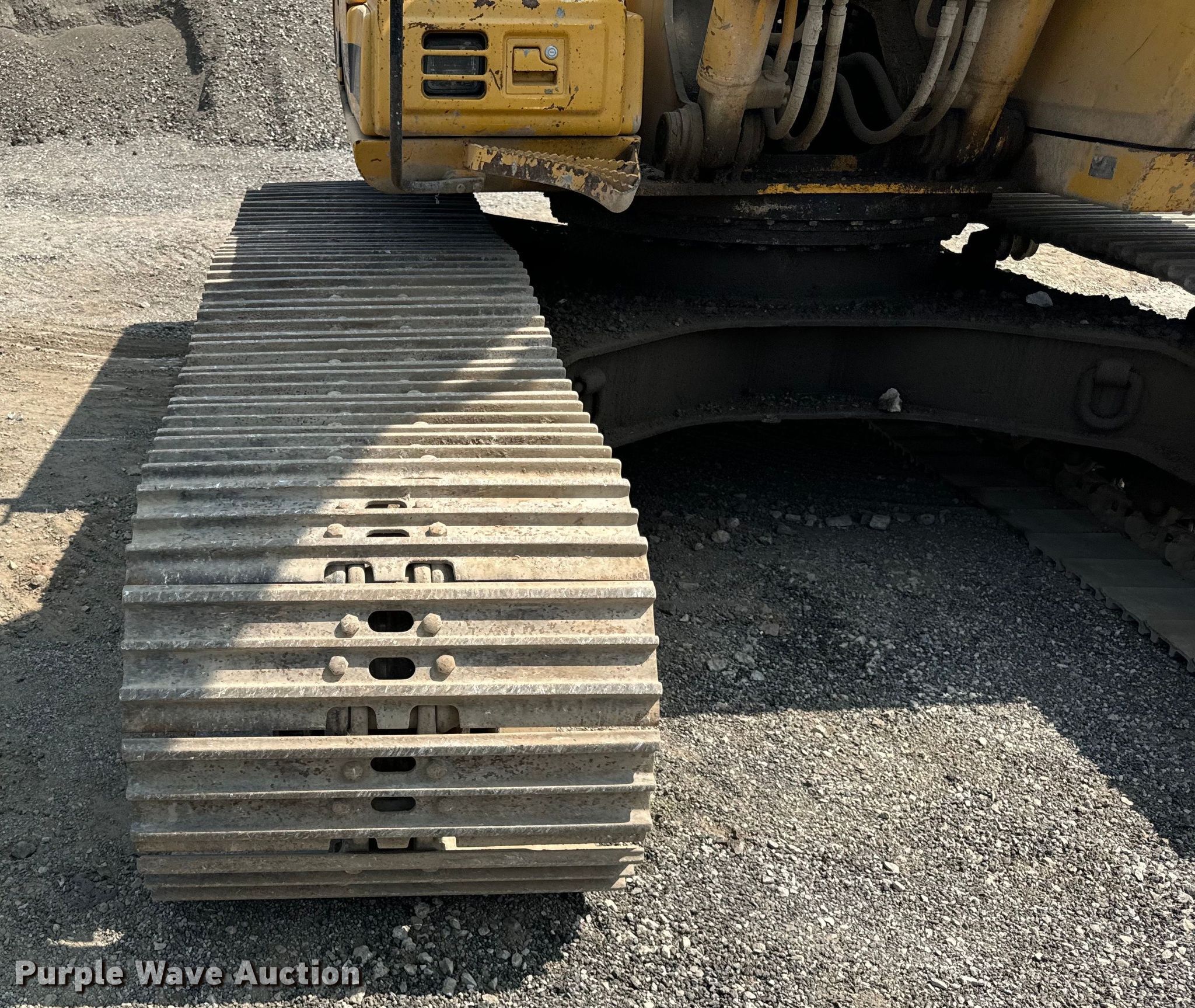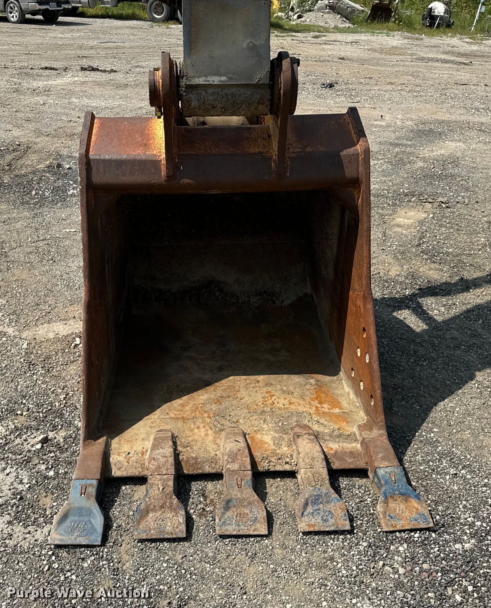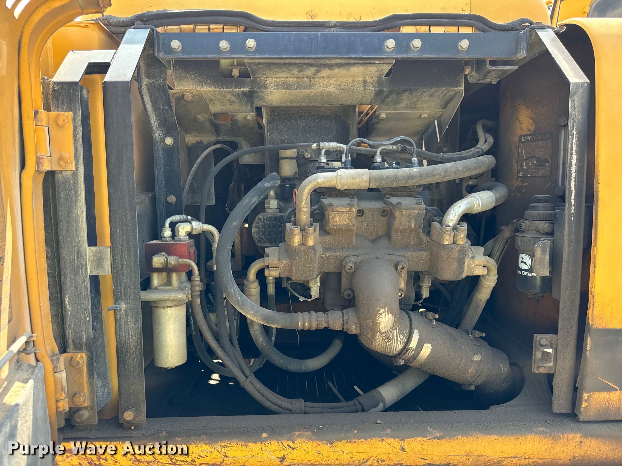 2001 John Deere 200LC excavator. Hours: 11,487 on meter, Serial: FF0200X501944. Engine John Deere, Cylinders: 6, Fuel type: Diesel. Transmission Hydrostatic. Operators station Enclosed cab, AC, Heat. Features Auxiliary hydraulics, Boom Standard, Stick Stick length: 9' 7", Bucket Width: 42", Teeth: 5. Tracks Width: 31.5", Steel, Grouser pads: Triple. Notes Glass cracked, AC compressor belt missing. Duce Construction Company. Champaign, IL 61822