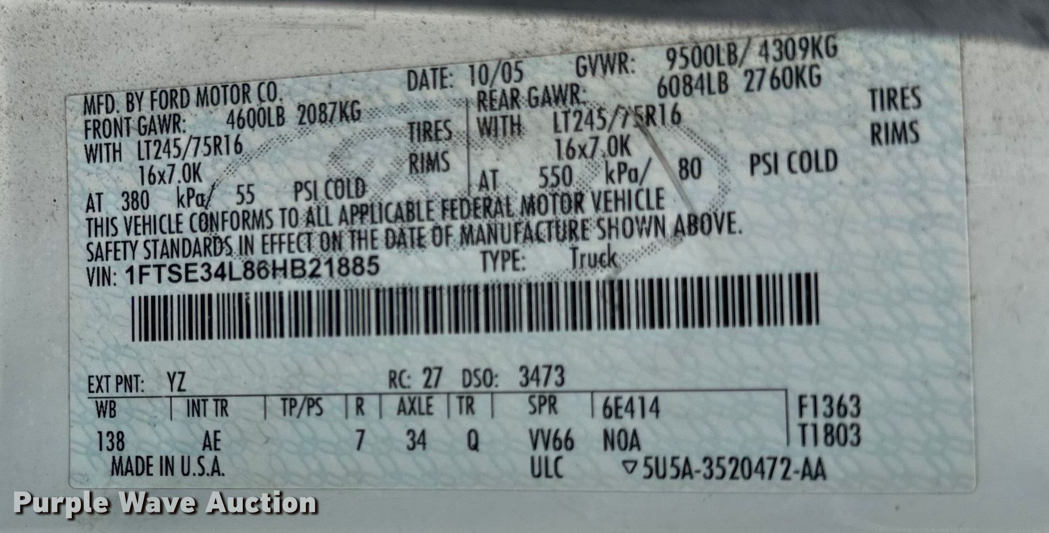 - VIN: 1FTSE34L86HB21885
