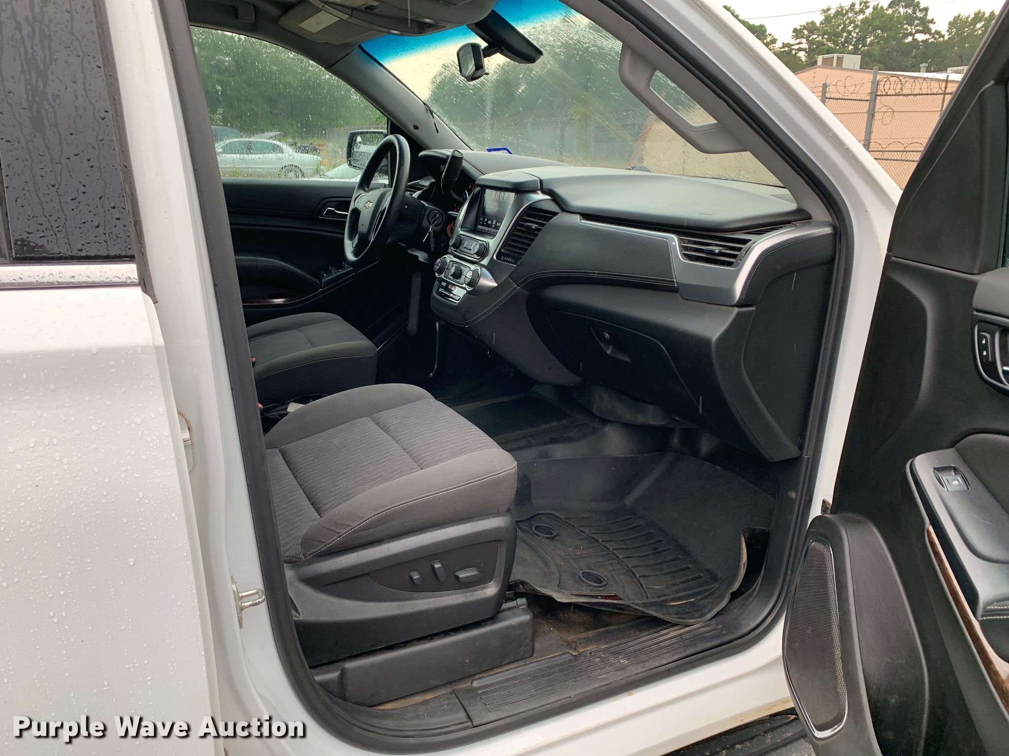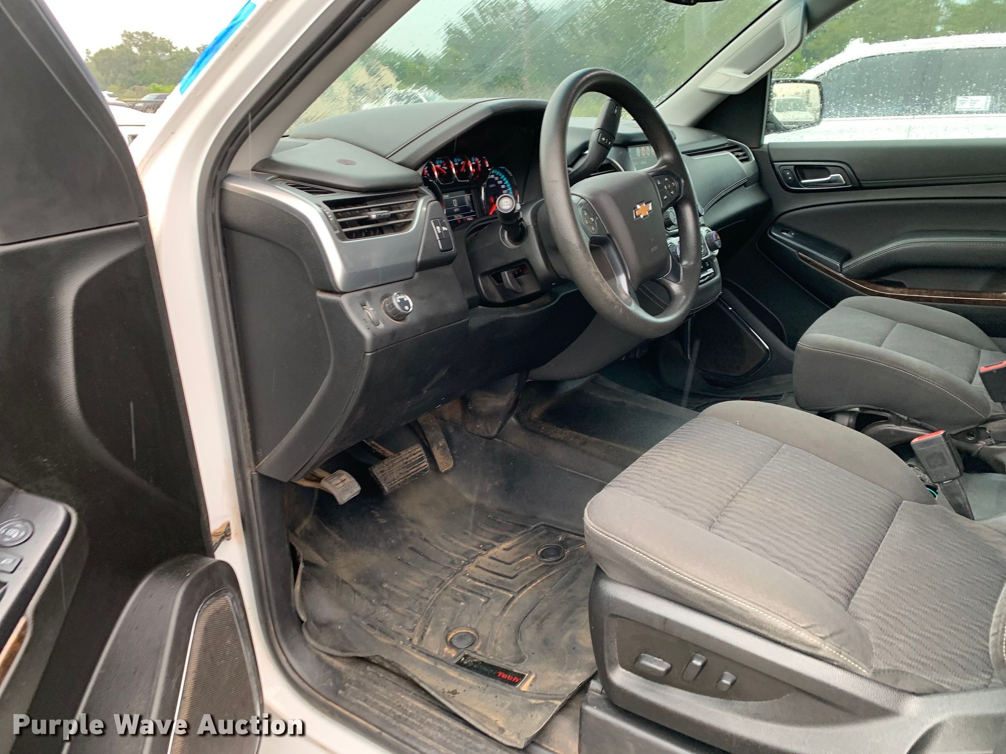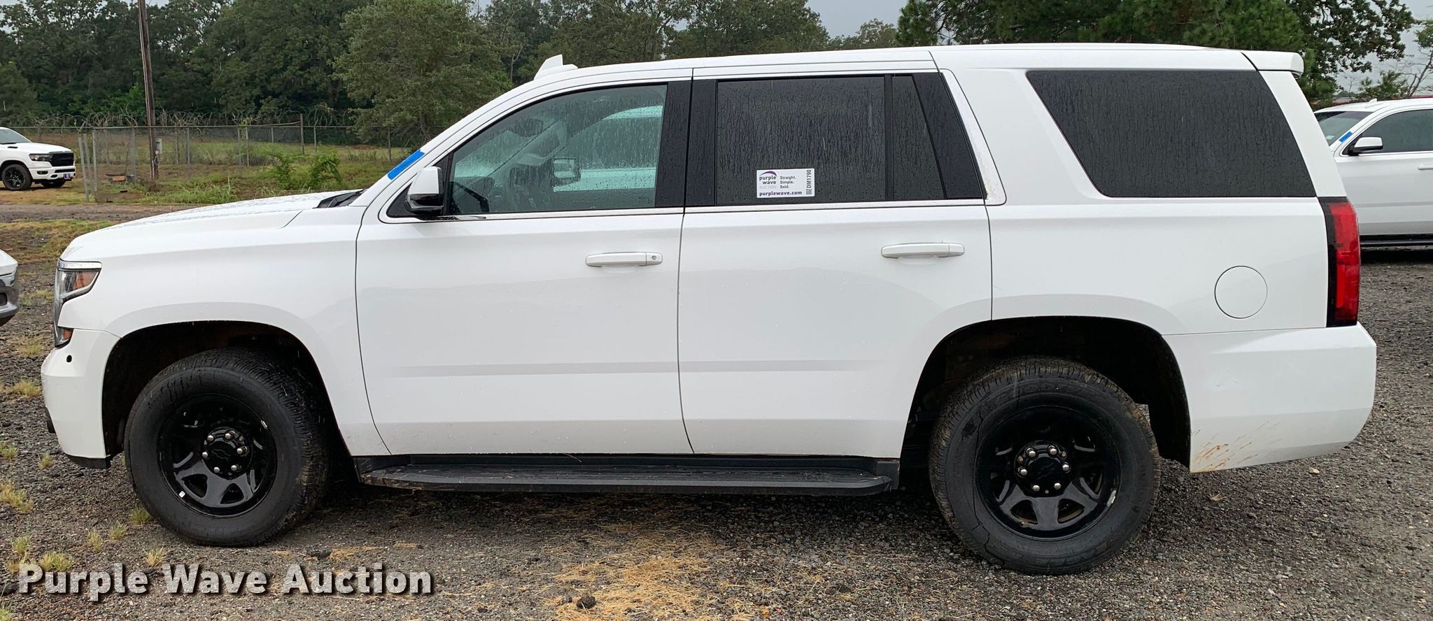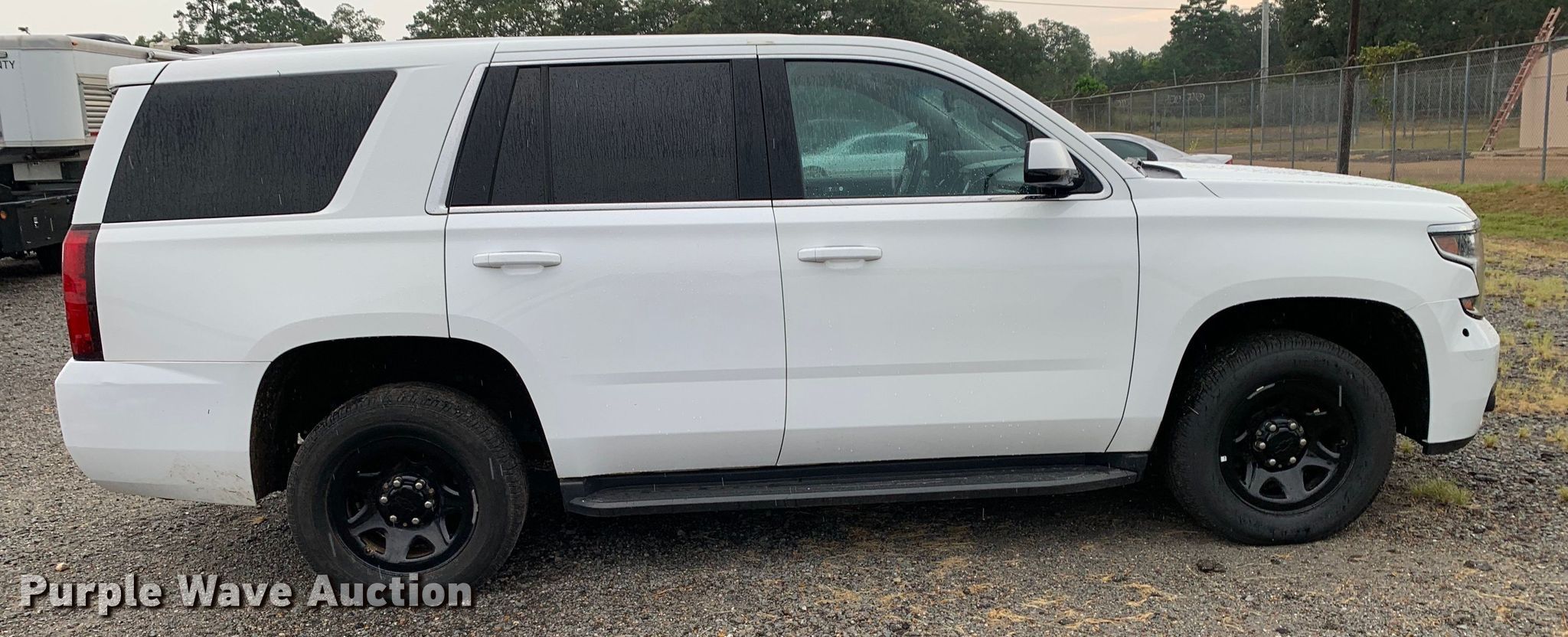 2020 Chevrolet Tahoe Police SUV. Miles: 72,172 on odometer, VIN: 1GNLCDEC8LR188756, Unit #: LN67589. Engine Displacement: 5.3L V8 OHV, Cylinders: 8, Fuel type: Gas. Transmission Automatic. Interior AC, Heat, Seat: Power driver, Power passenger, Power windows, Power locks, Cruise control, Backup camera. Tires Size: 265/60R17. Notes Dash warning indicator: TPMS, Center console missing. Texas title. Nacogdoches County, TX. Nacogdoches, TX 75961
