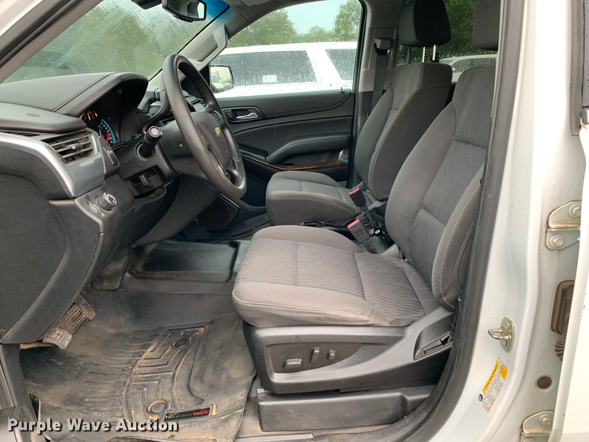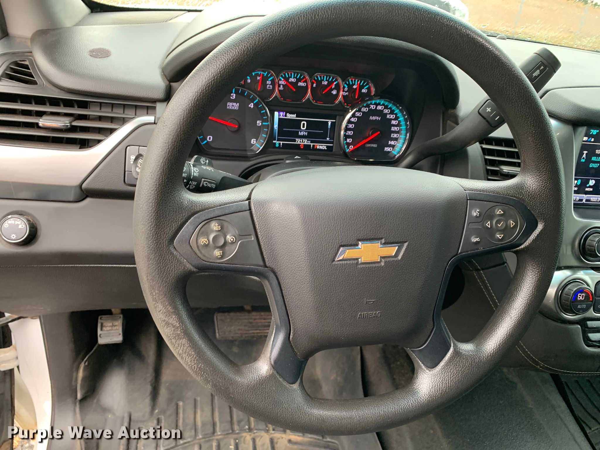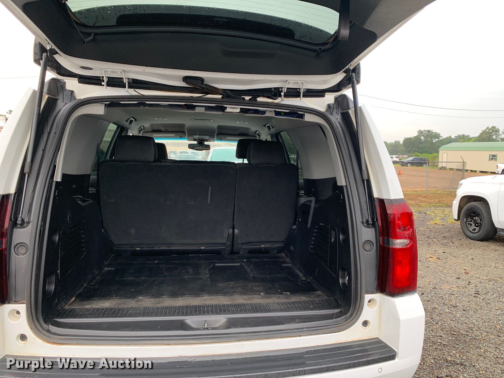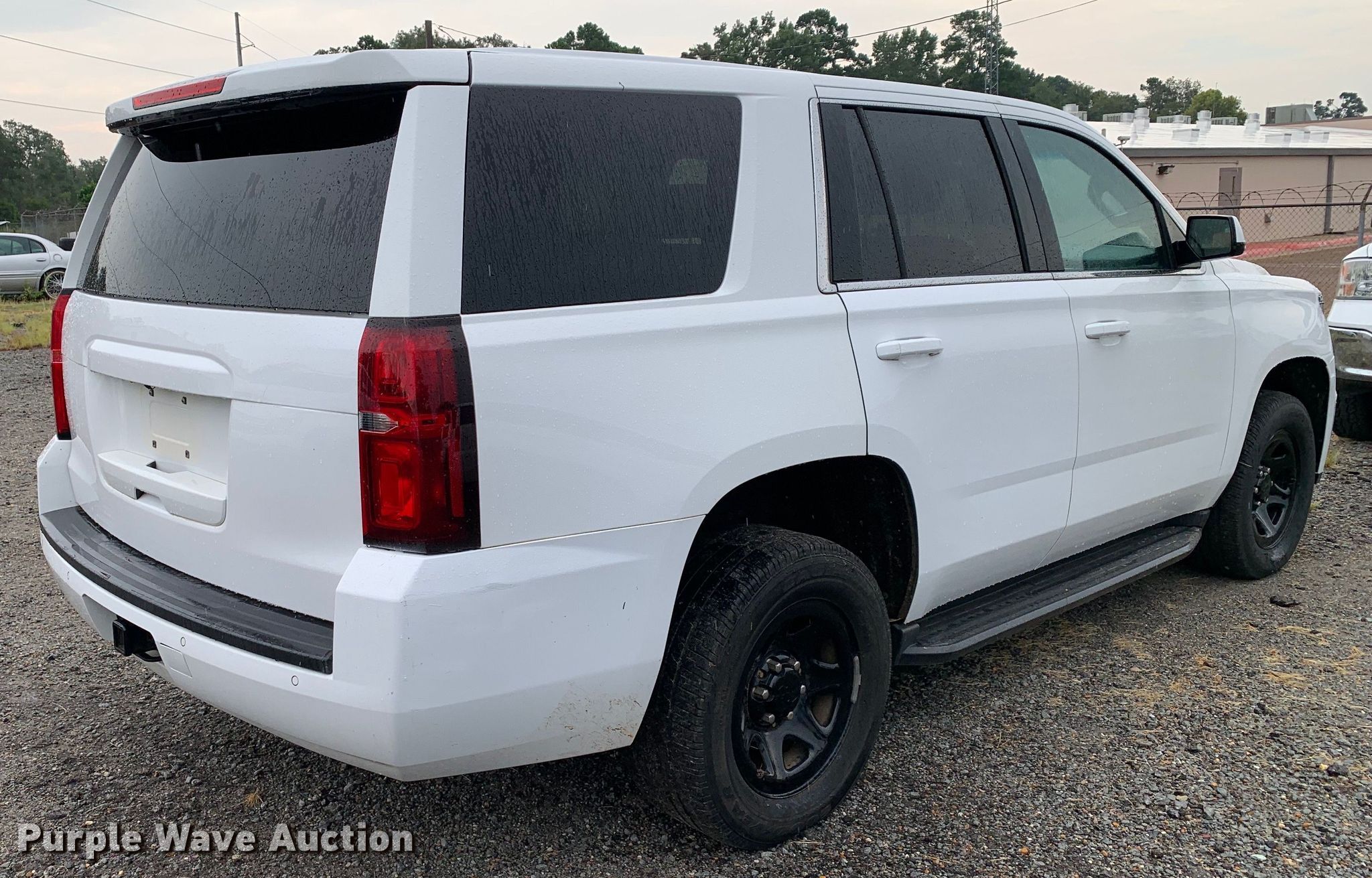 2020 Chevrolet Tahoe Police SUV. Miles: 72,172 on odometer, VIN: 1GNLCDEC8LR188756, Unit #: LN67589. Engine Displacement: 5.3L V8 OHV, Cylinders: 8, Fuel type: Gas. Transmission Automatic. Interior AC, Heat, Seat: Power driver, Power passenger, Power windows, Power locks, Cruise control, Backup camera. Tires Size: 265/60R17. Notes Dash warning indicator: TPMS, Center console missing. Texas title. Nacogdoches County, TX. Nacogdoches, TX 75961