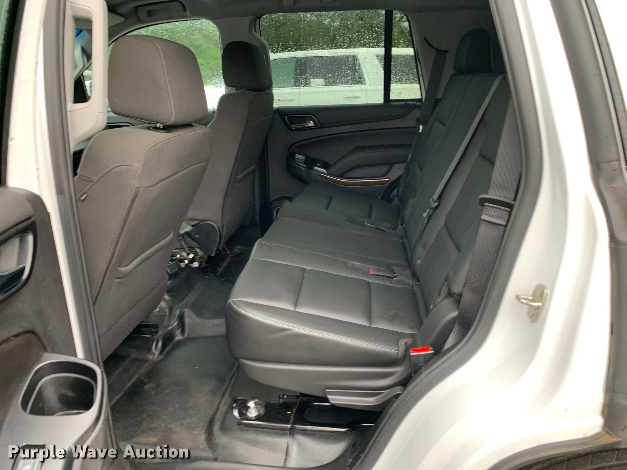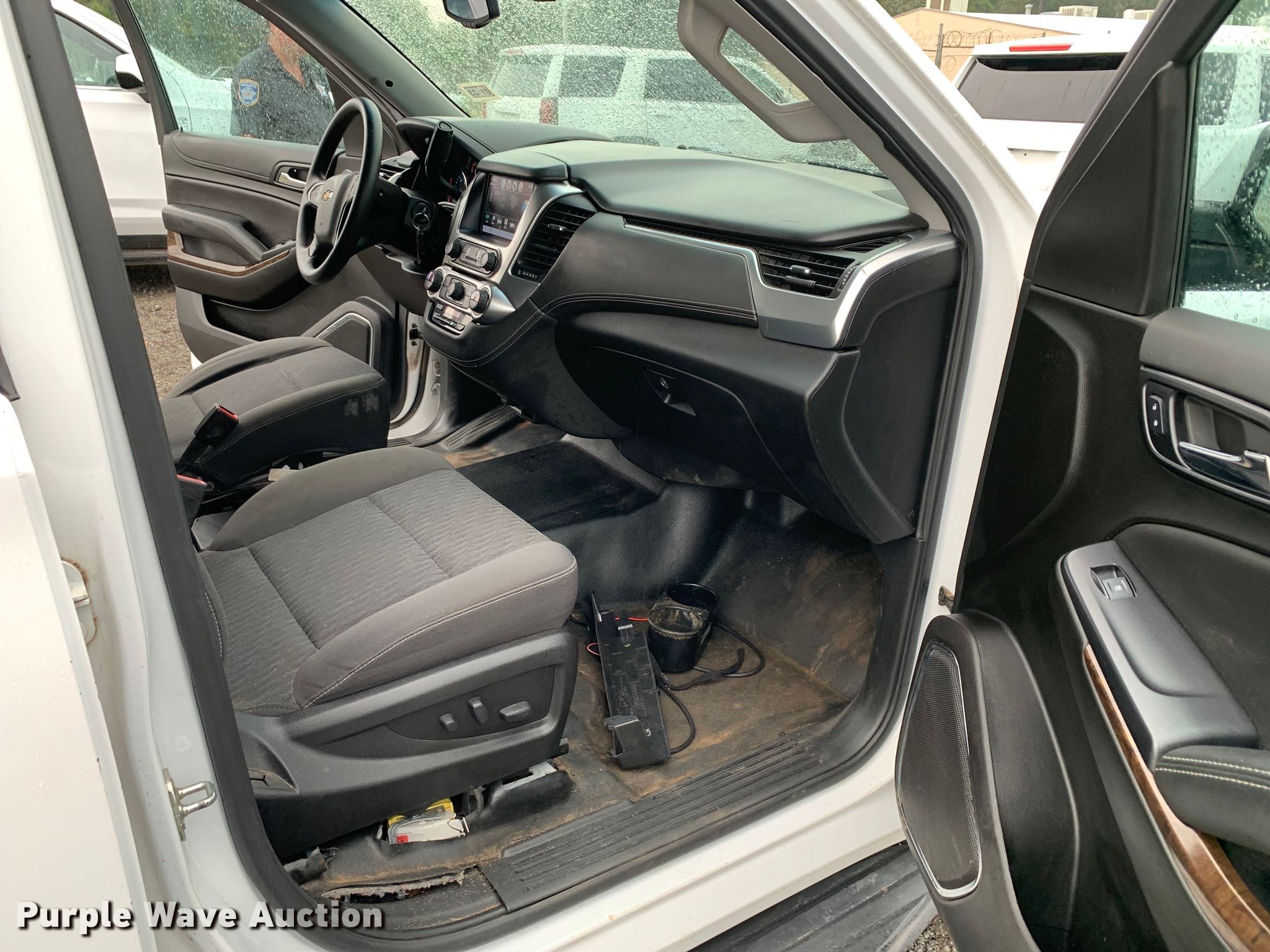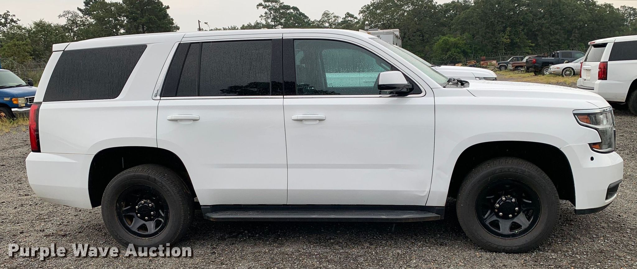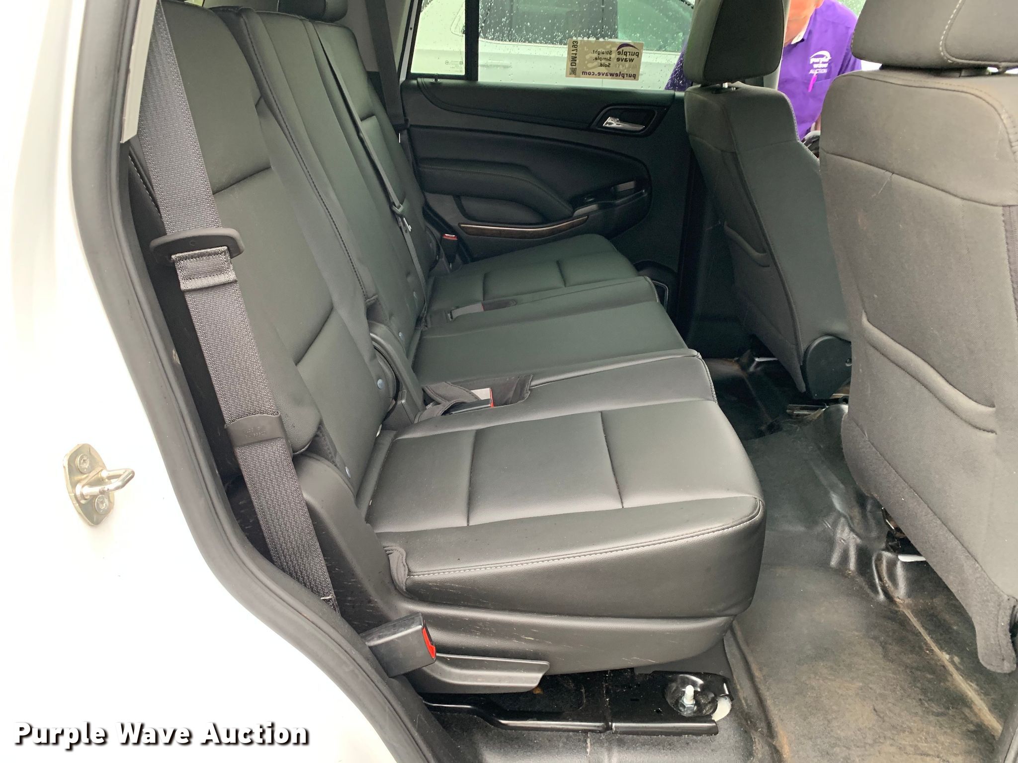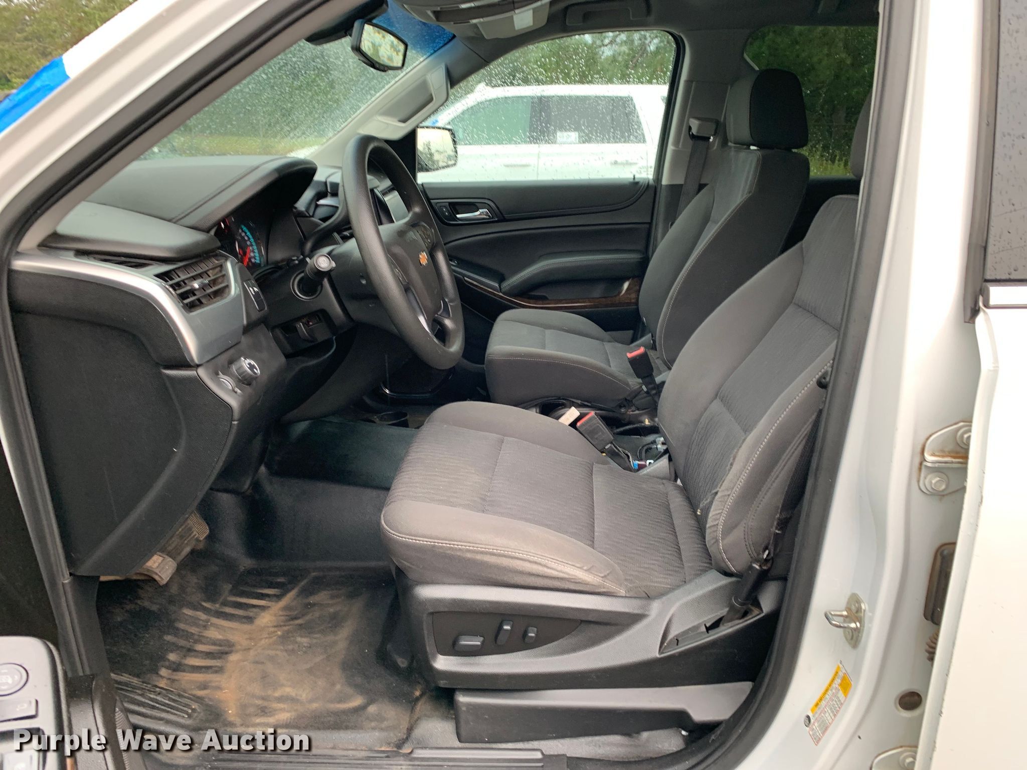2020 Chevrolet Tahoe Police SUV. Miles: 93,035 on odometer, VIN: 1GNLCDEC9LR187292, Unit #: LN67590. Engine Displacement: 5.3L V8 OHV, Cylinders: 8, Fuel type: Gas. Transmission Automatic. Interior AC, Heat, Seat: Power driver, Power passenger, Power windows, Power locks, Cruise control, Backup camera. Tires Size: 265/60R17. Notes Dash warning indicator: TPMS, Airbag, Dead battery, Center console missing. Texas title. Nacogdoches County, TX. Nacogdoches, TX 75961