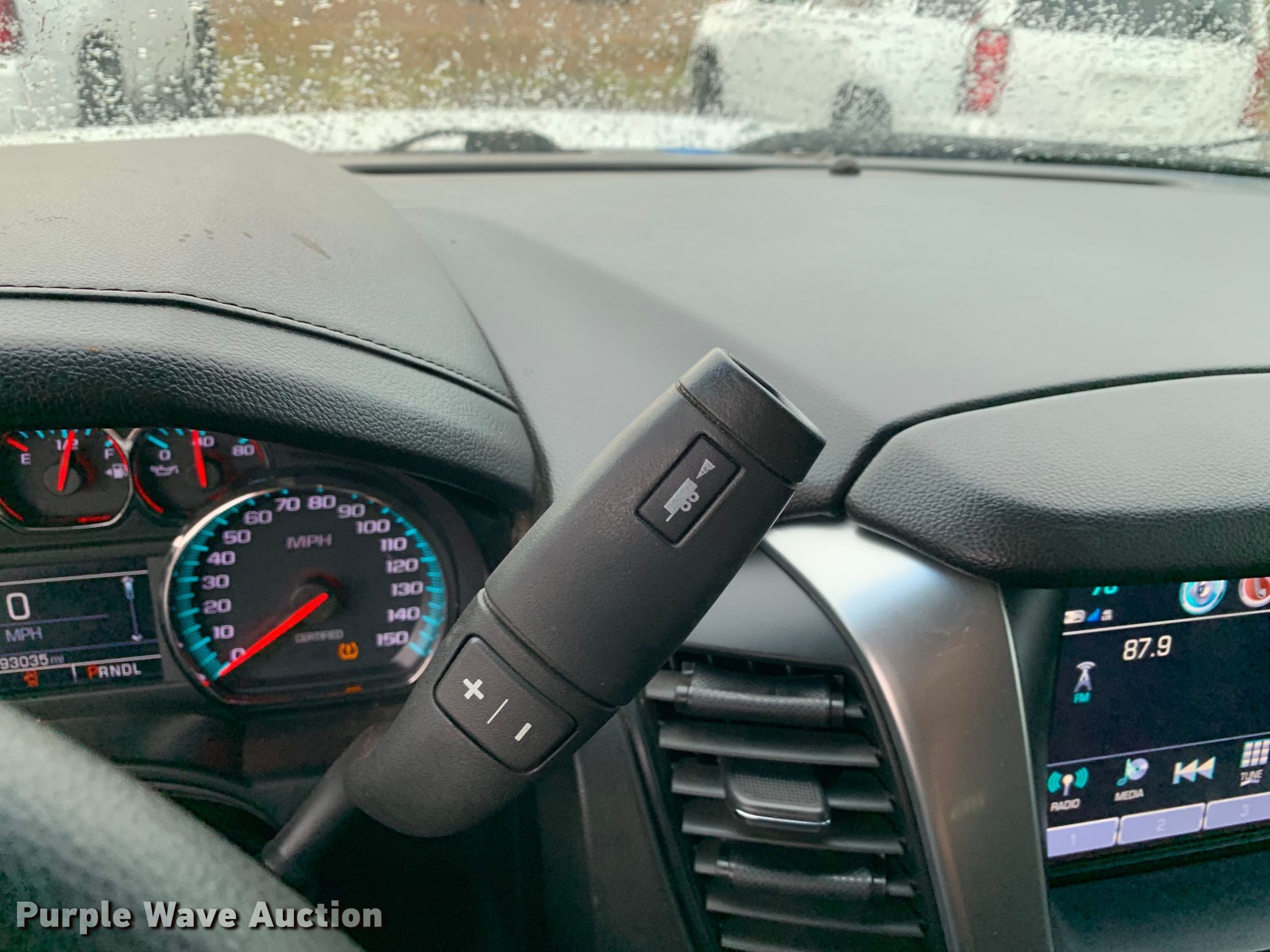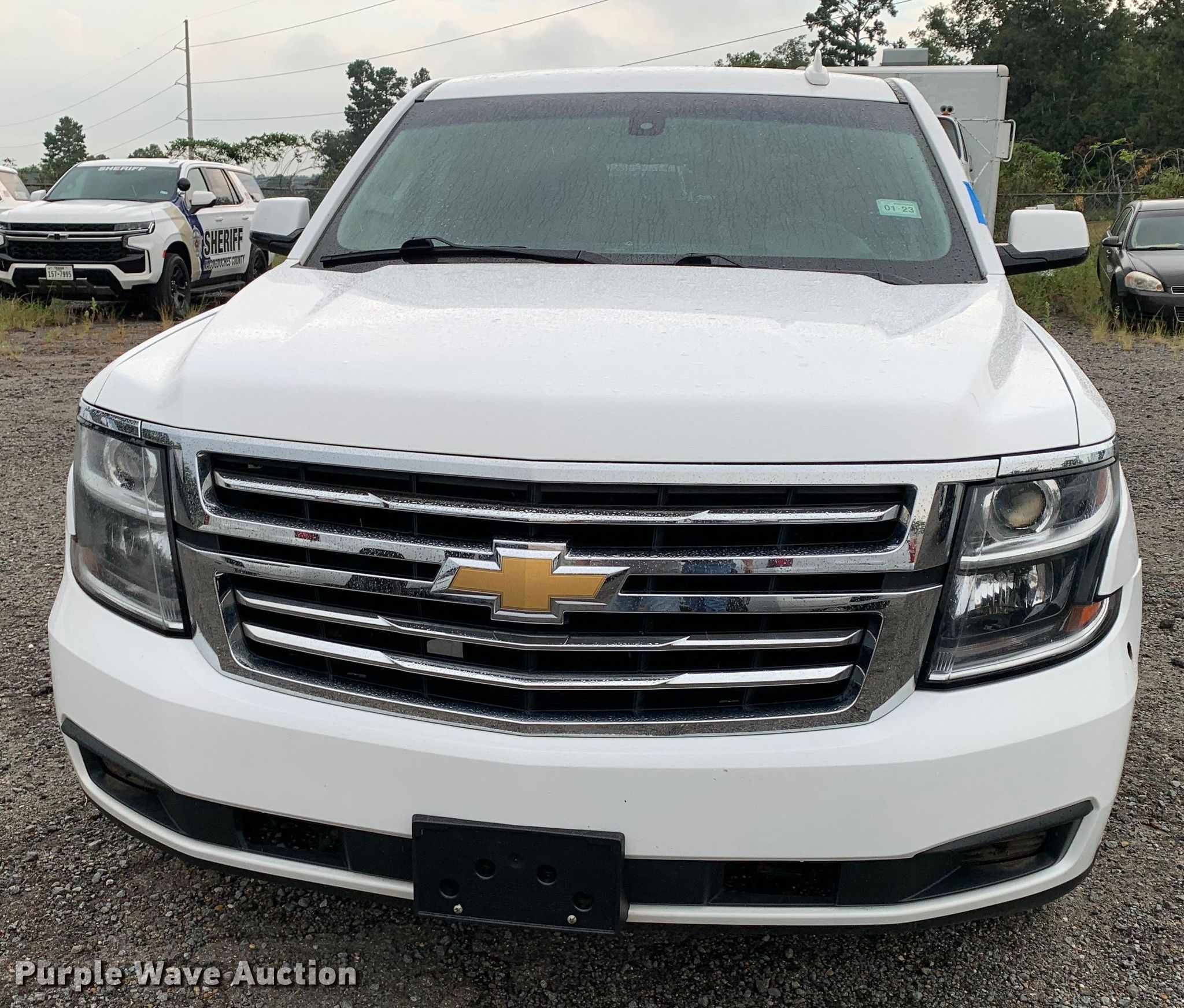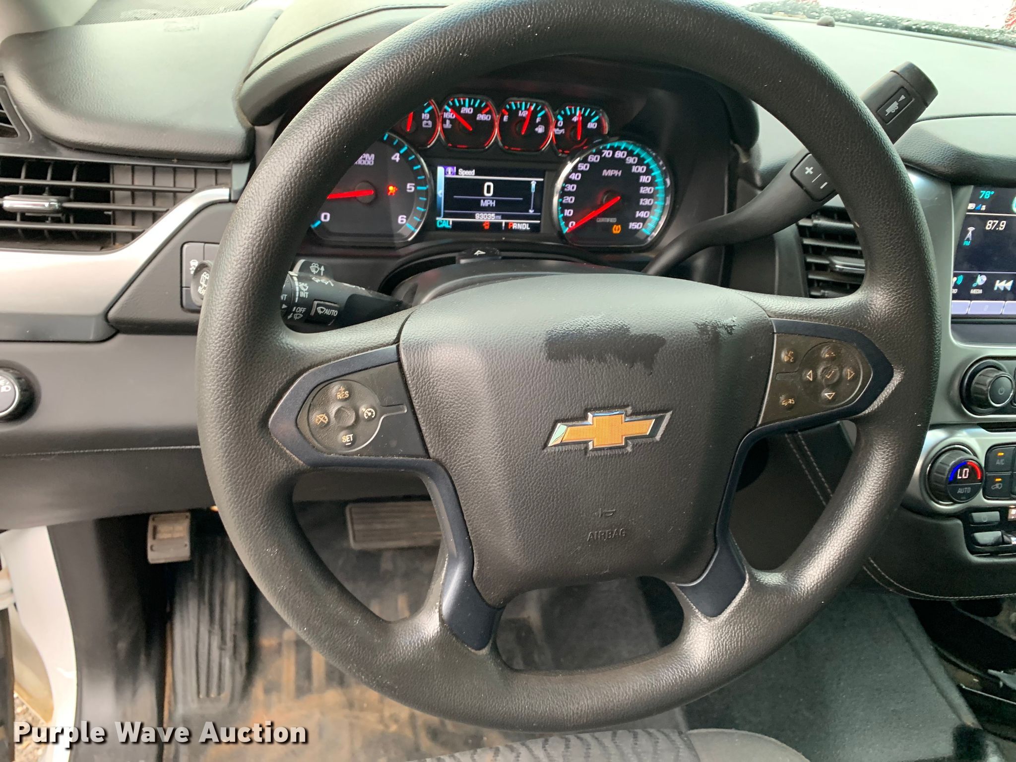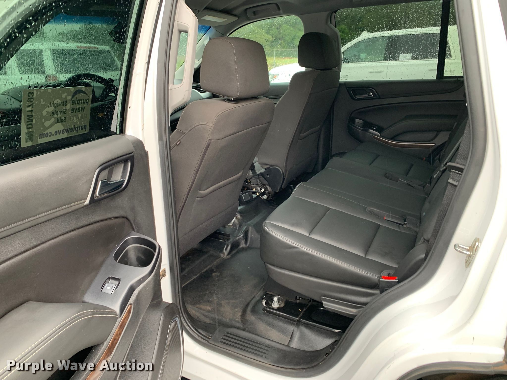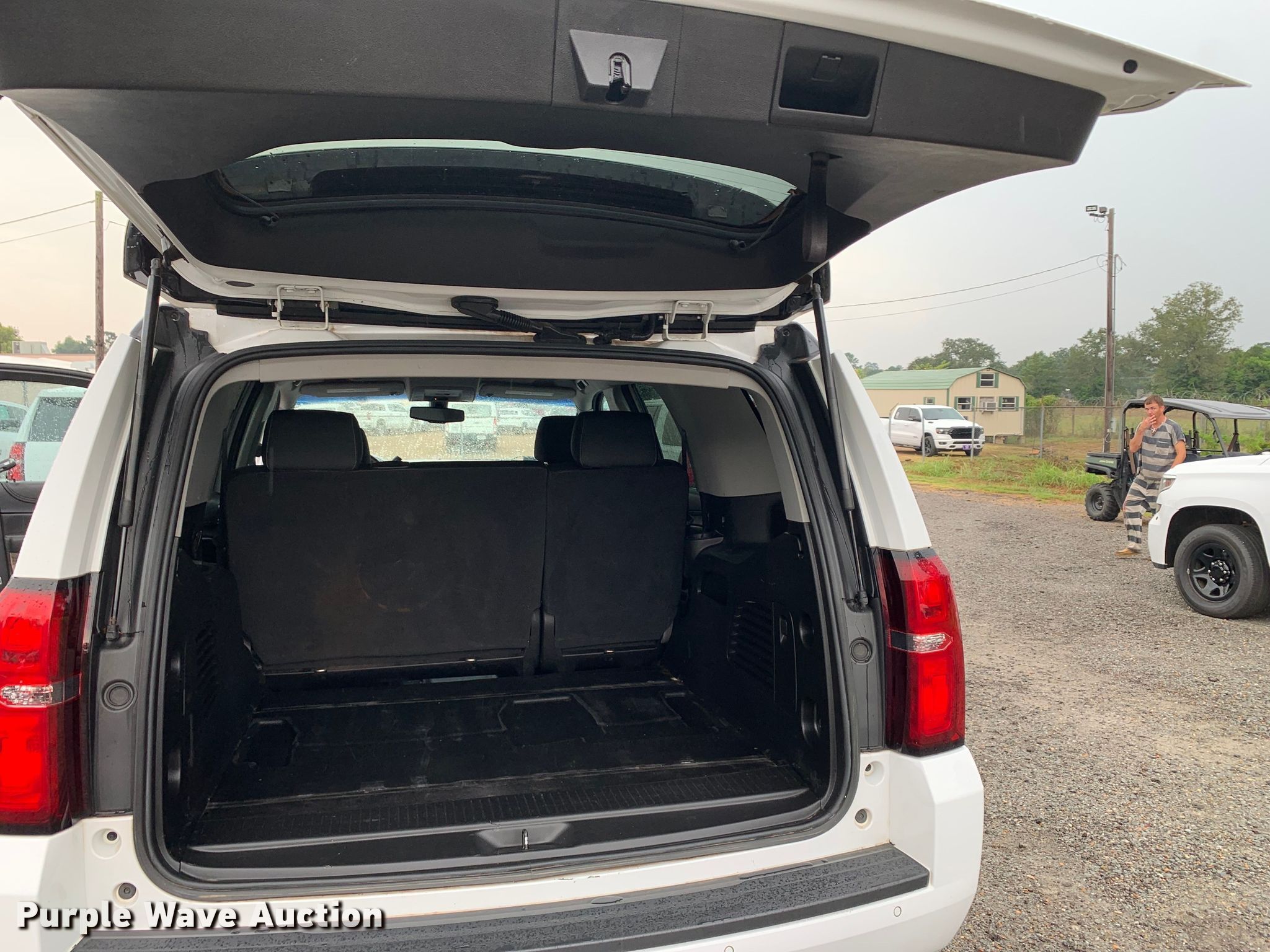 2020 Chevrolet Tahoe Police SUV. Miles: 93,035 on odometer, VIN: 1GNLCDEC9LR187292, Unit #: LN67590. Engine Displacement: 5.3L V8 OHV, Cylinders: 8, Fuel type: Gas. Transmission Automatic. Interior AC, Heat, Seat: Power driver, Power passenger, Power windows, Power locks, Cruise control, Backup camera. Tires Size: 265/60R17. Notes Dash warning indicator: TPMS, Airbag, Dead battery, Center console missing. Texas title. Nacogdoches County, TX. Nacogdoches, TX 75961