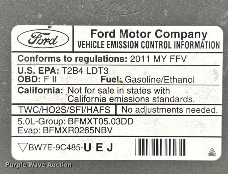 2011 Ford F150 XLT SuperCrew pickup truck. Miles: 103,932 on odometer, VIN: 1FTFW1EF5BFA08087. Engine Displacement: 5.0L, Cylinders: 8, Fuel type: Gas. Transmission Automatic, Four wheel drive. Interior AC, Heat, Power windows, Power locks, Cruise control. Tires Size: LT265/70R17. Notes Dash warning indicator: Check engine, TPMS. Iowa title. Franklin County Secondary Roads. Hampton, IA 50441