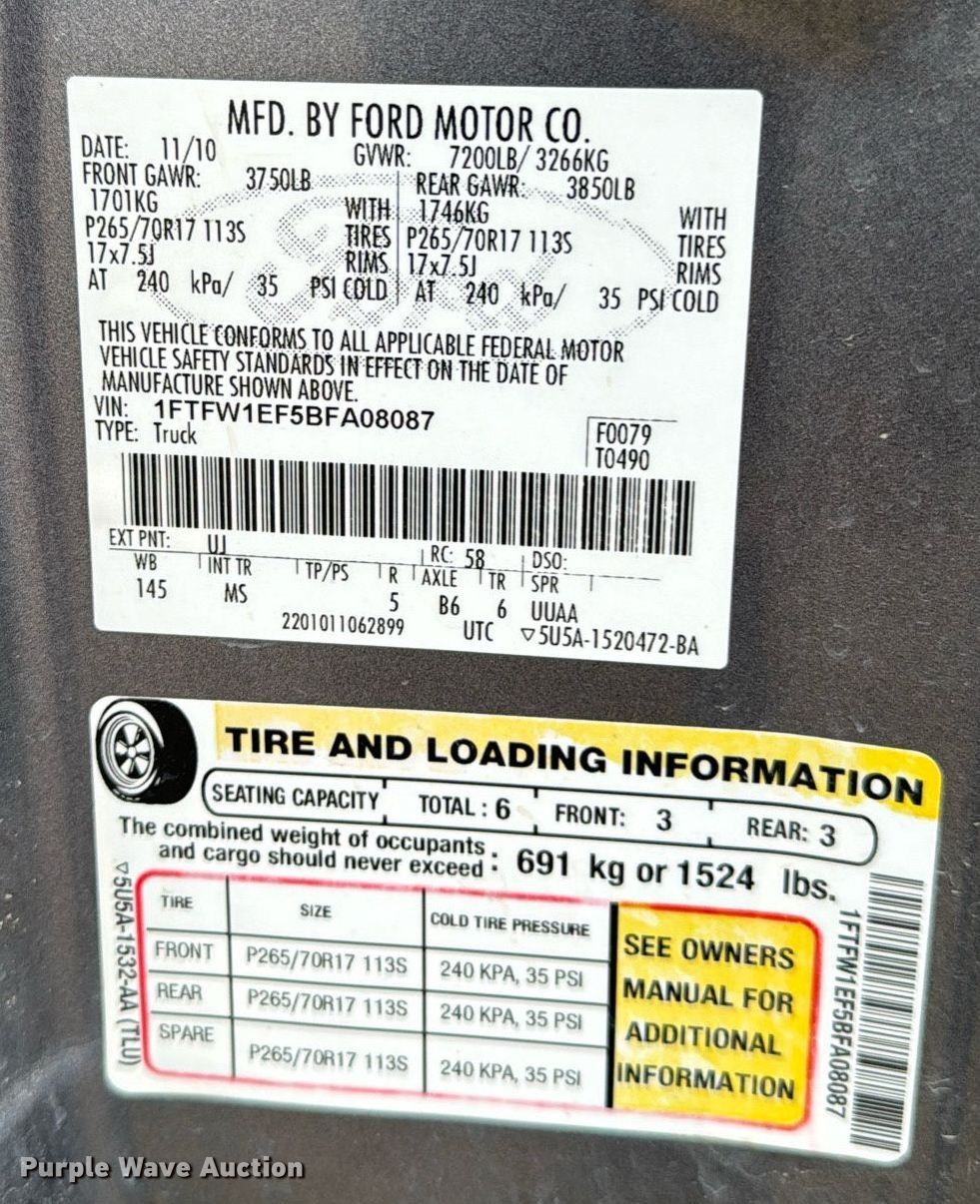 Purple Wave is selling a used 1/2 Ton Pickup or Van in Iowa. This item is a 2011 Ford F150 XLT SuperCrew pickup truck with the following: Miles: 103,932 on odometer, VIN: 1FTFW1EF5BFA08087