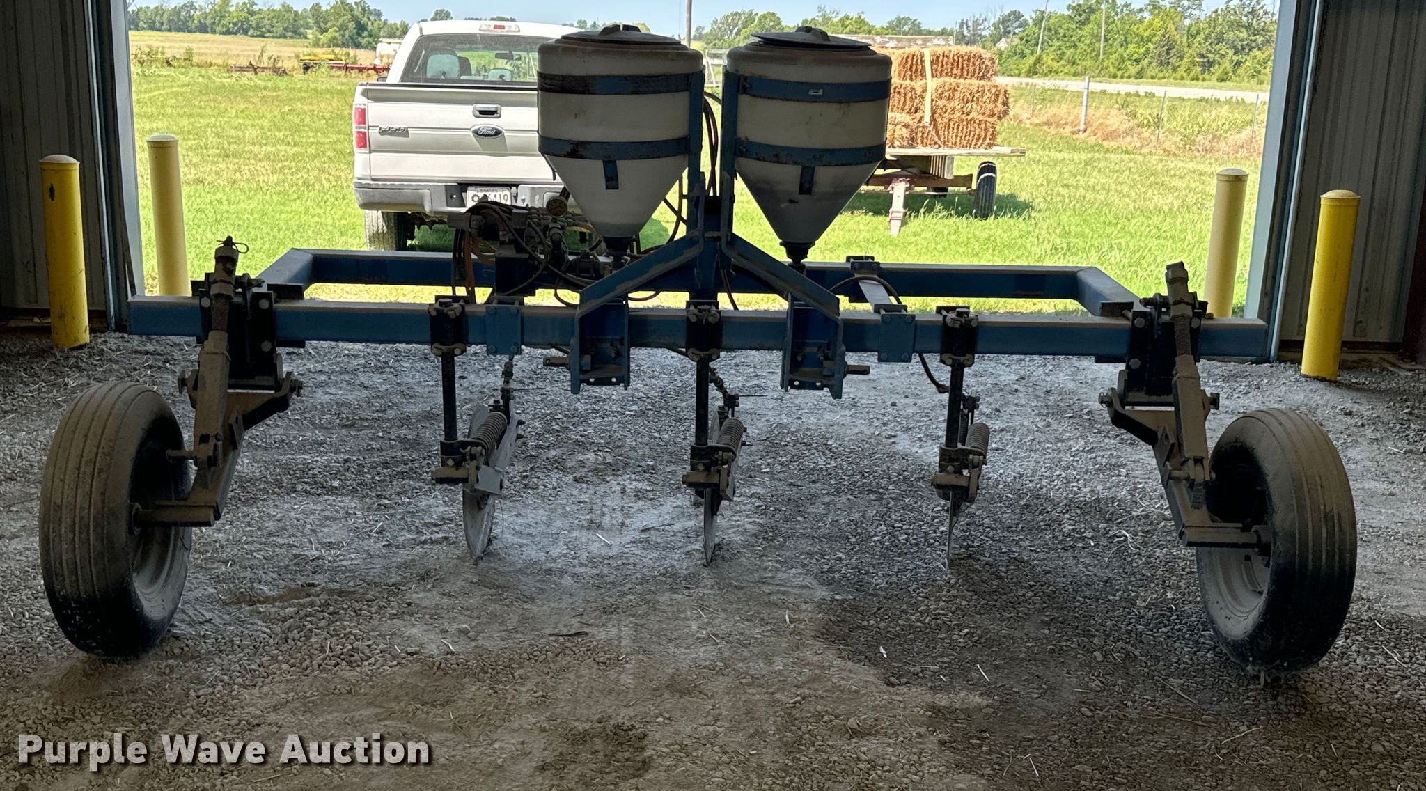 Shop built liquid fertilizer applicator. Features. Boom Nozzles Spacing: 30", Nozzle bodies: Single, Liquid/nh3 applicator Rows: 3, Spacing: 30", Delivery type: Direct injection, Tank capacity: 16 gallons, Pump Aquatec DDP550, Type: Ground drive.. Tires Size: 7.60-15SL. K-State Southeast Research and Extension Center. Parsons, KS 67357
