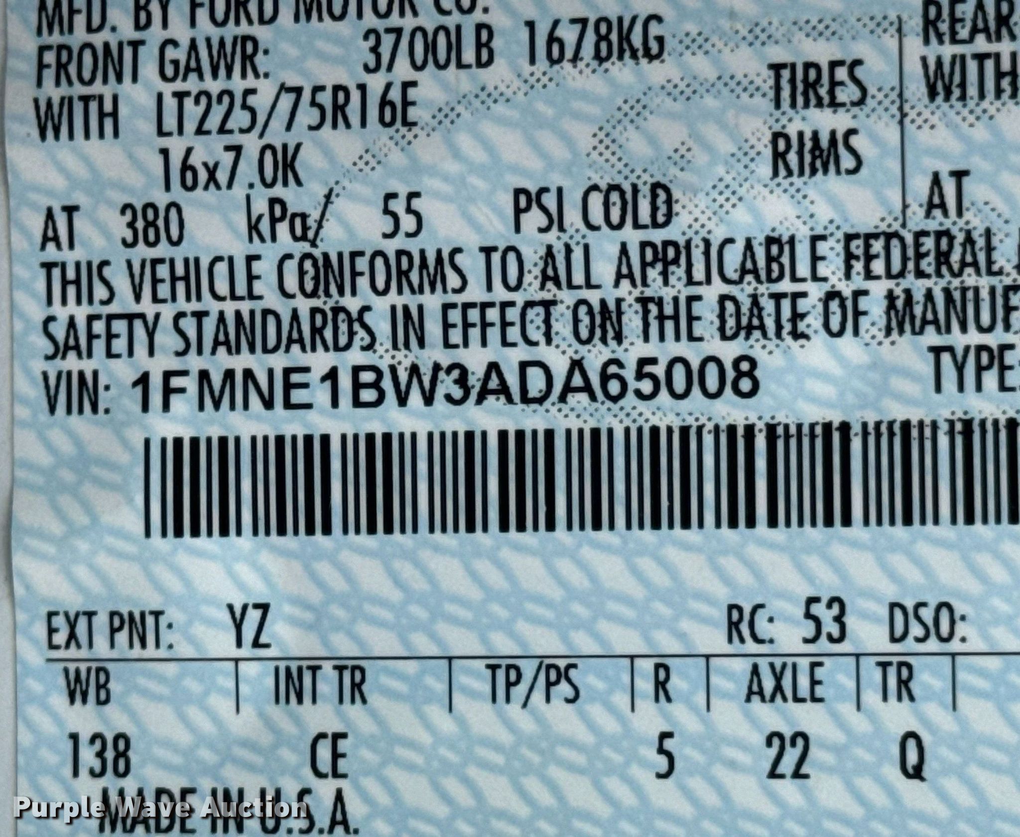 Purple Wave is selling a used Passenger Vehicle in Kansas. This item is a 2010 Ford Econoline E150 XL van with the following: Miles: 144,122 on odometer, VIN: 1FMNE1BW3ADA65008