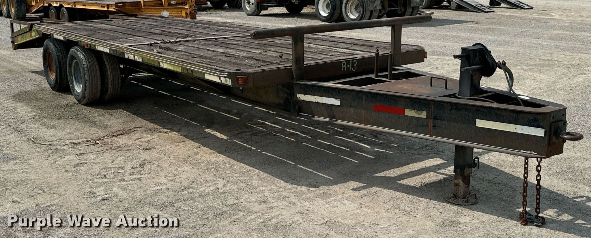 1996 Coose Trailer Mfg. equipment trailer. VIN: 1C9FB2428TM202402. Dimensions Overall: 32' L x 96" W, Deck: 20' L x 90" W, Tail length: 5', Ramps: Manual Length: 4' 6". Features Deck type: Wood. Chassis Hitch: Pintle, Landing gear: Single, Suspension: Spring, Brakes: Electric, Axles: Tandem, GVWR: 18,000 lbs. Tires Steel wheels, Size: LT235/85R16. Kansas title. Title distribution may be delayed up to 14 days from verification of funds. Crawford County, KS. Girard, KS 66743