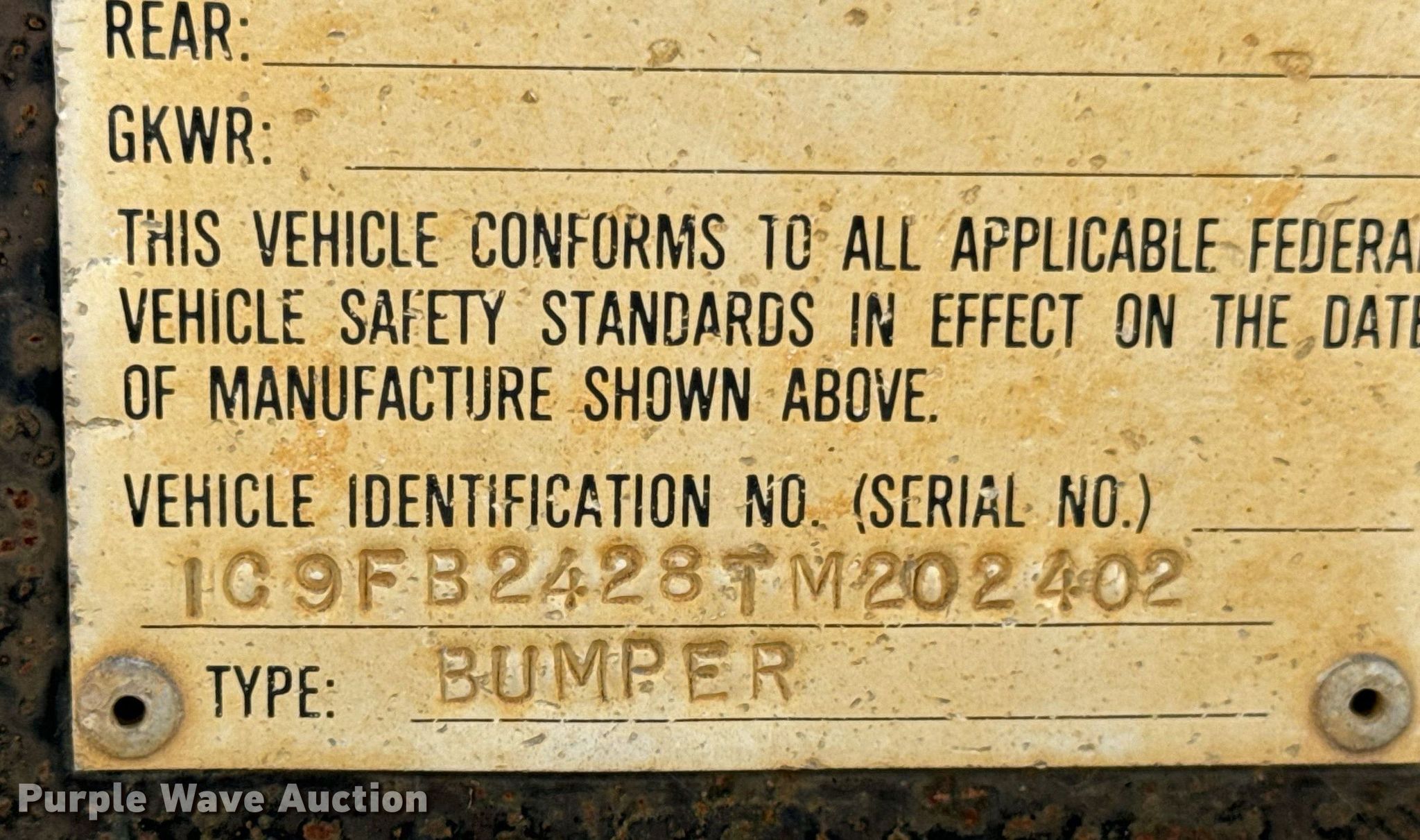 Purple Wave is selling a used Equip. Trailer in Kansas. This item is a 1996 Coose Trailer Mfg. equipment trailer with the following: VIN: 1C9FB2428TM202402